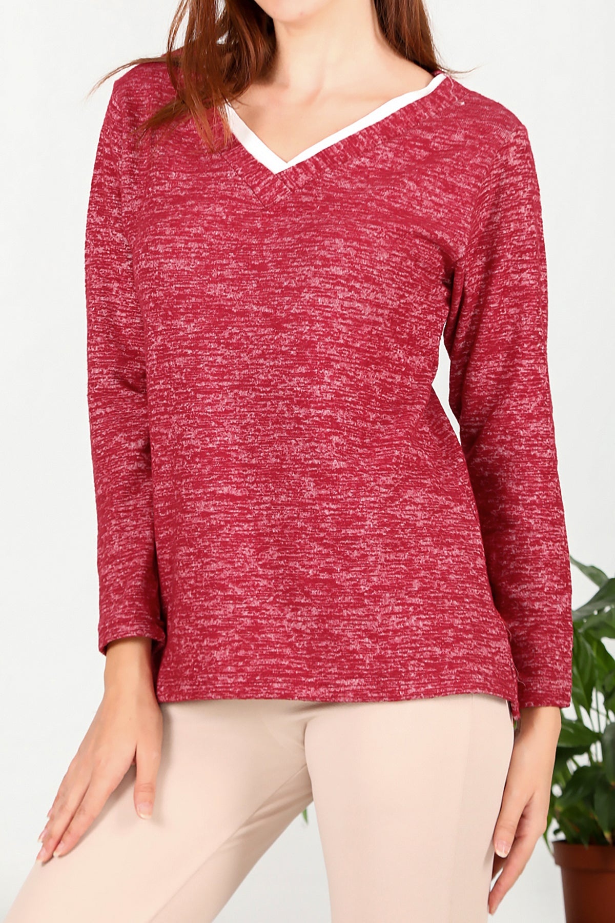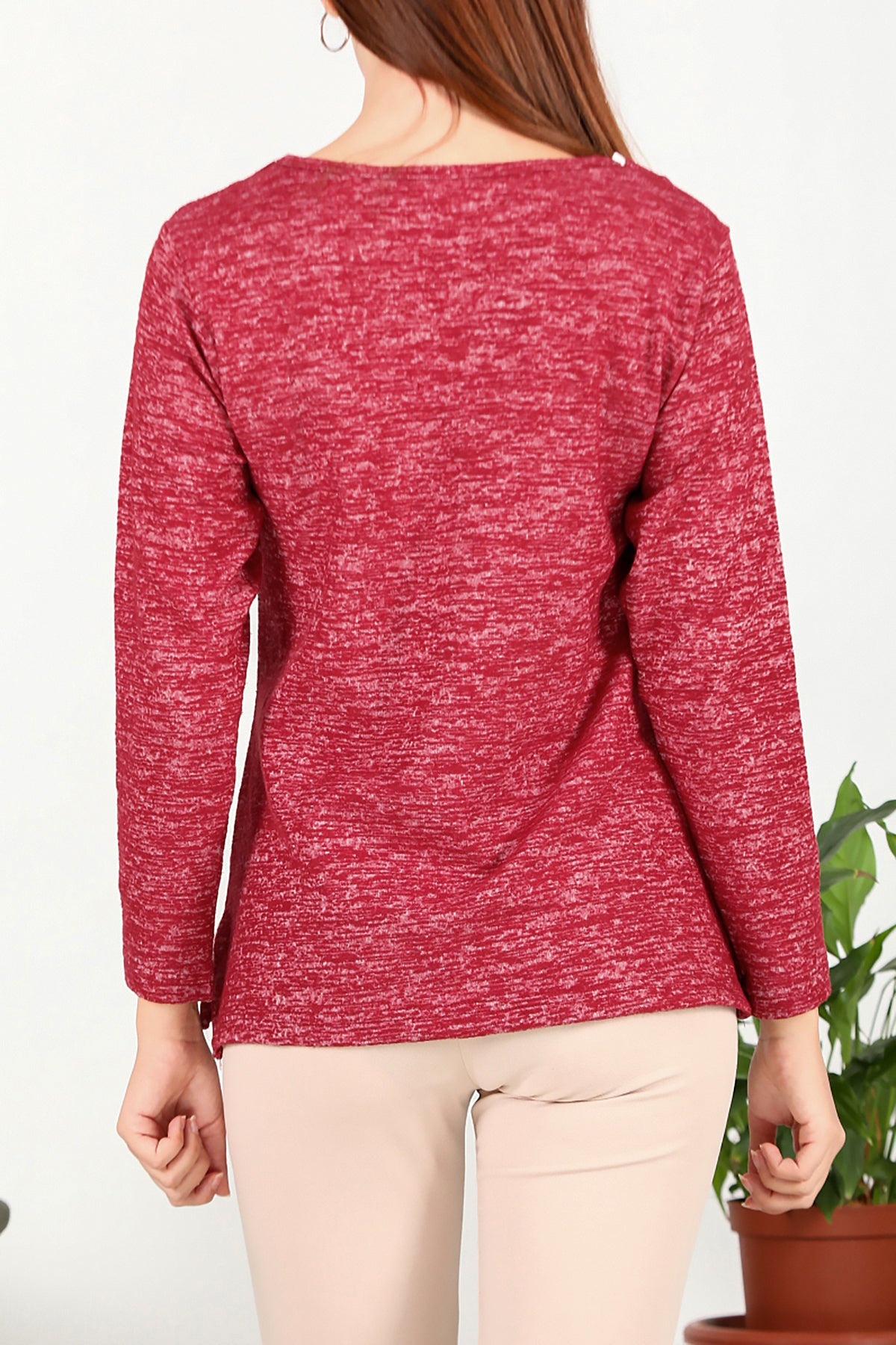 Kadın Bis Yaka Uzun Kol Kısa Bluz Gül