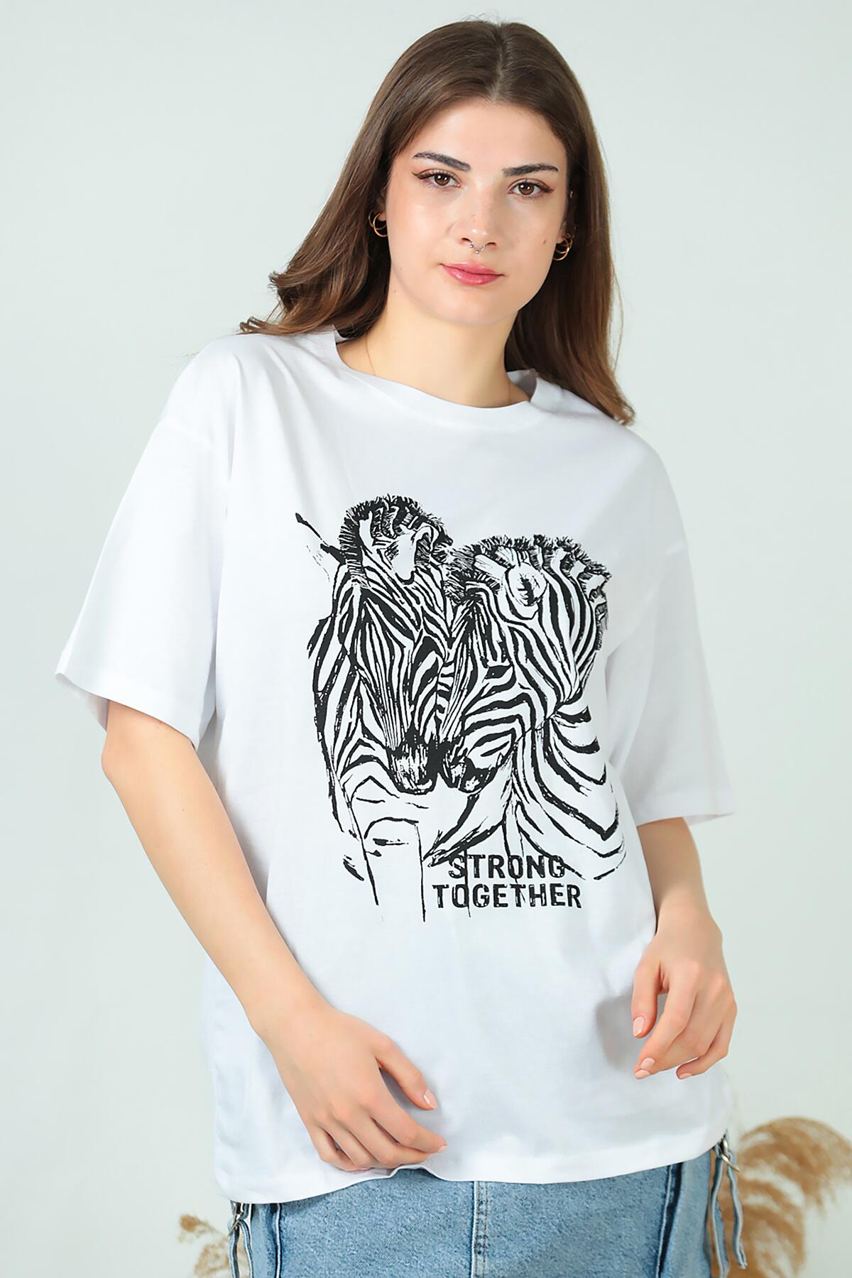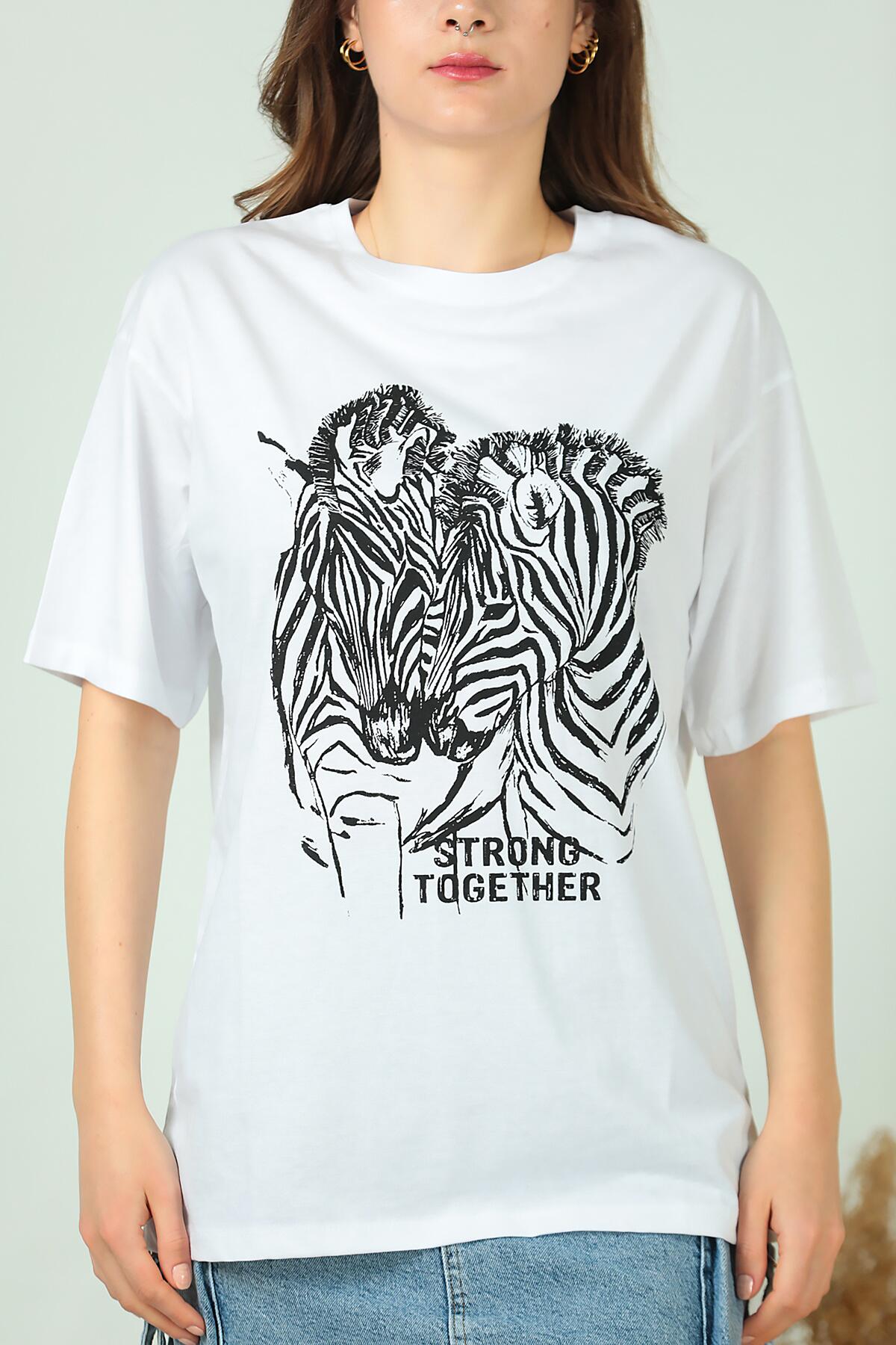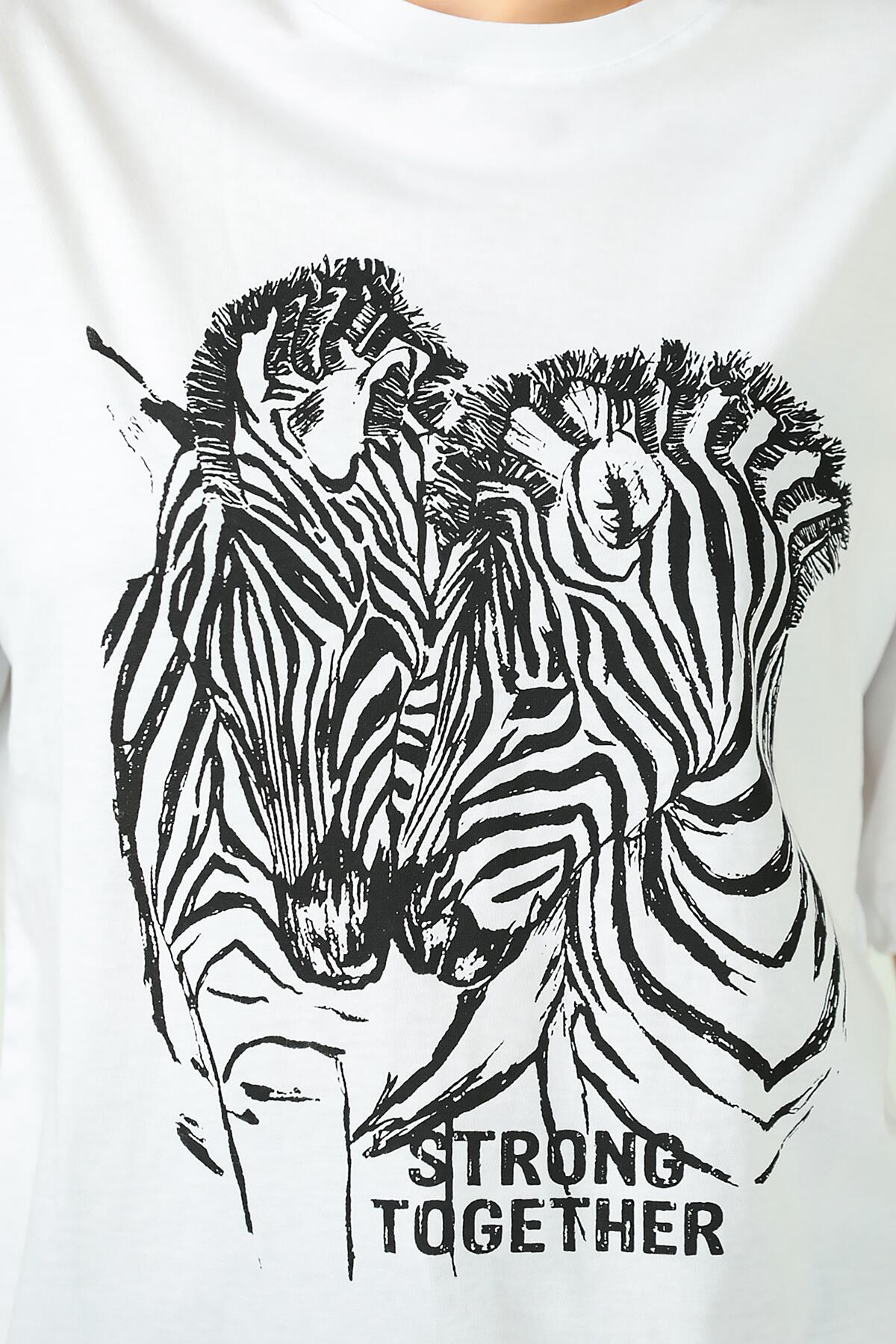 Kadın Zebra Baskılı T-shırt Beyaz