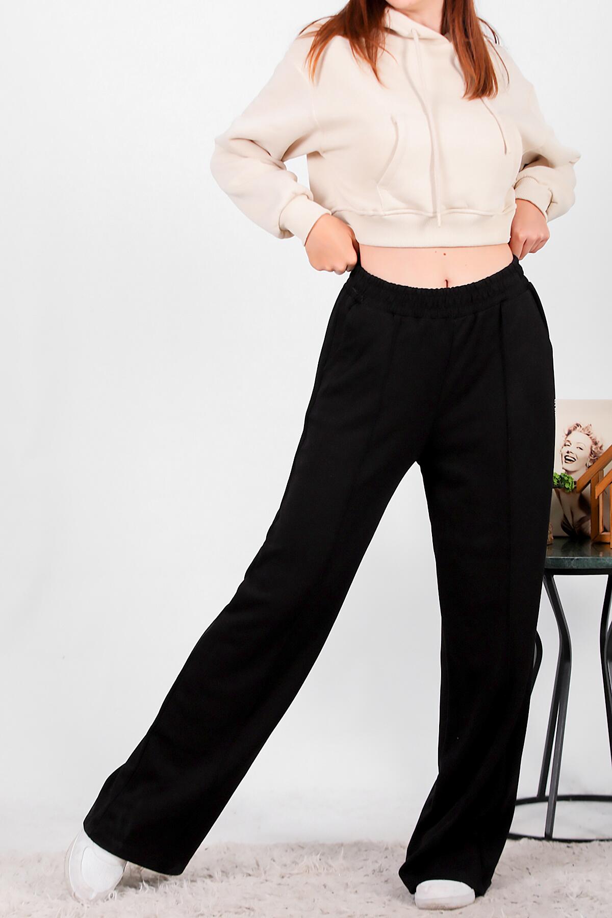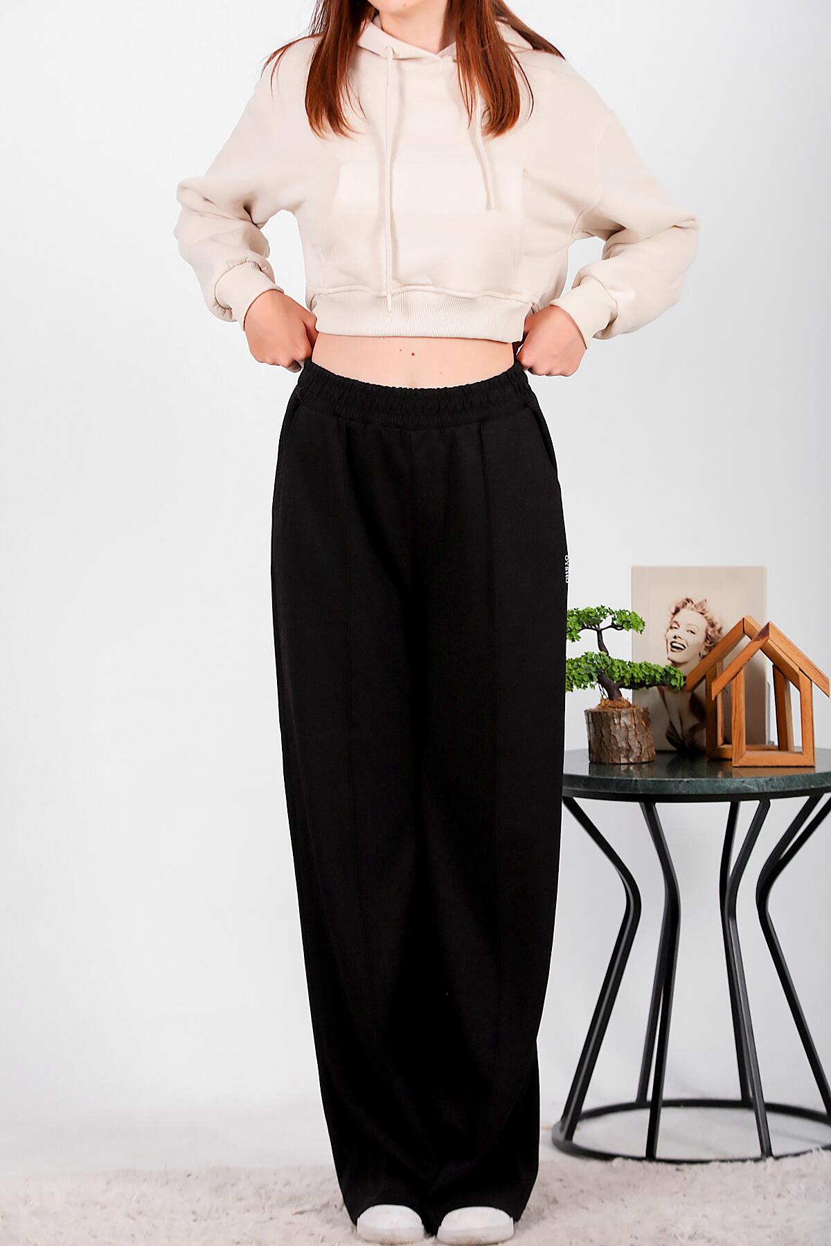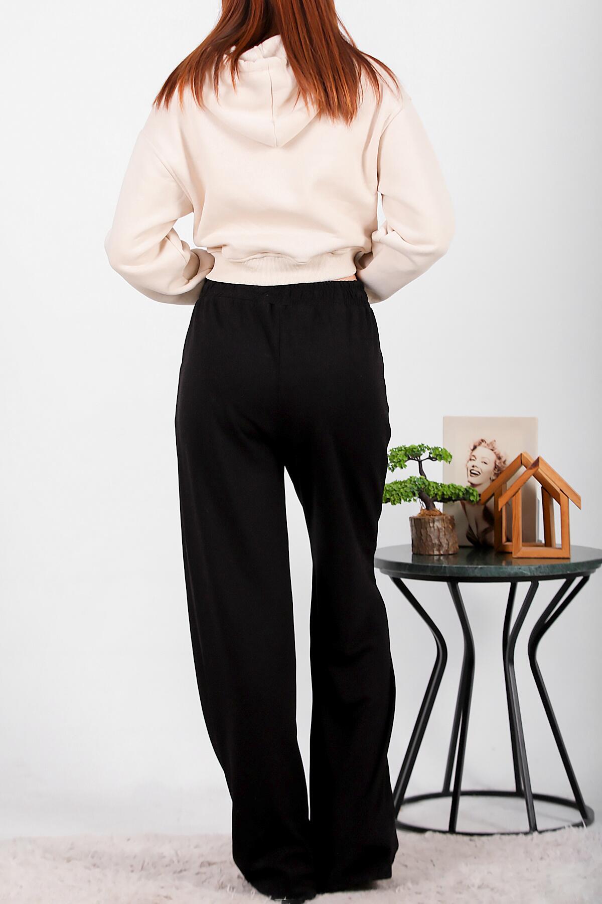 Numune Bedeni: 36 Numune Boyu: 112 cm Kumaş Tipi: % 55 Viskon %40 Polyester %5 ElestanPaça: Bol Paça Bel: Lastikli
