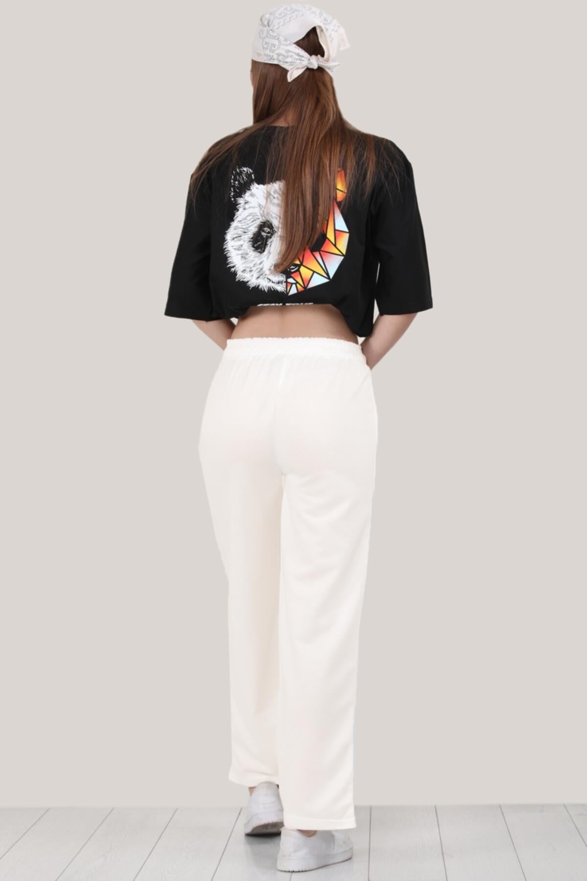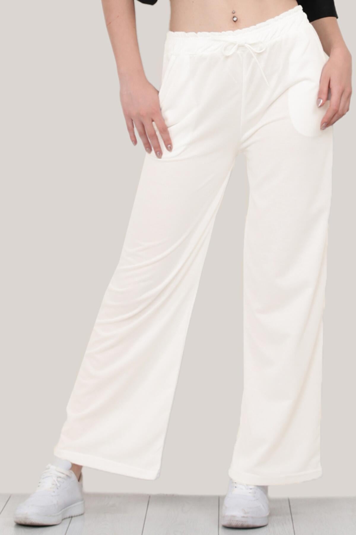 Kadın Bol Paça Eşofman Alt Ekru