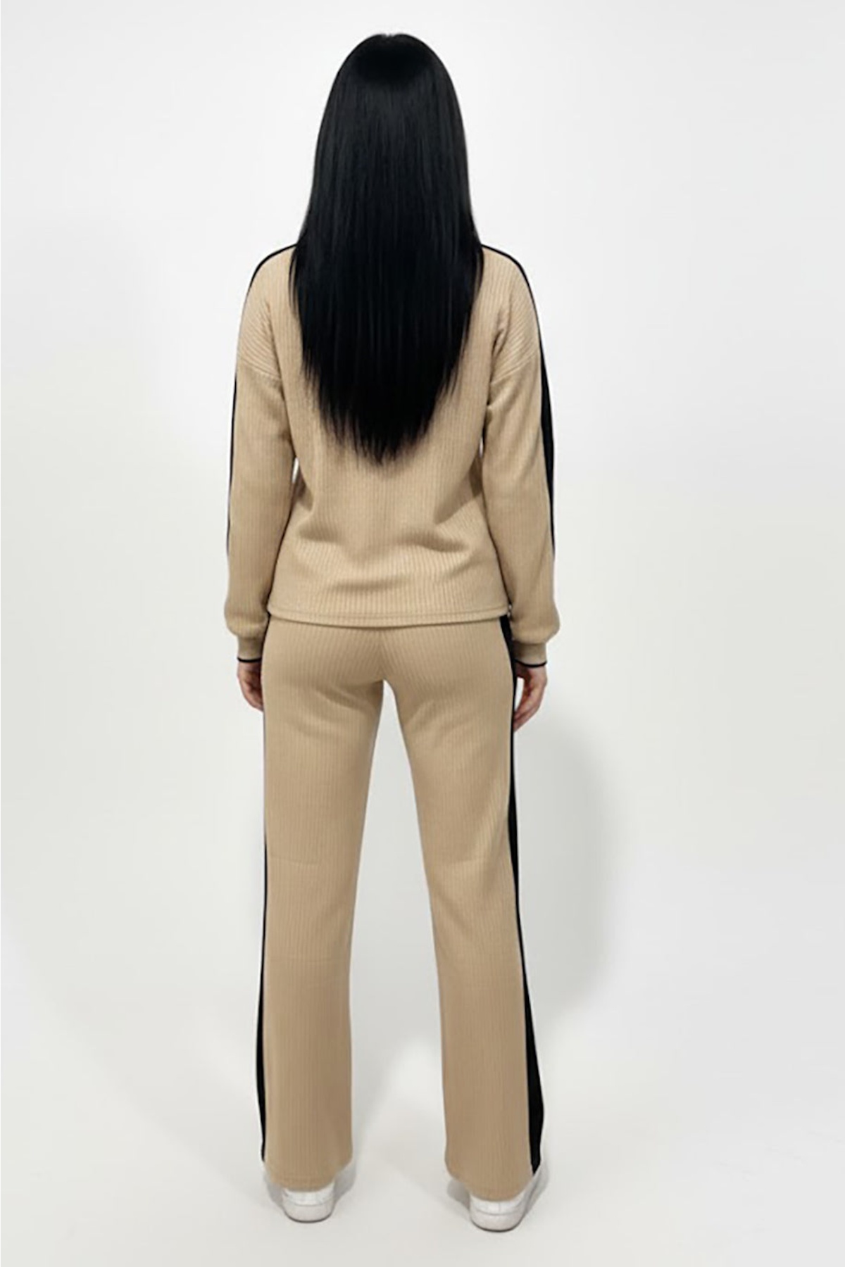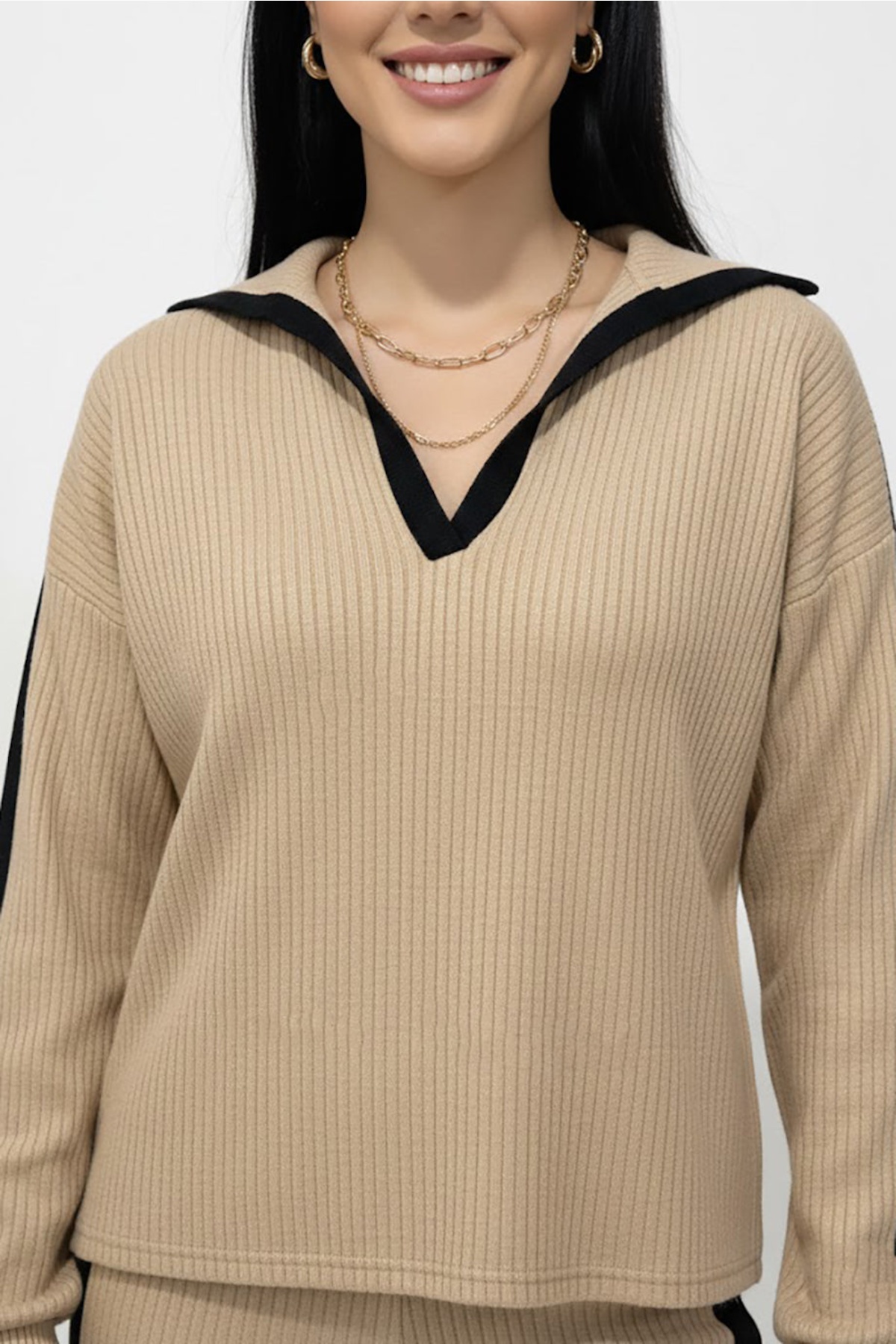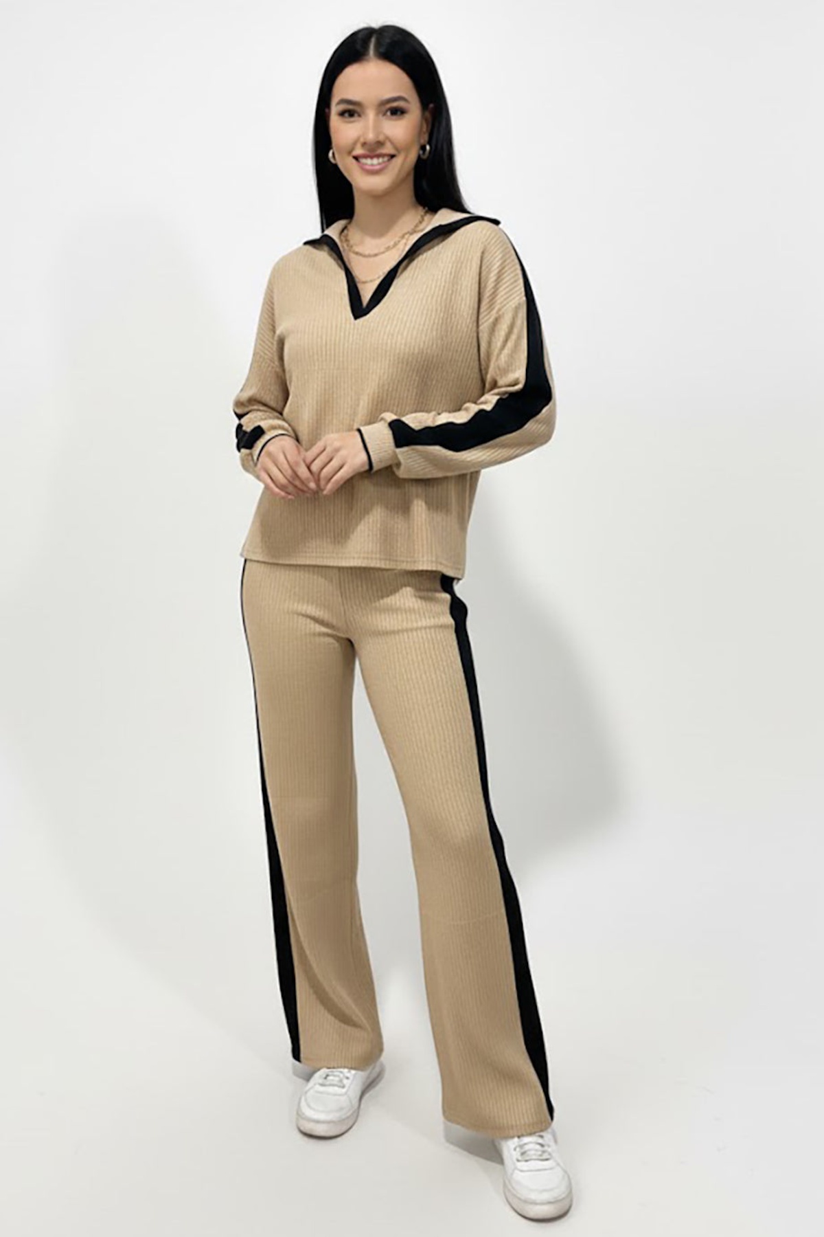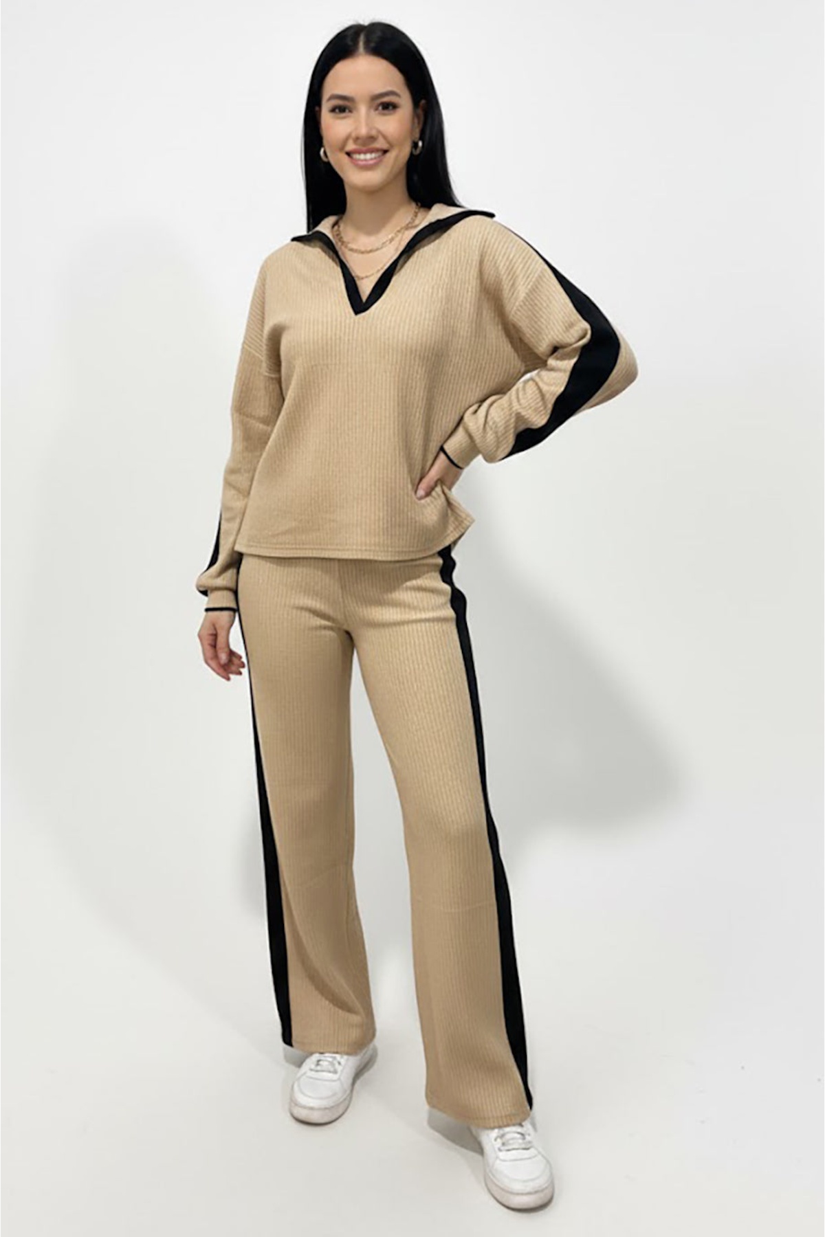 Kadın Garnili Önü V Yakalı Takım Bej