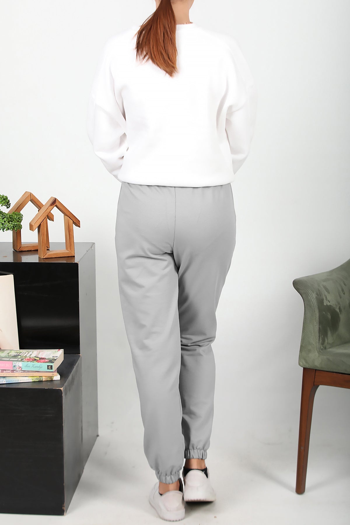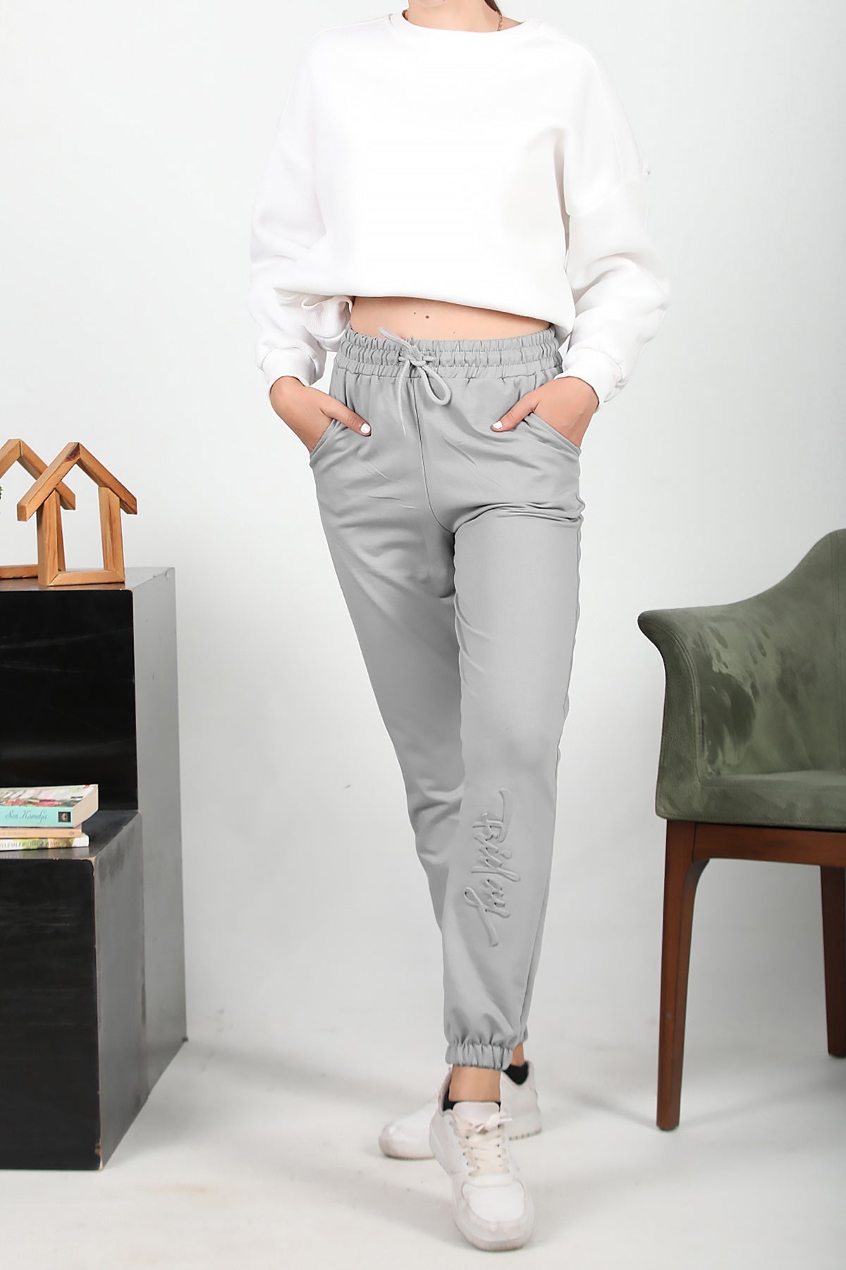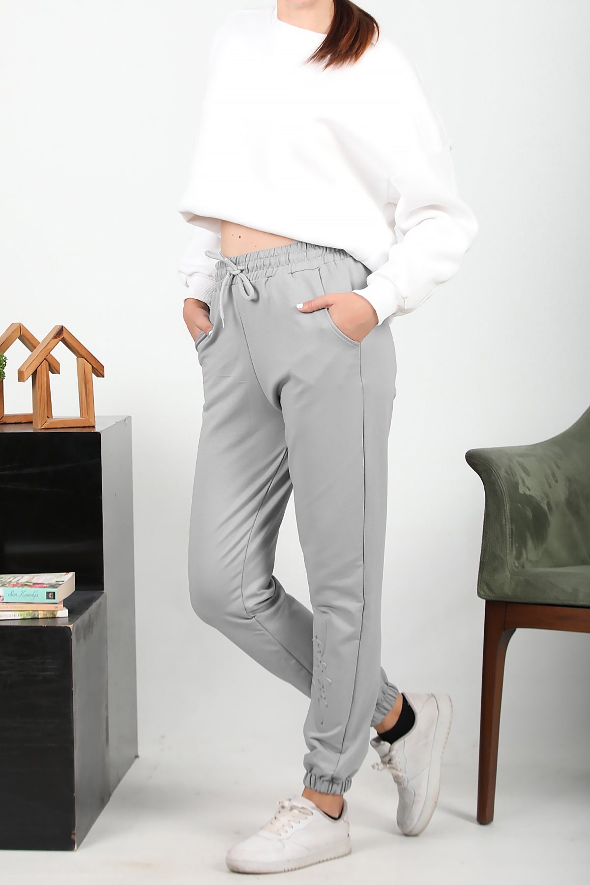 Kadın İki İplik Baskılı Eşofman Altı Gri