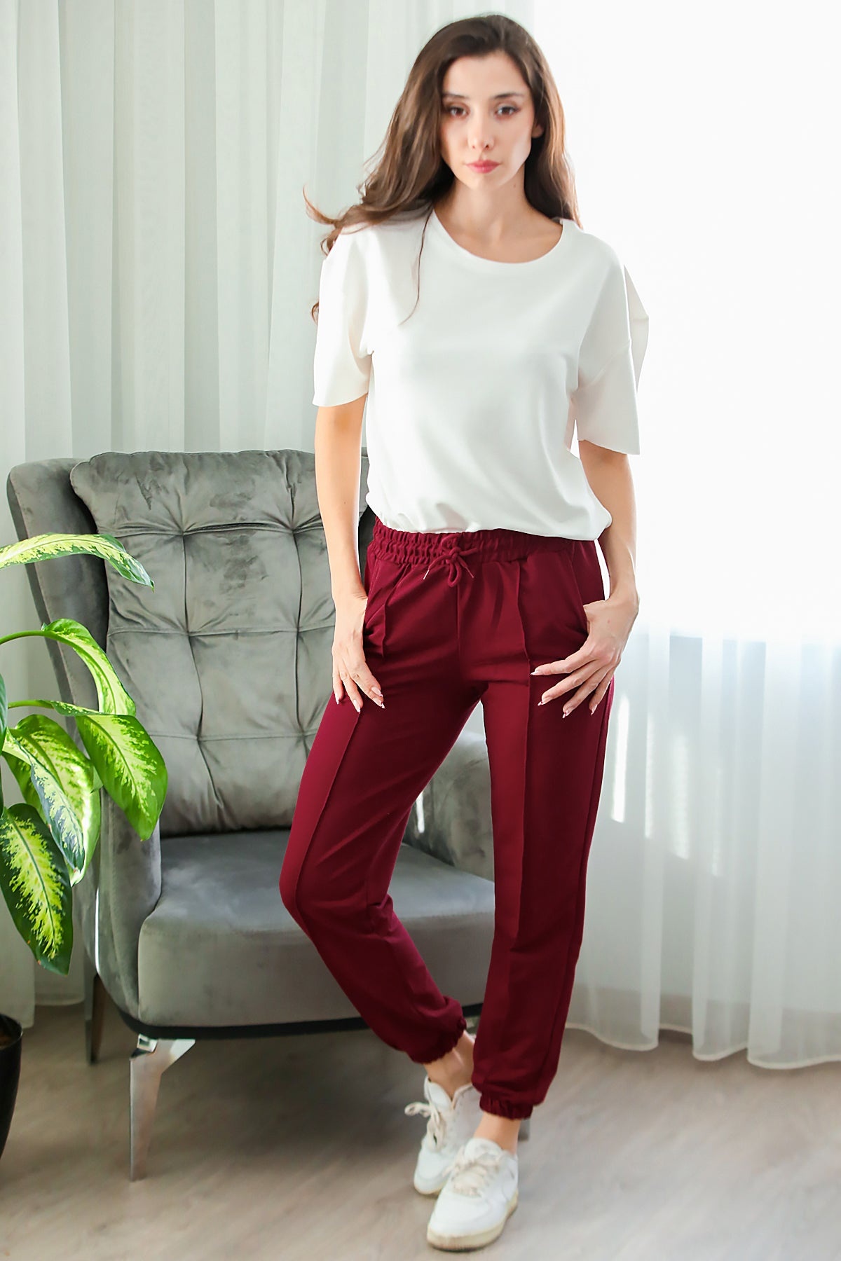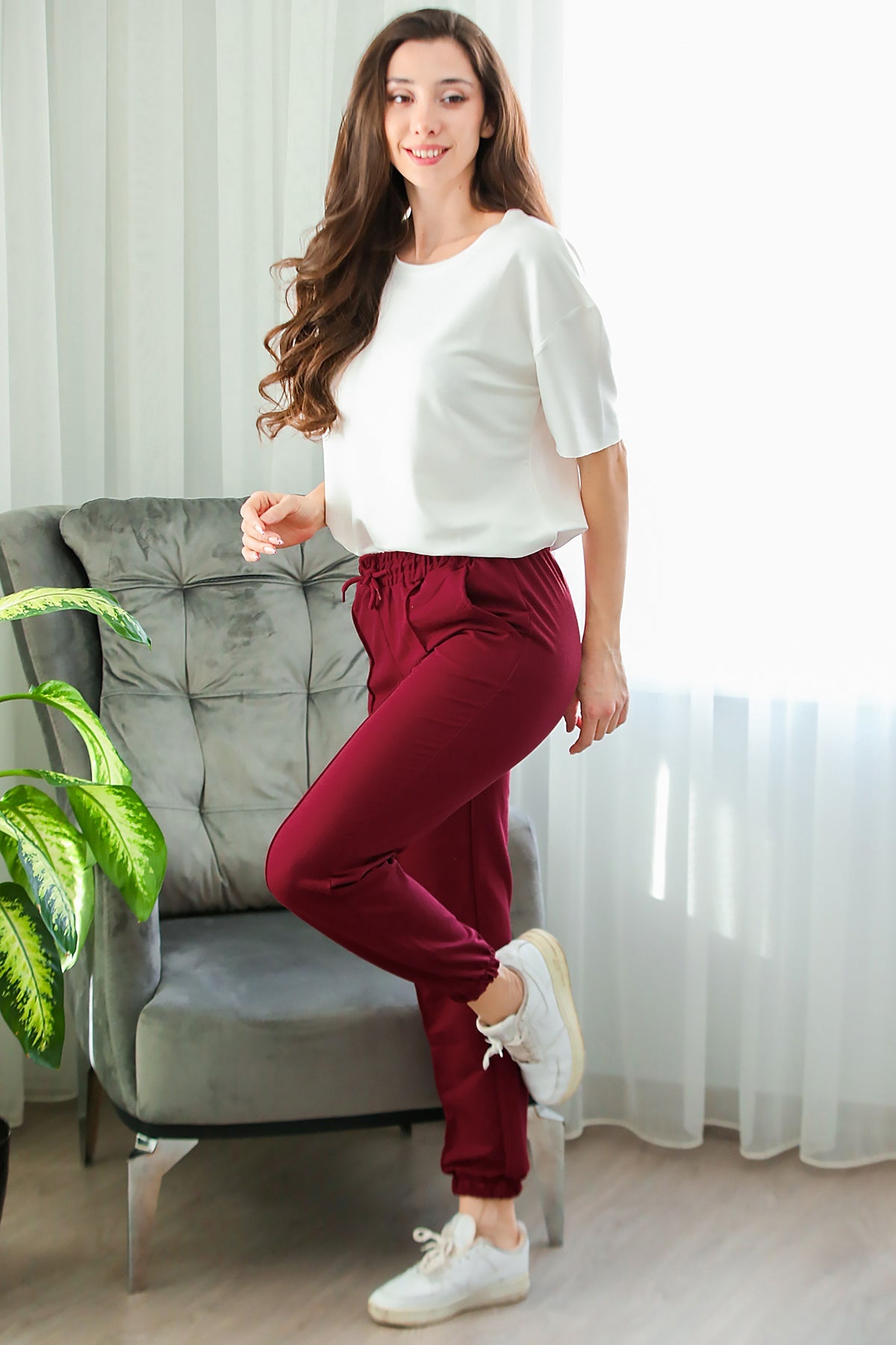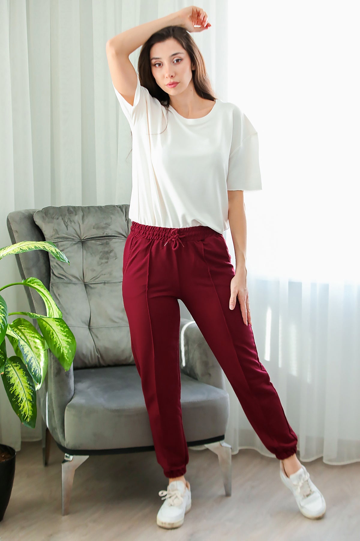 Kadın İki İplik Çimalı Paça Lastikli Eşofman Bordo