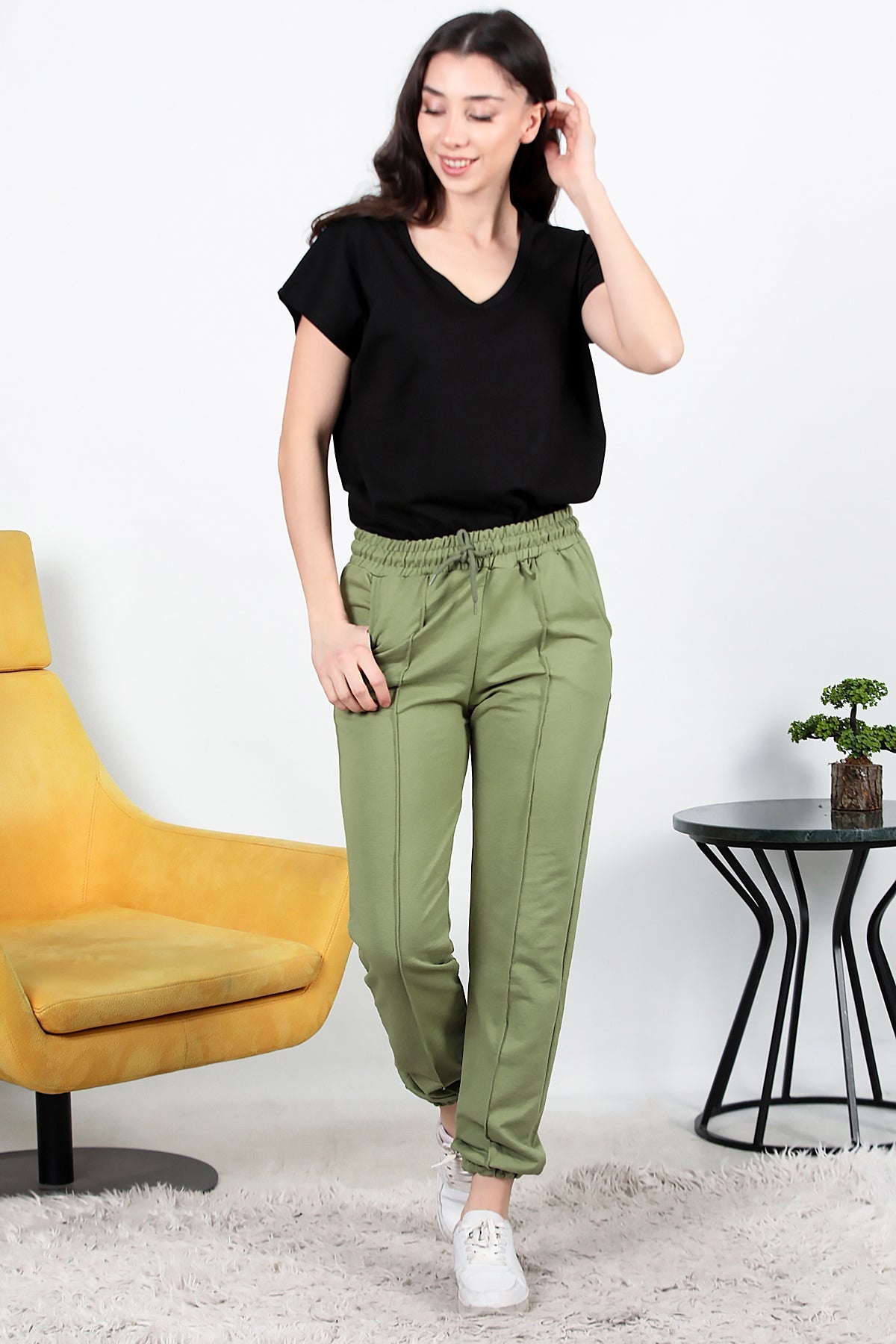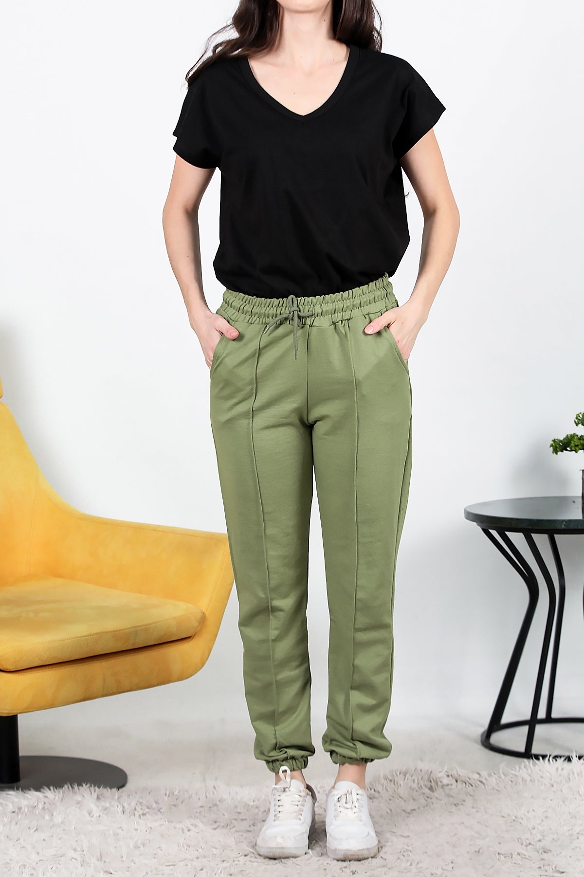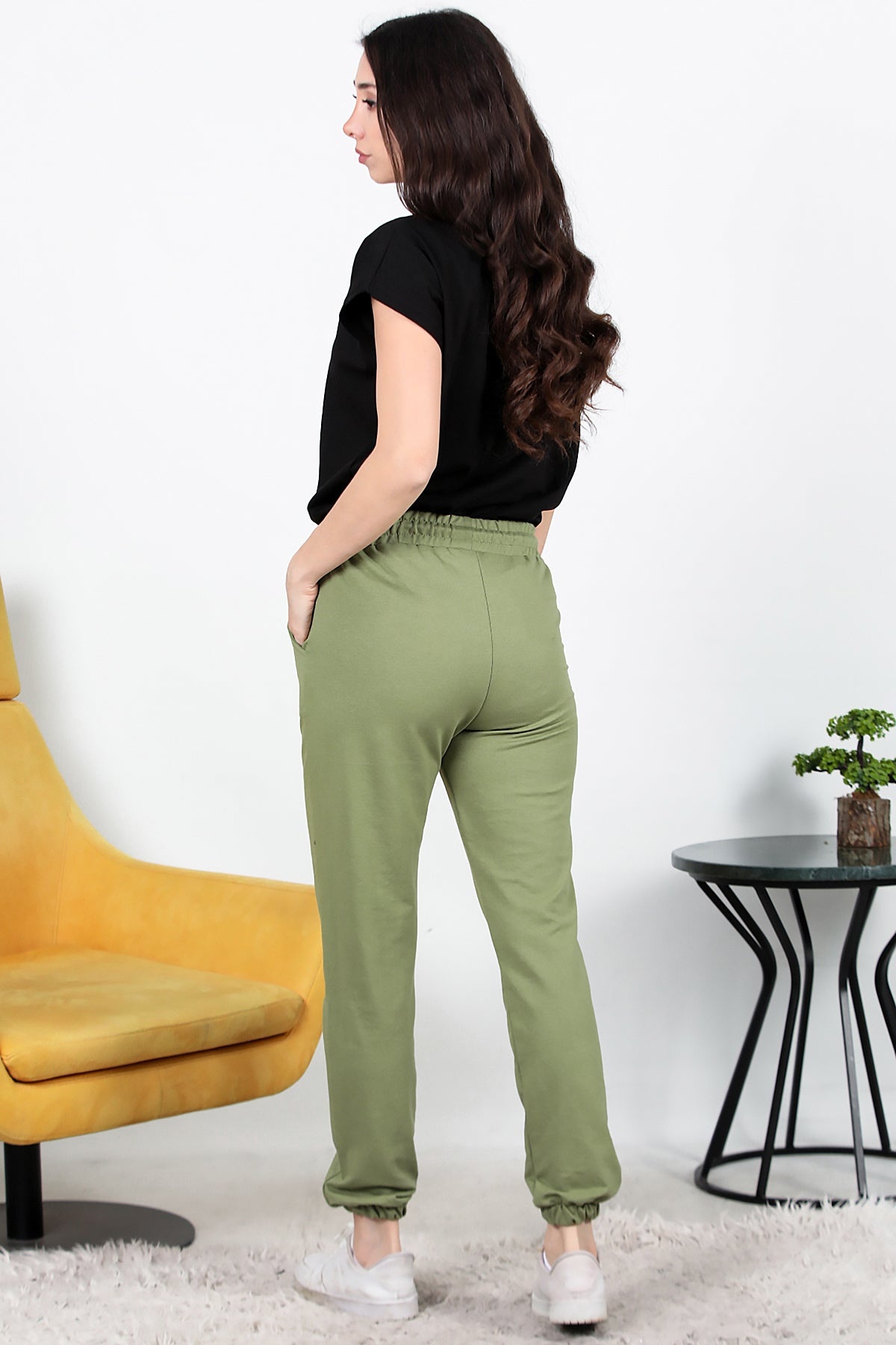 Kadın İki İplik Çimalı Paça Lastikli Eşofman Haki