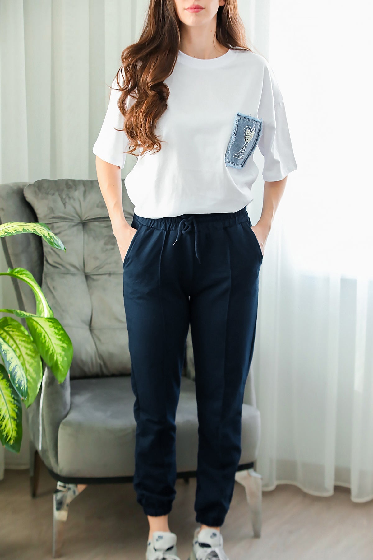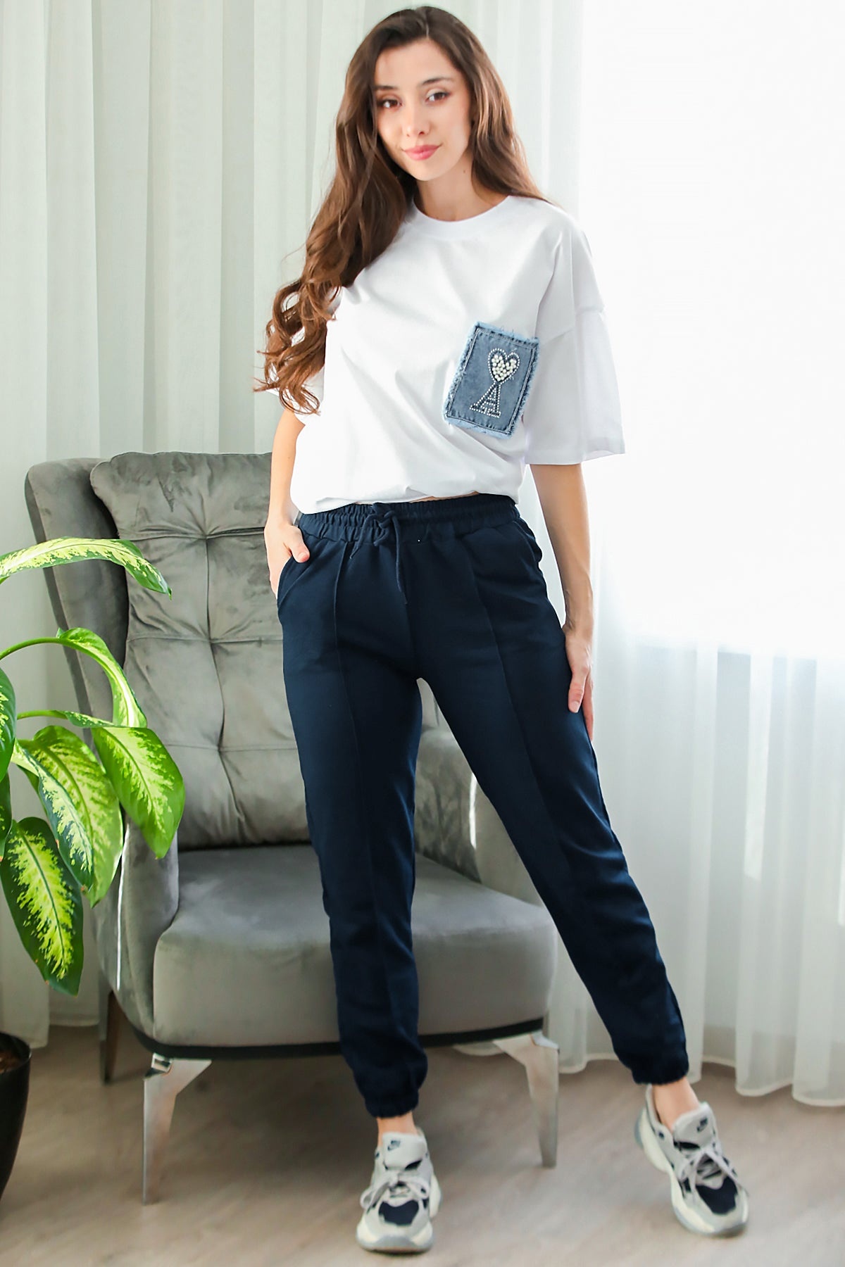 Kadın İki İplik Çimalı Paça Lastikli Eşofman Lacivert