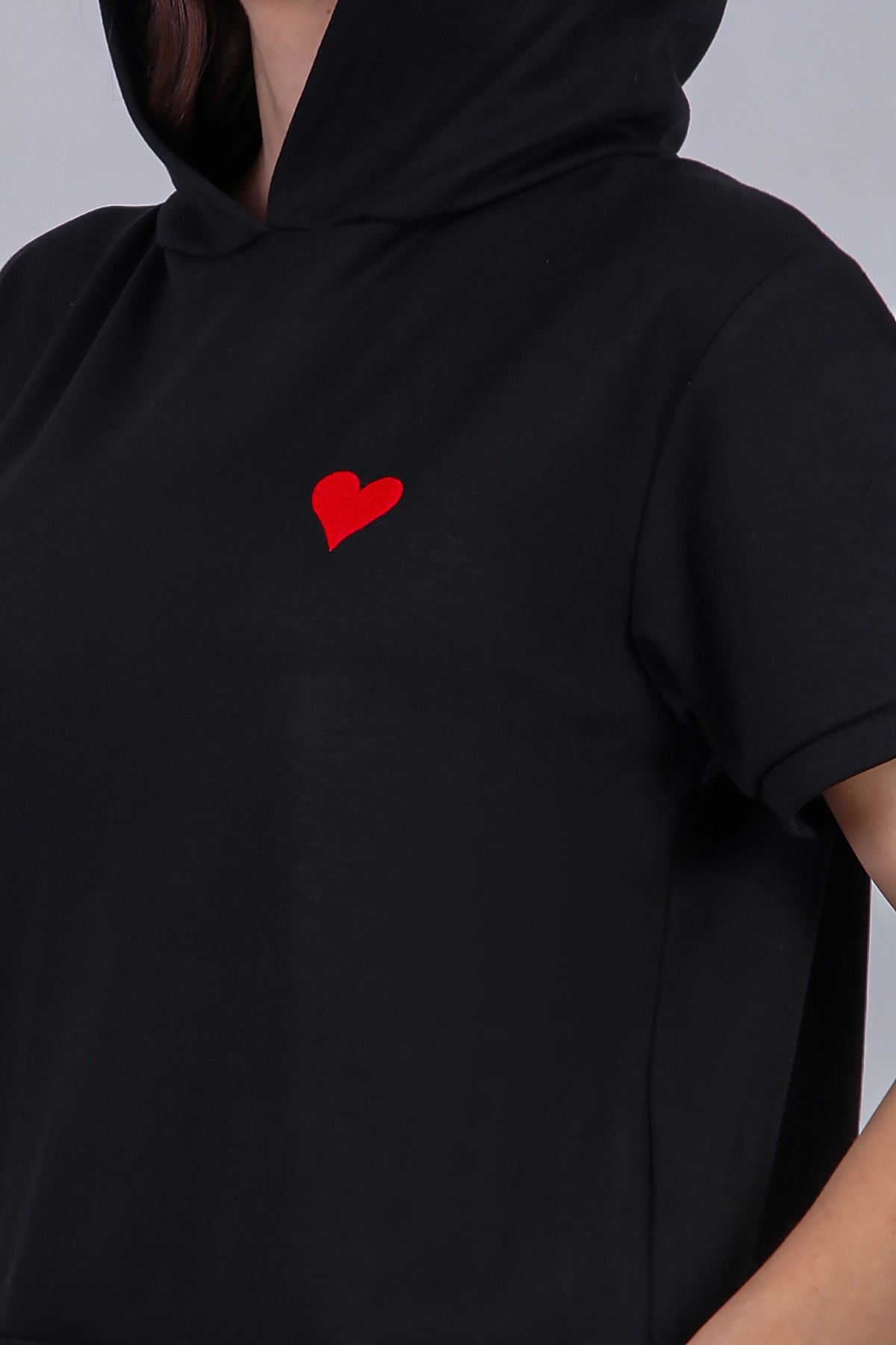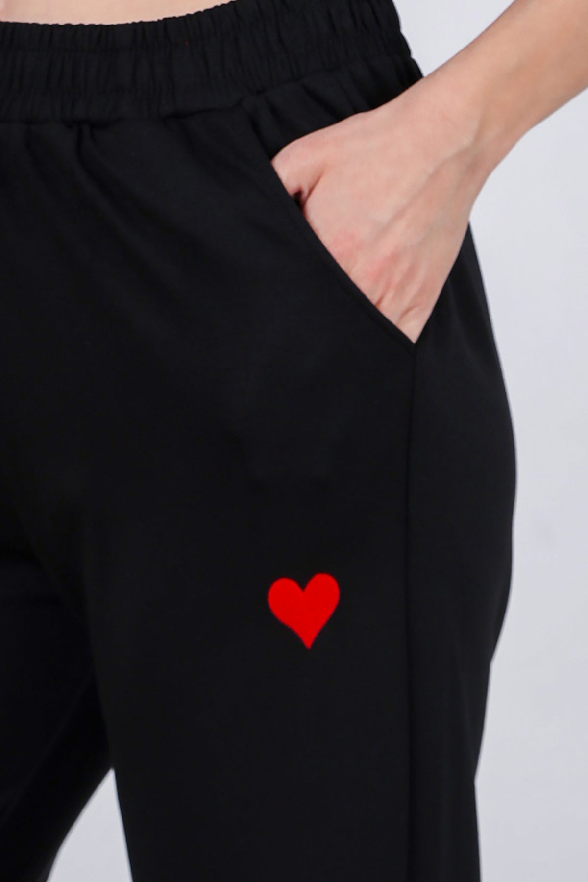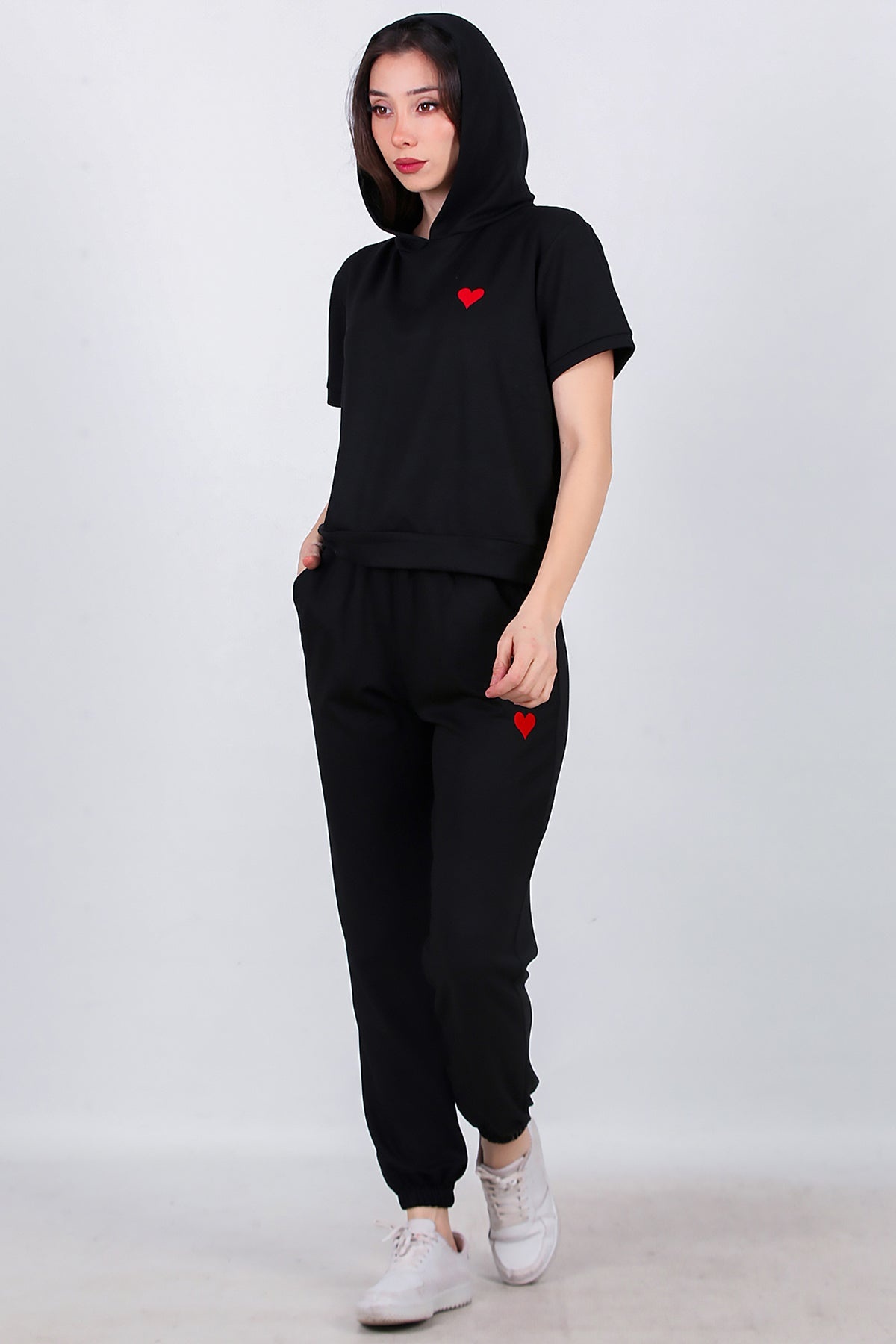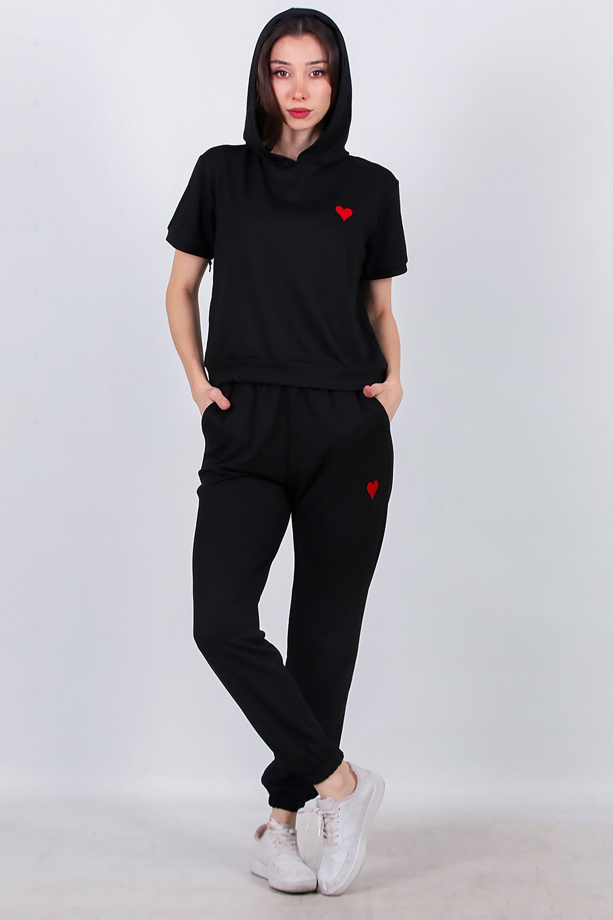 Kadın Kalp Nakışlı İkili Takım Siyah