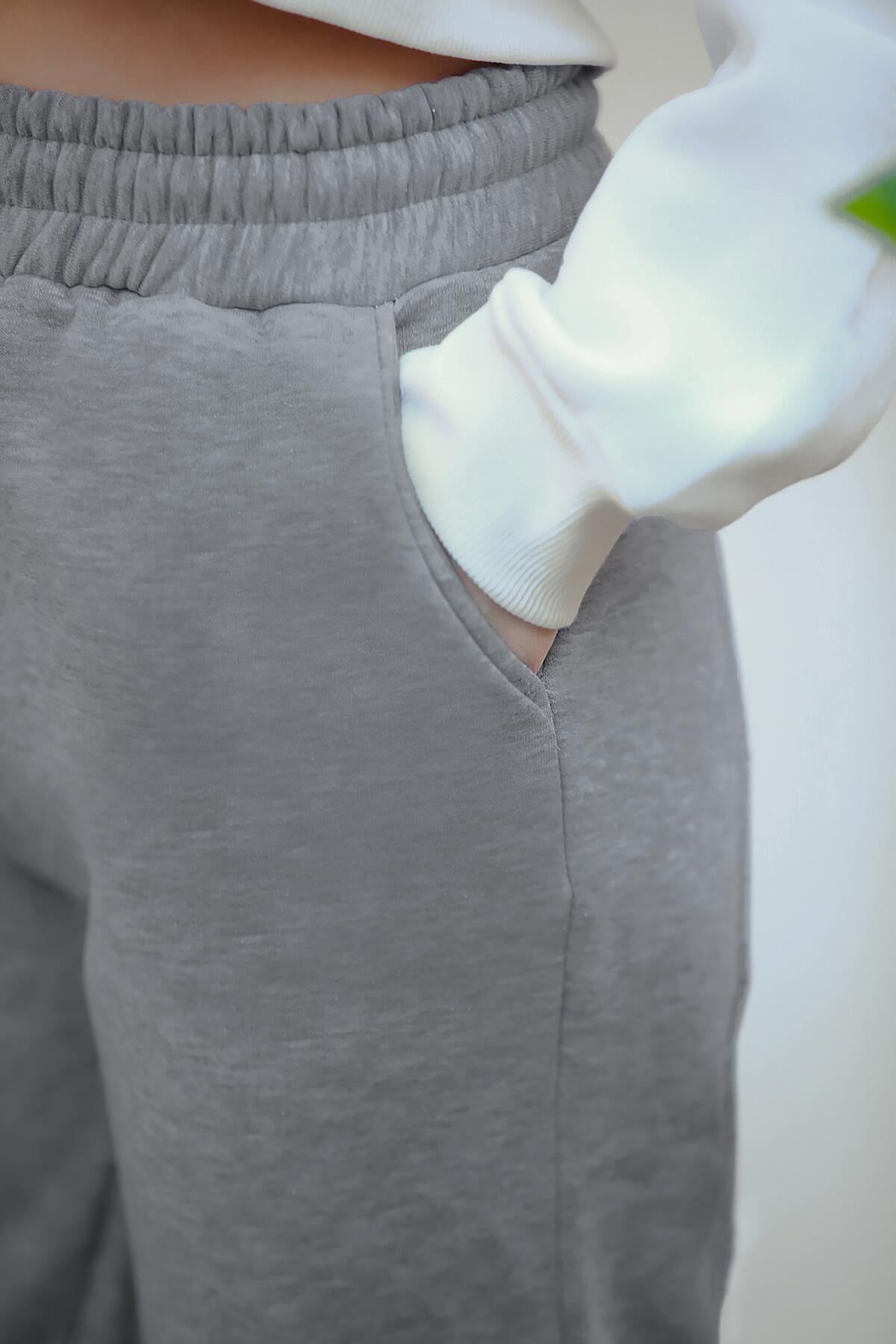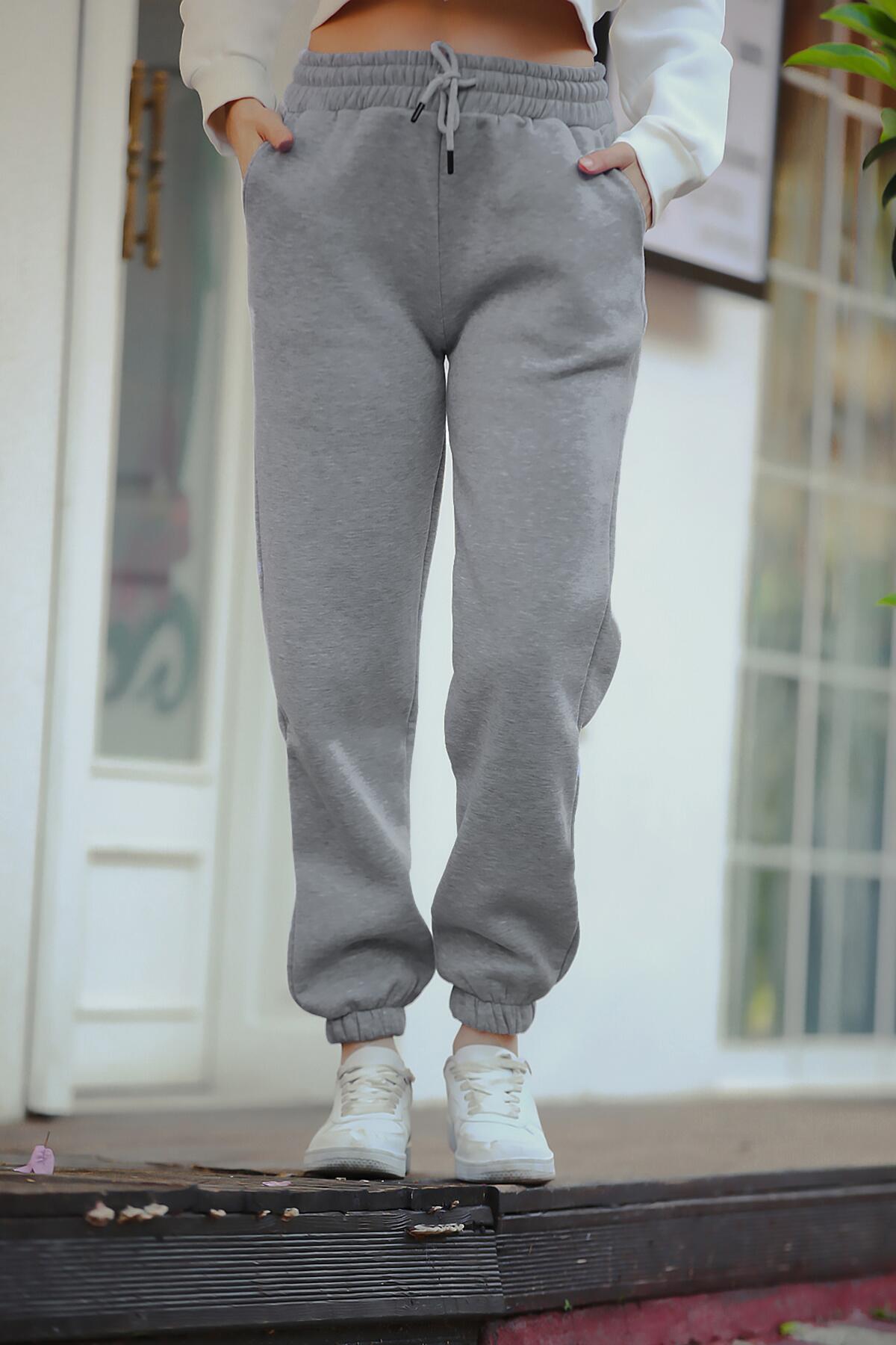 Kadın Paça Lastikli İçi Şardonlu Eşofman Altı Gri