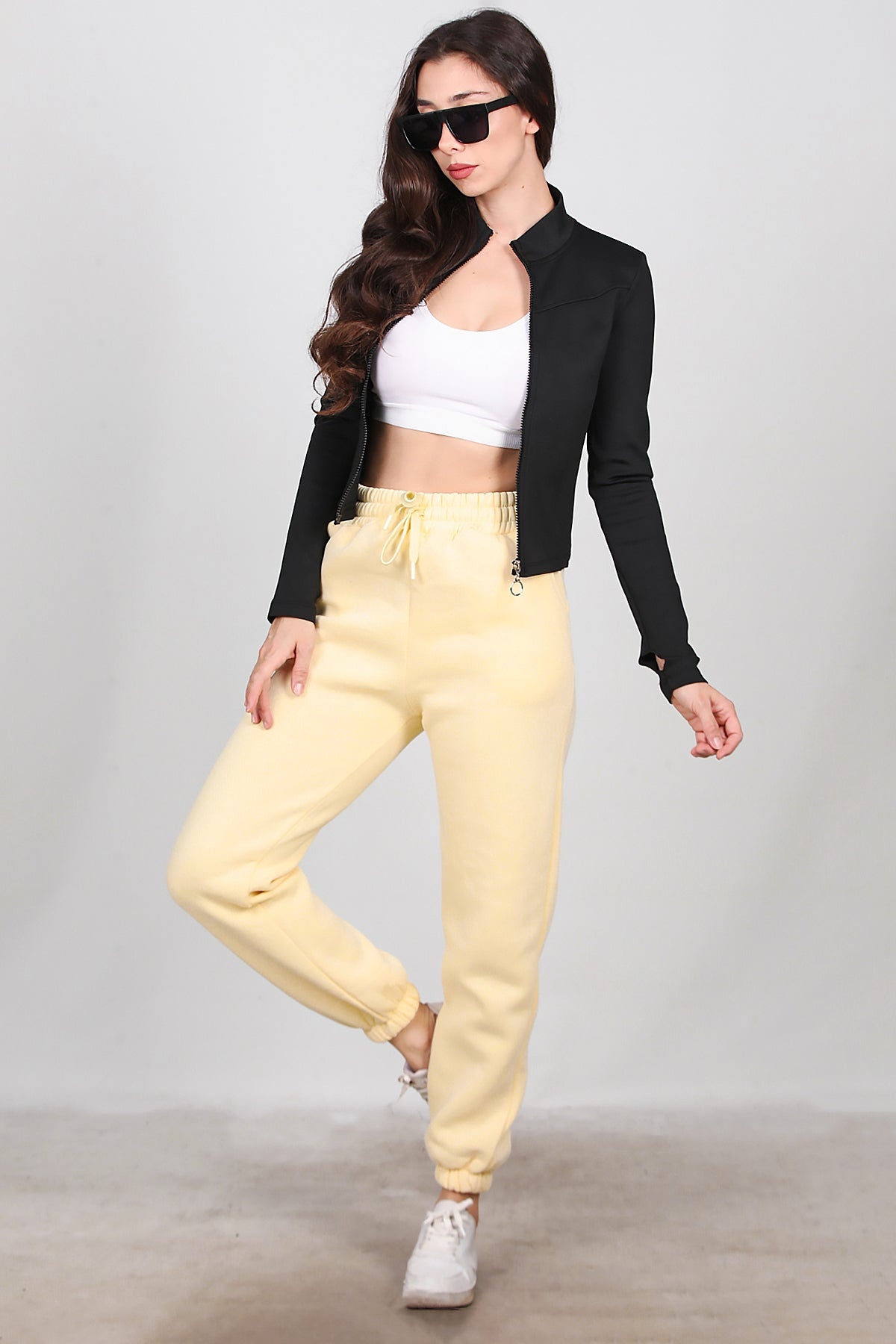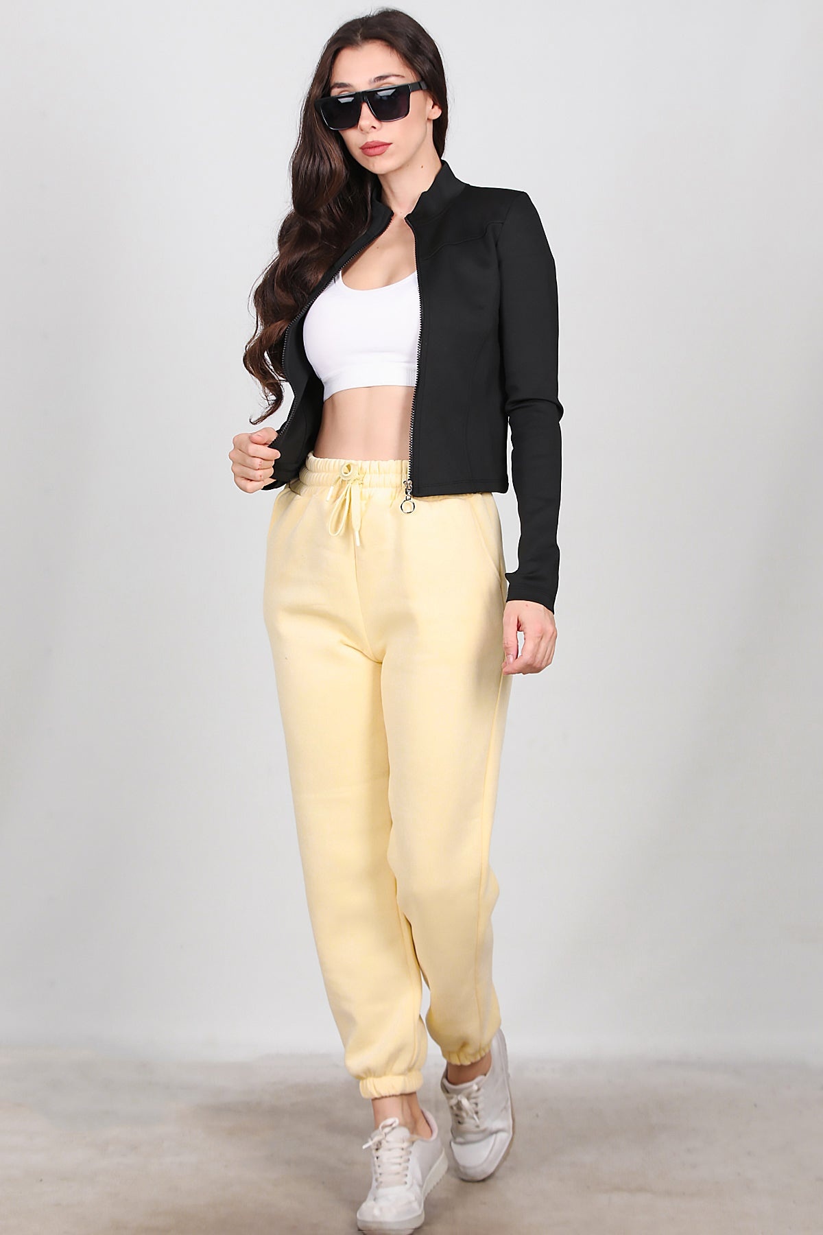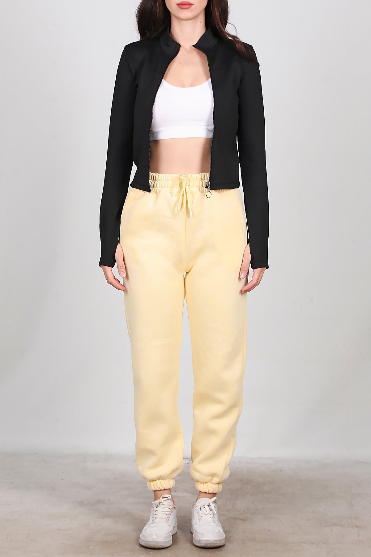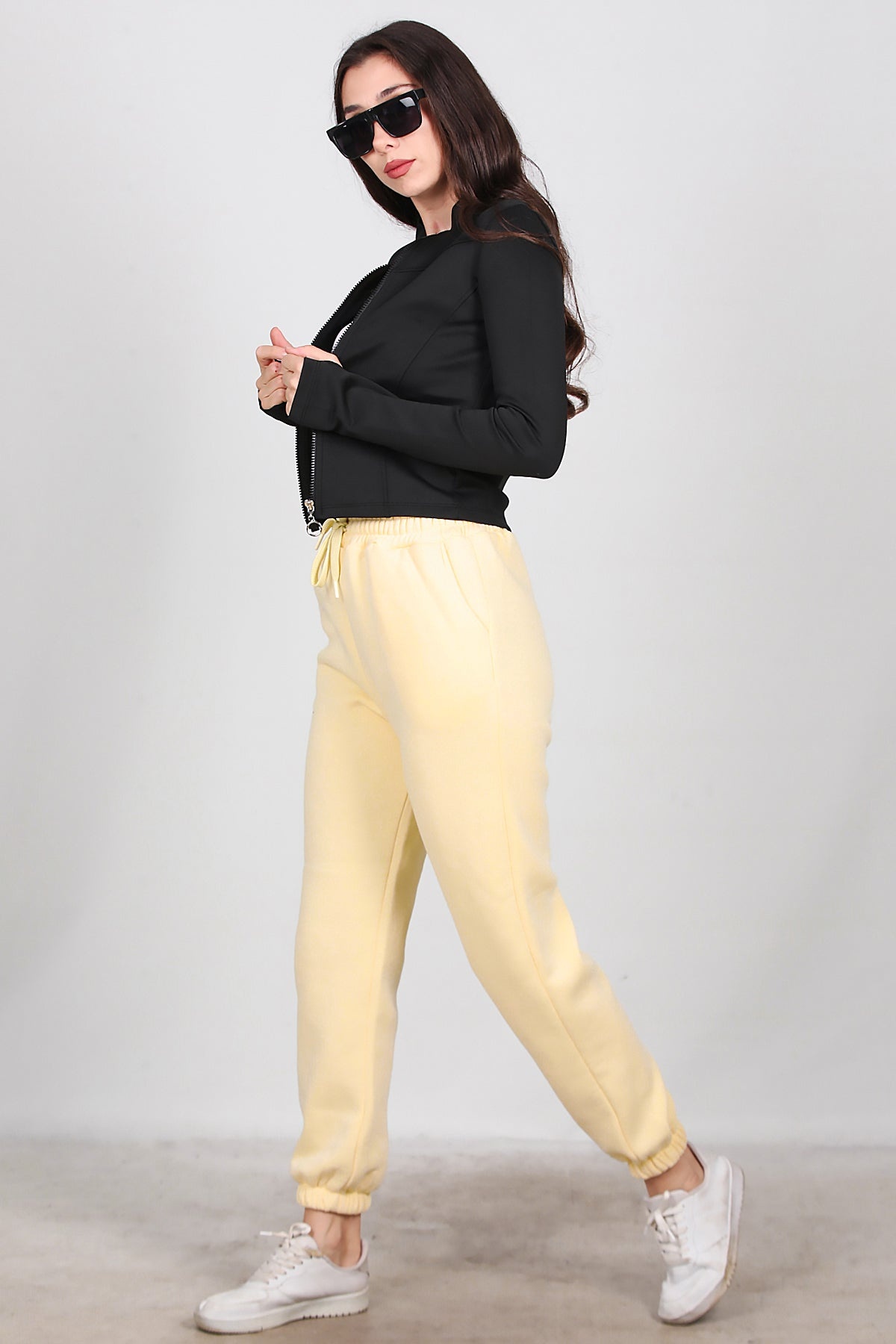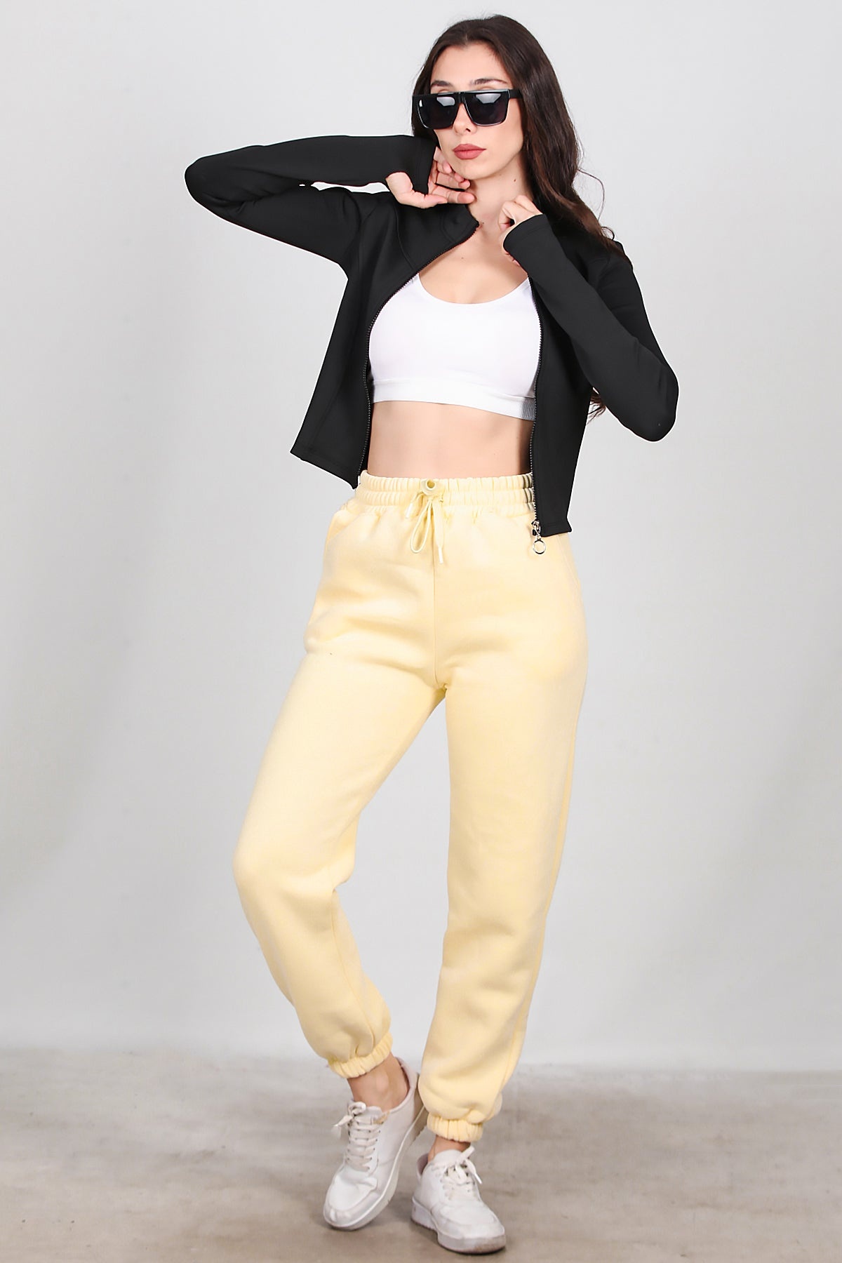 Kadın Paça Lastikli İçi Şardonlu Eşofman Altı Sarı
