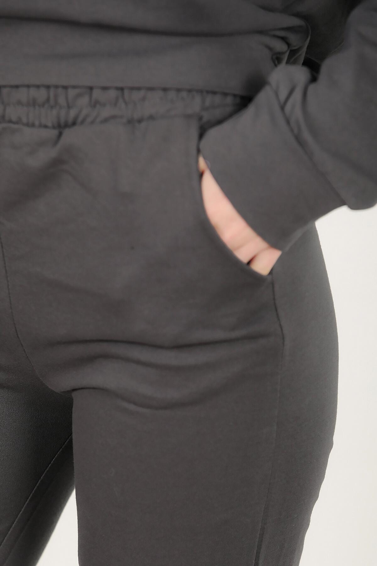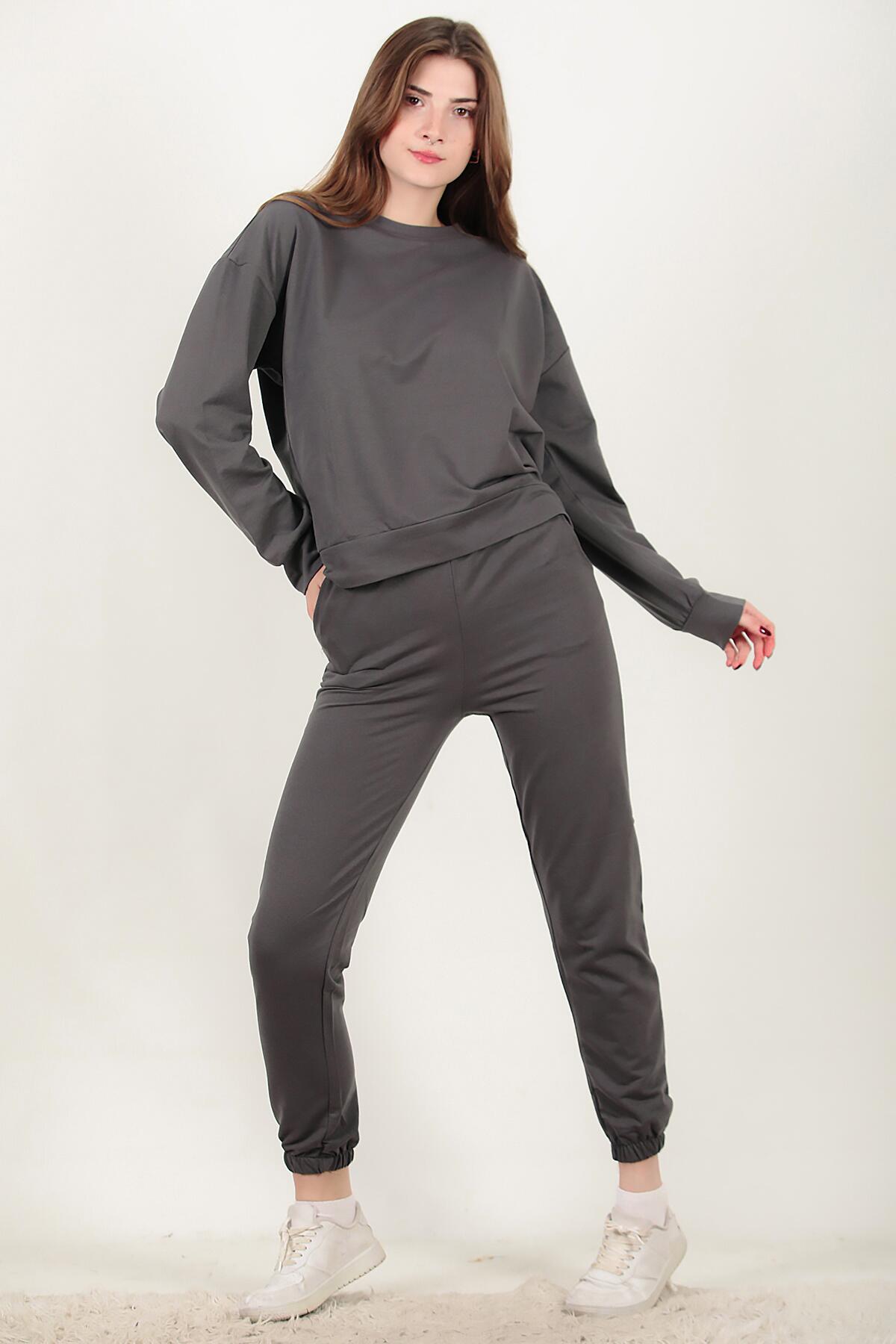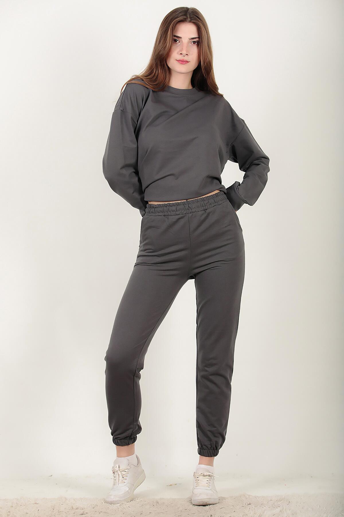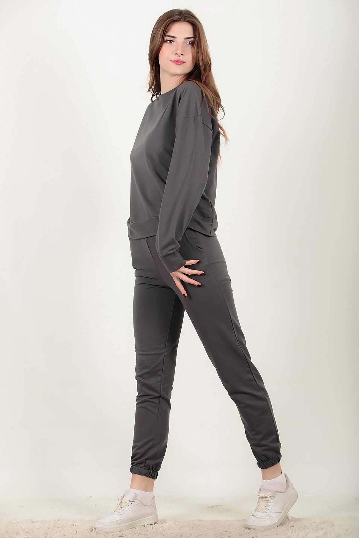 Numune Bedeni: 36 Numune Boyu: 62 cm ( Üst ) 98 cm ( Alt ) Kumaş Tipi: %85 Pamuk % 15 Polyester Kol: Uzun Kol Bel ve Paça: Lastikli