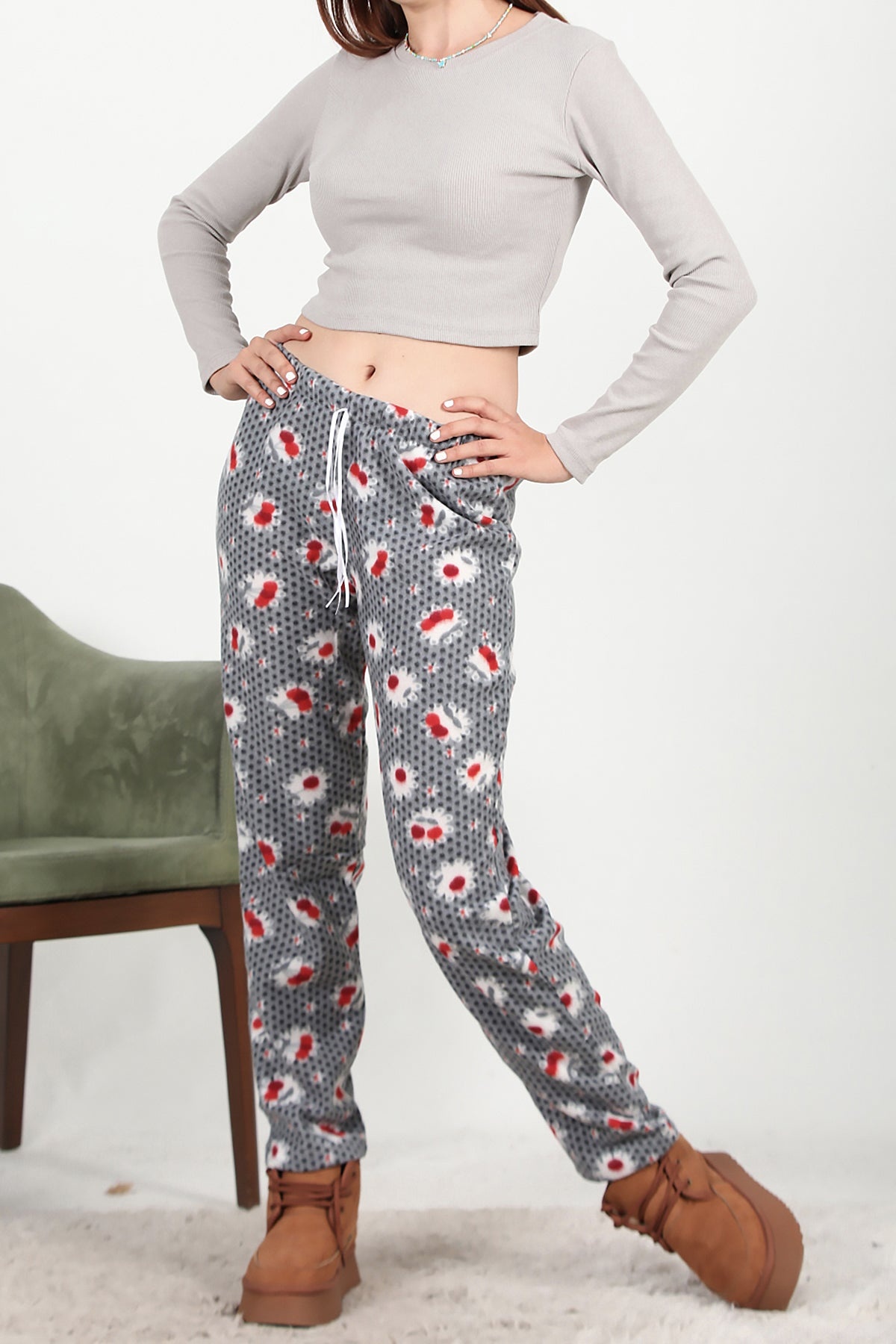Kadın Polar Pijama Açık Gri