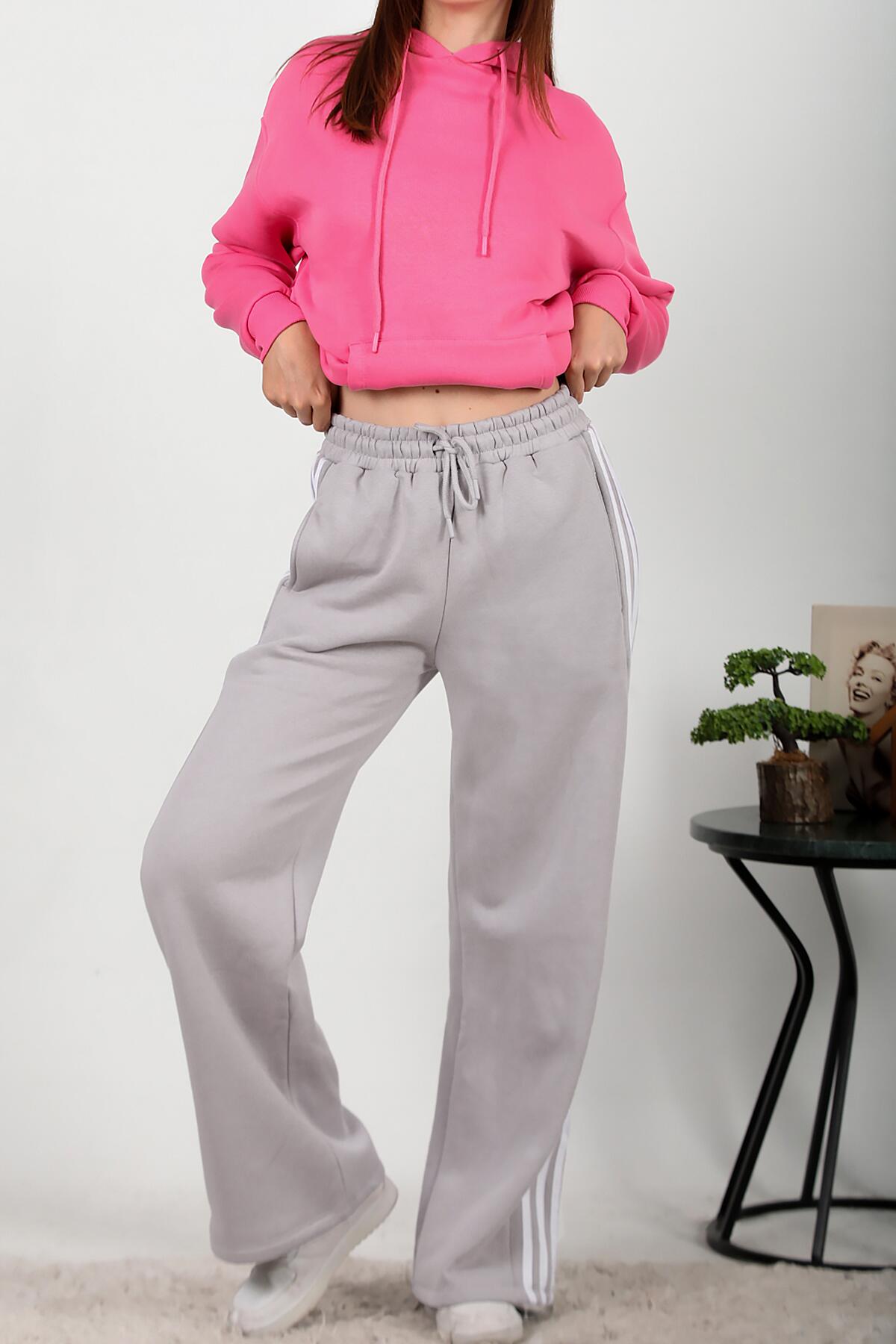 Kadın Üç İplik Biyeli Bol Paça Pantolon Gri