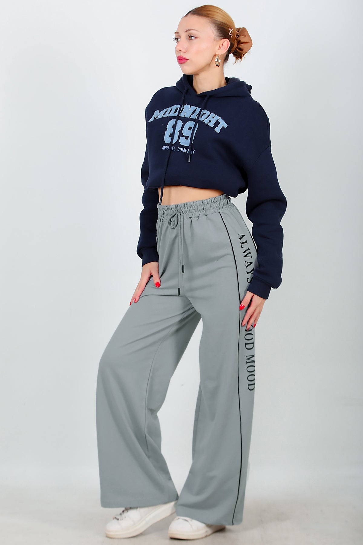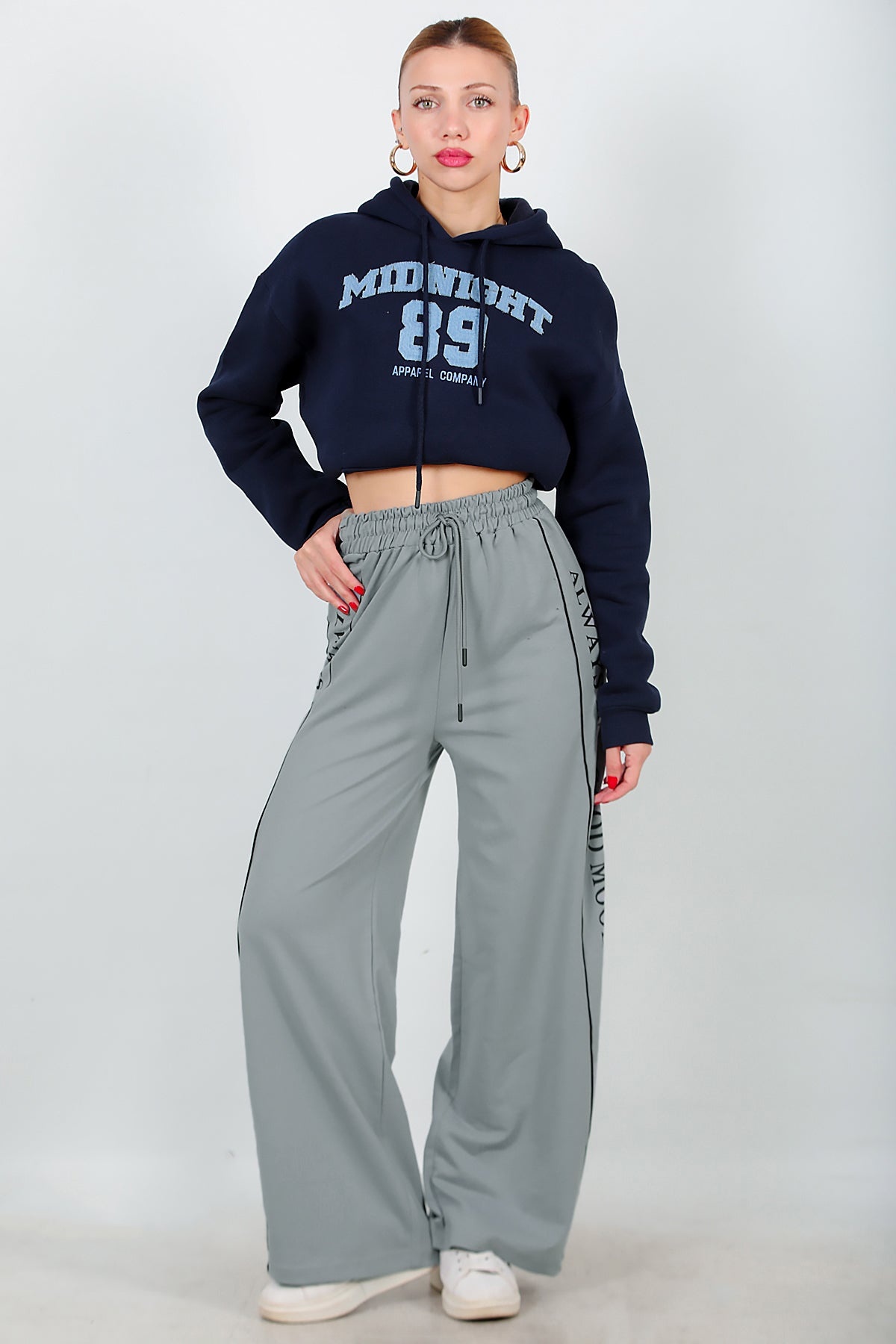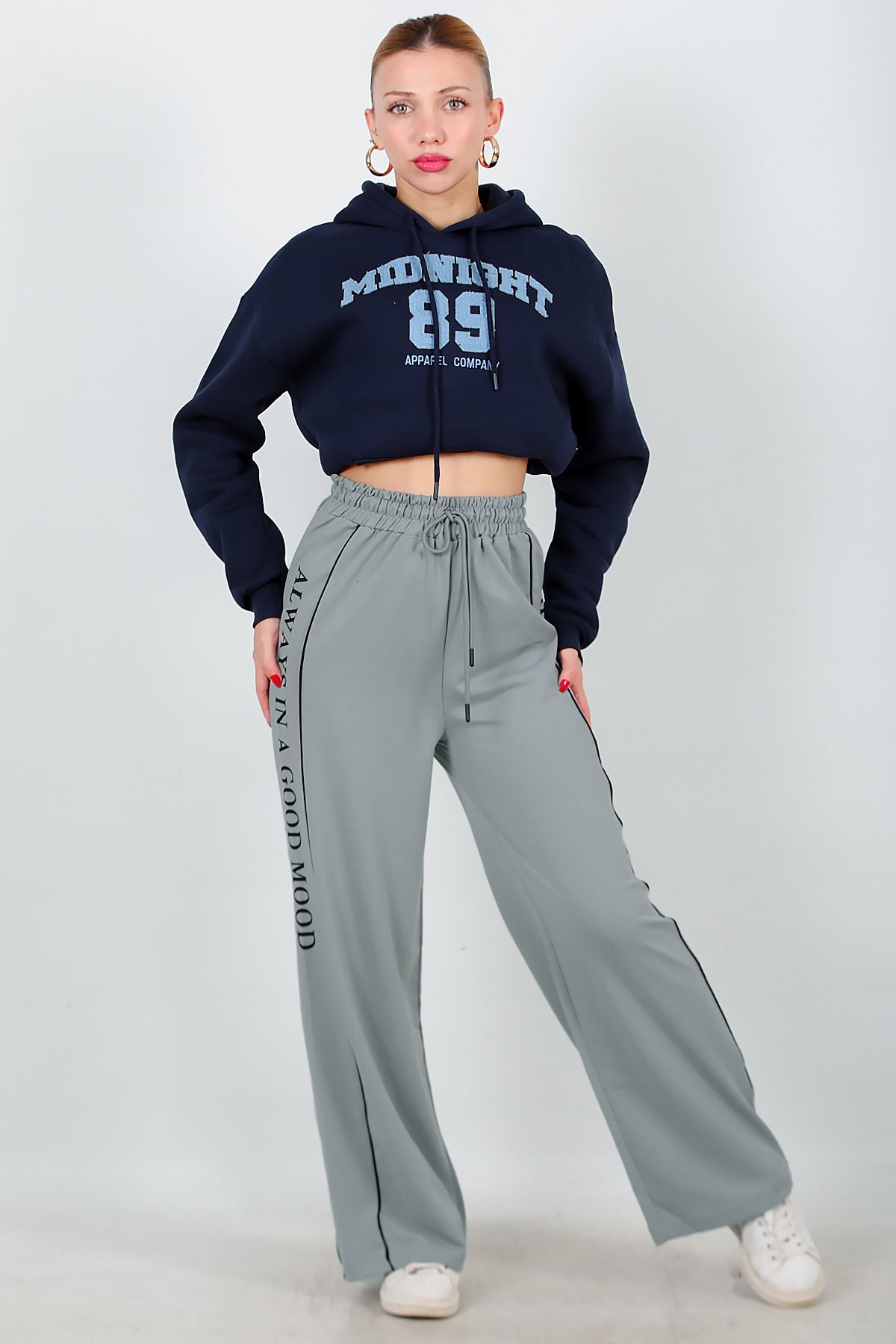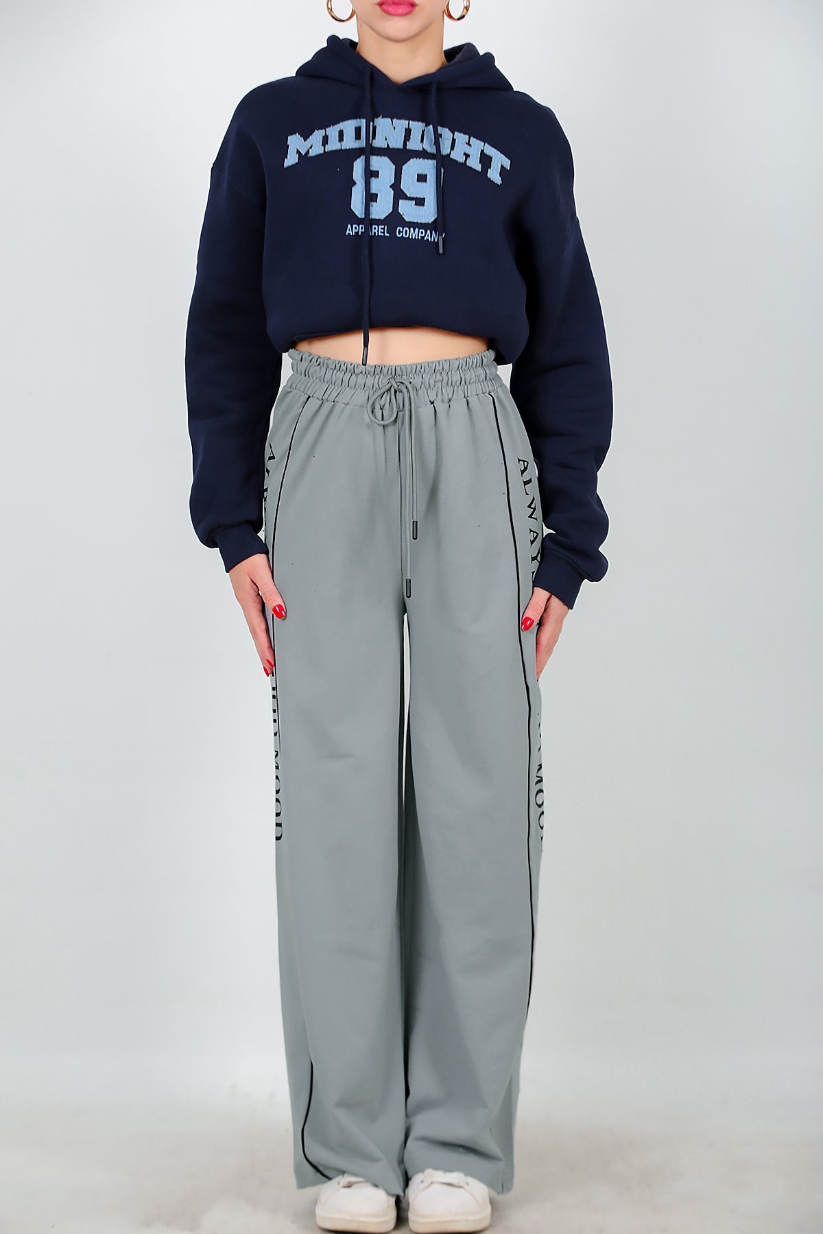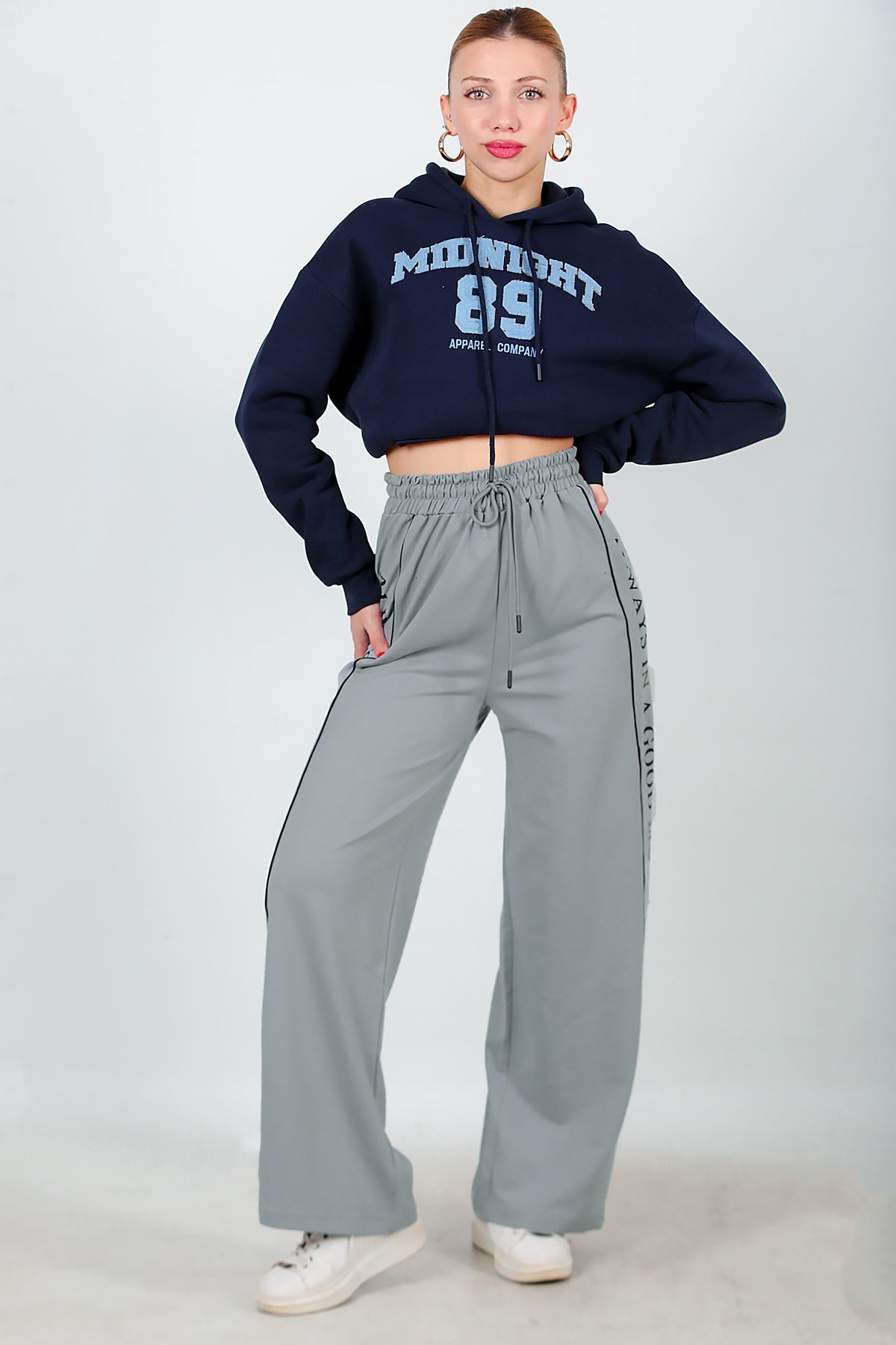 Numune Bedeni: 36Numune Boyu: 103 cmKumaş Tipi: %85 Pamuk %15 PolyesterÜrün Özelliği: Yan Şeritli Baskılı Eşofman