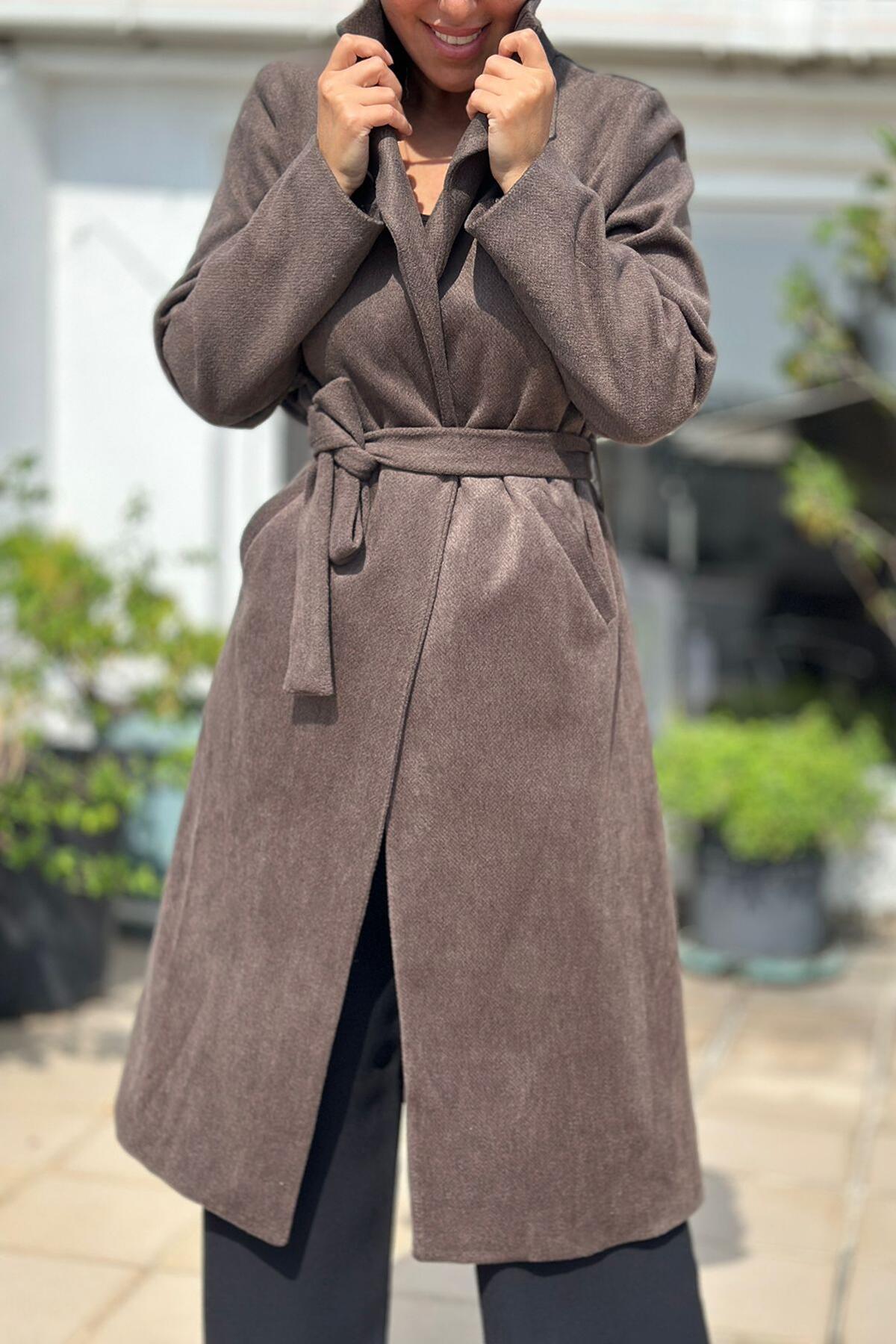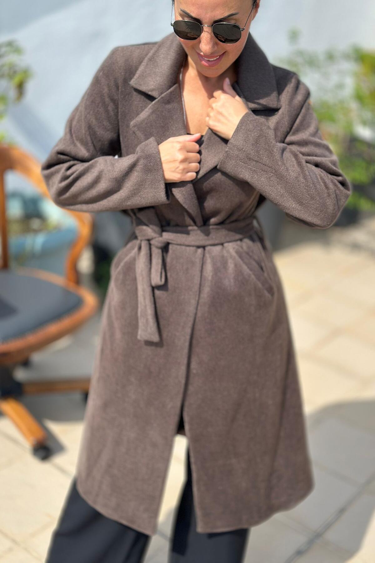 Numune Bedeni: 36Numune Boyu: 116 cmKumaş Tipi: %70 Polyester %30 PamukKol: Uzun KolBel: BağlamalıKumaş Türü: KeçeÜrün Özelliği: Astarlı