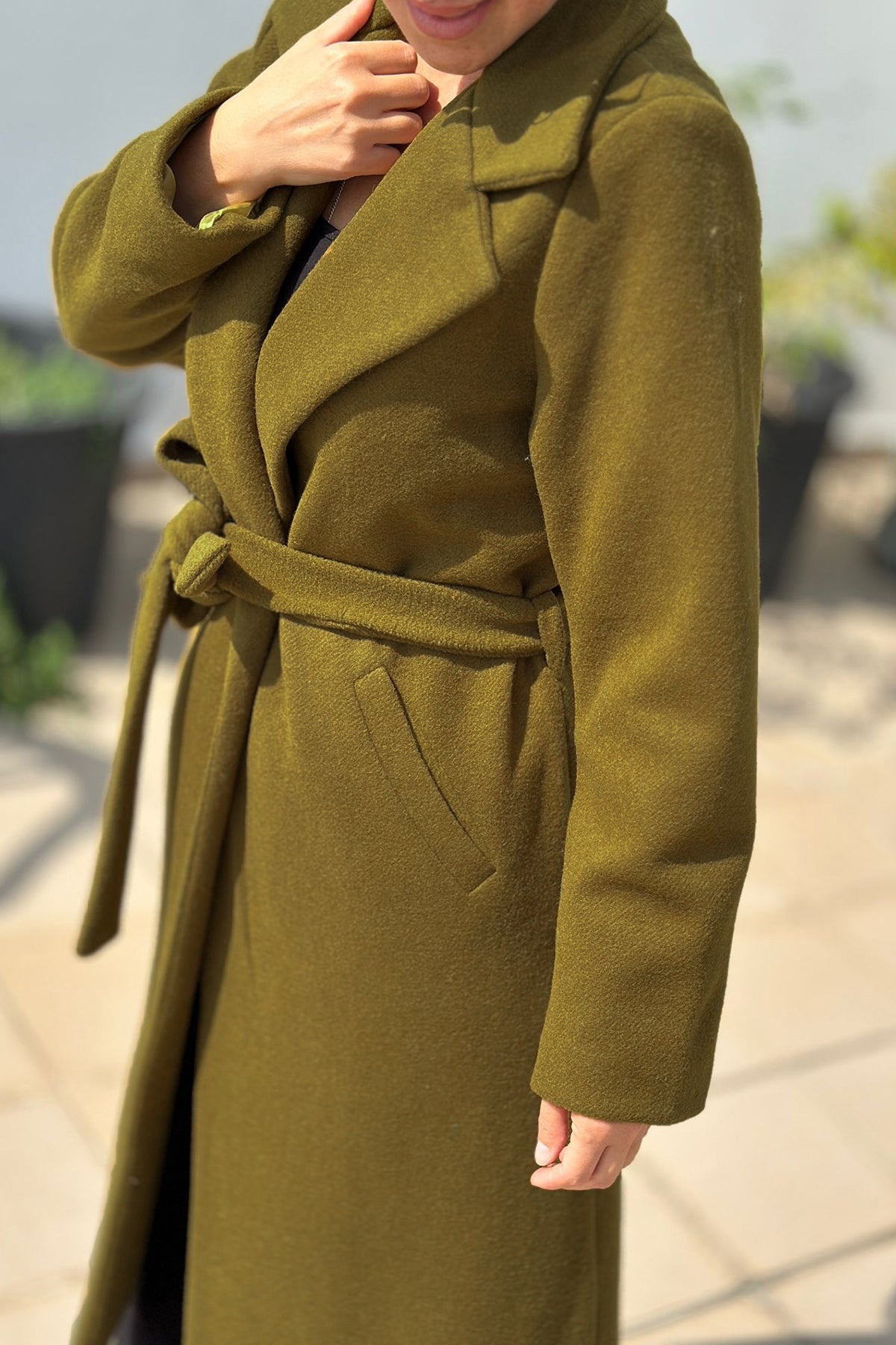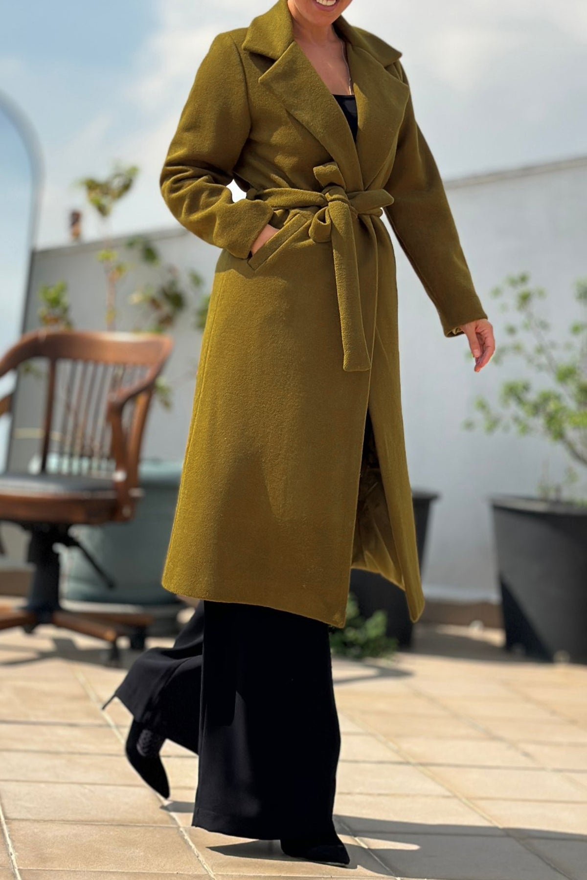 Numune Bedeni: 36Numune Boyu: 116 cmKumaş Tipi: %70 Polyester %30 PamukKol: Uzun KolBel: BağlamalıKumaş Türü: KeçeÜrün Özelliği: Astarlı
