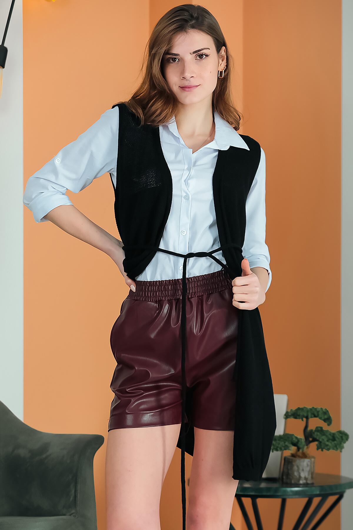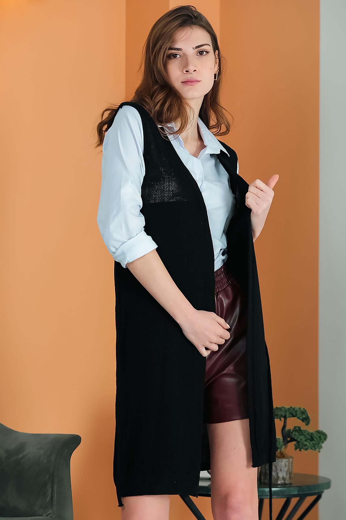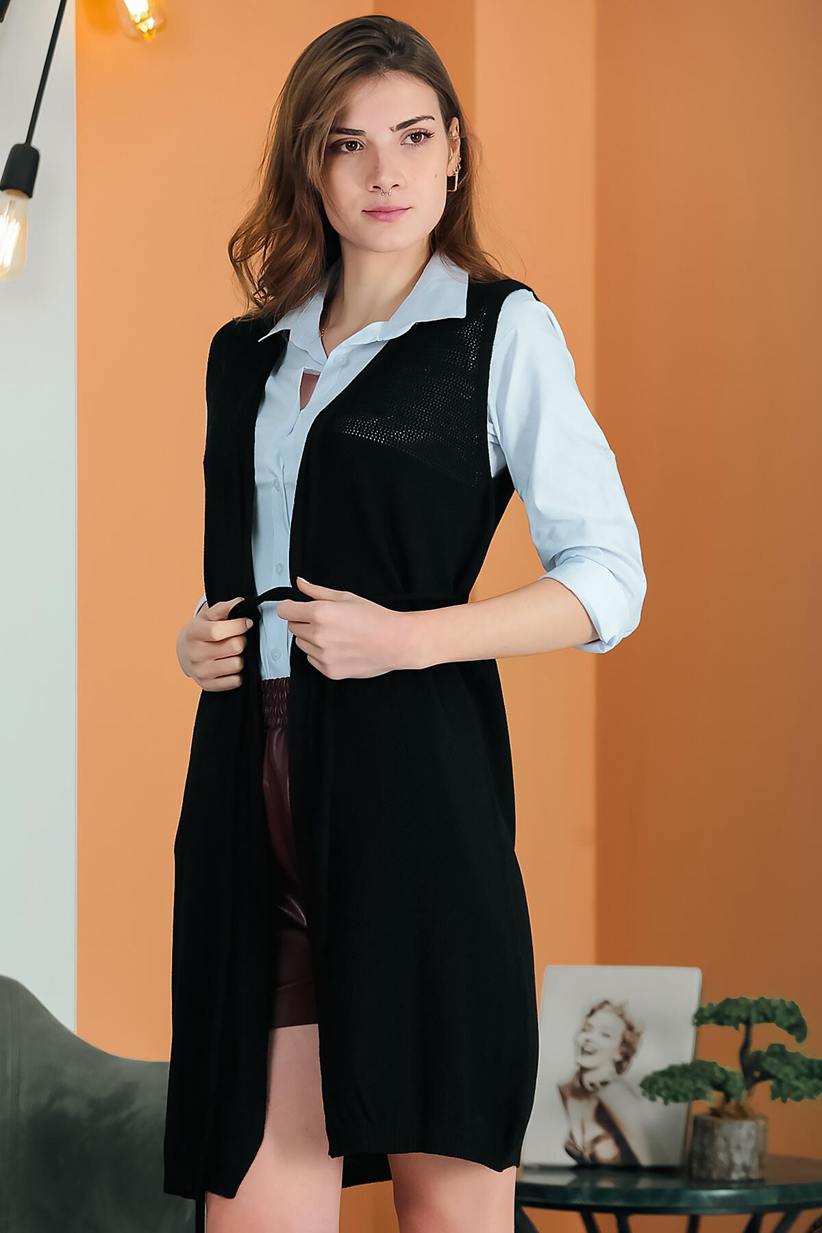 Kadın Bel Kuşaklı Uzun Yelek Siyah