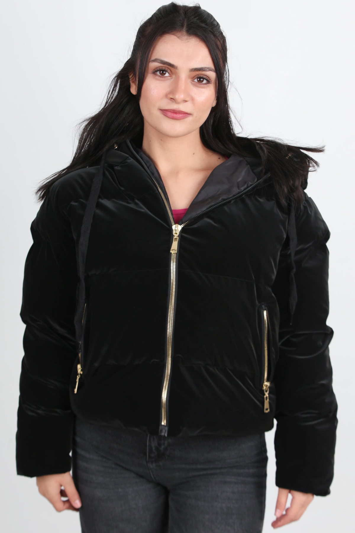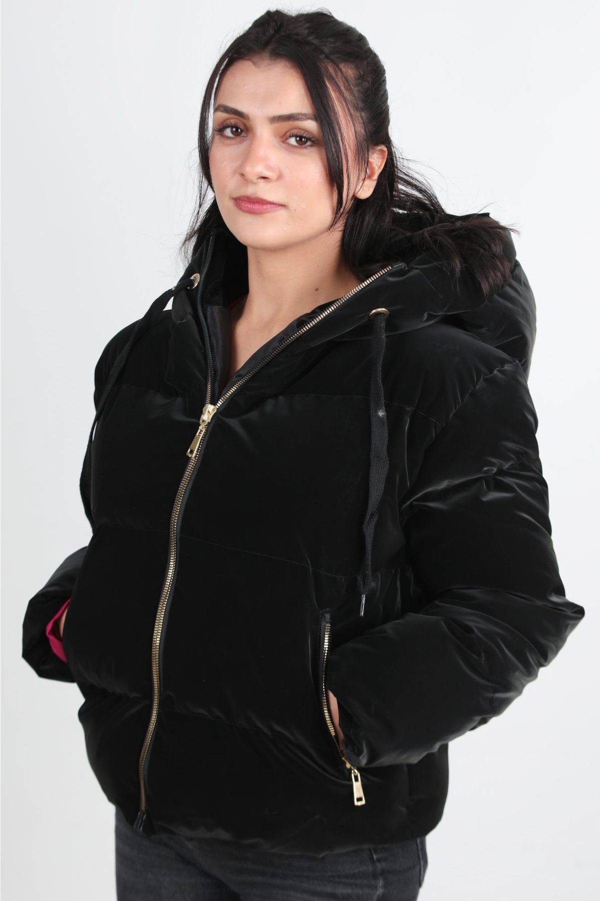 Kadın Kapşonlu Kısa Şişme Mont Siyah