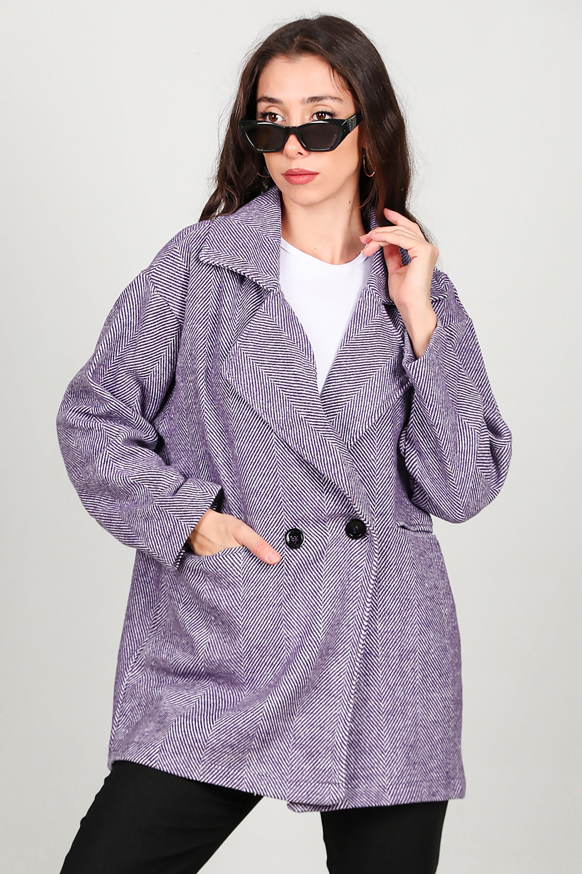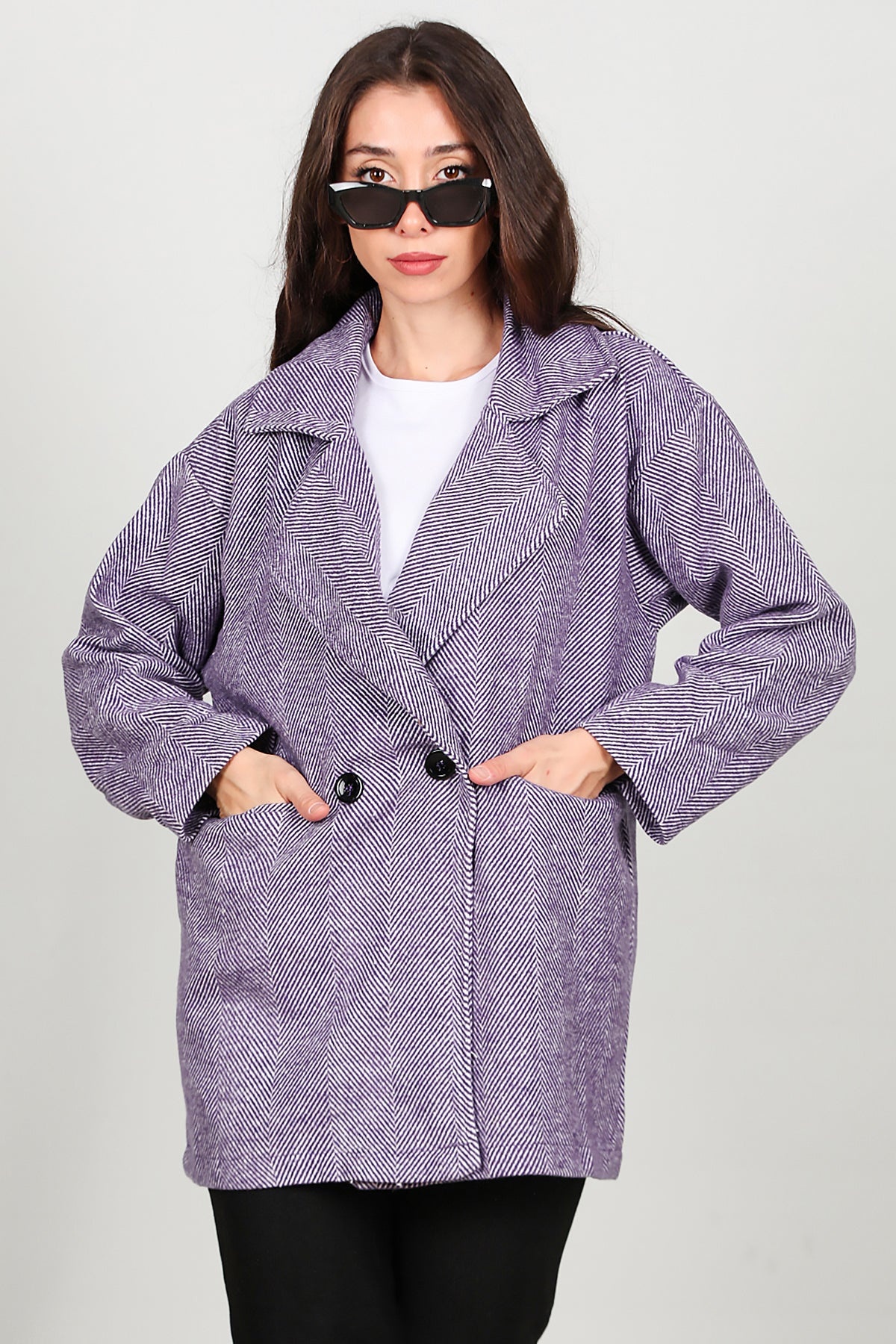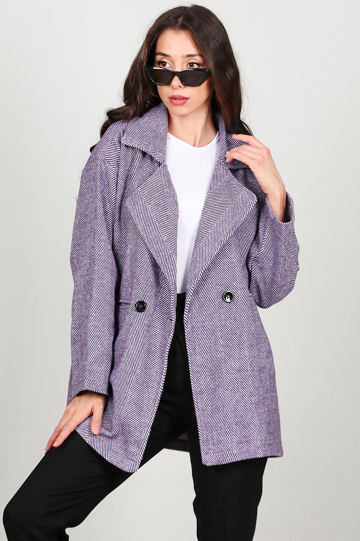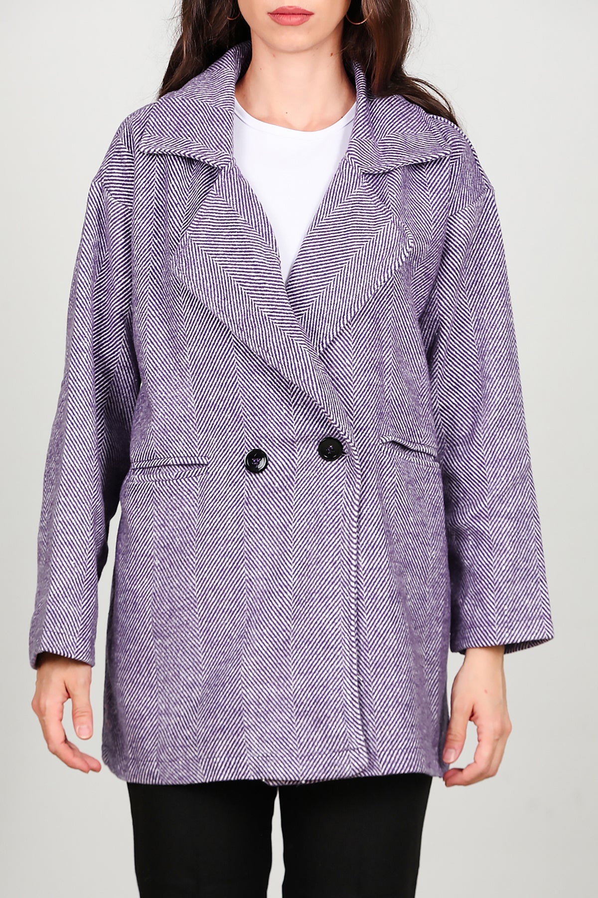 Kadın Kısa Kaşe Kaban Mor