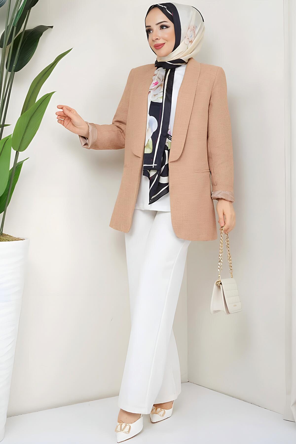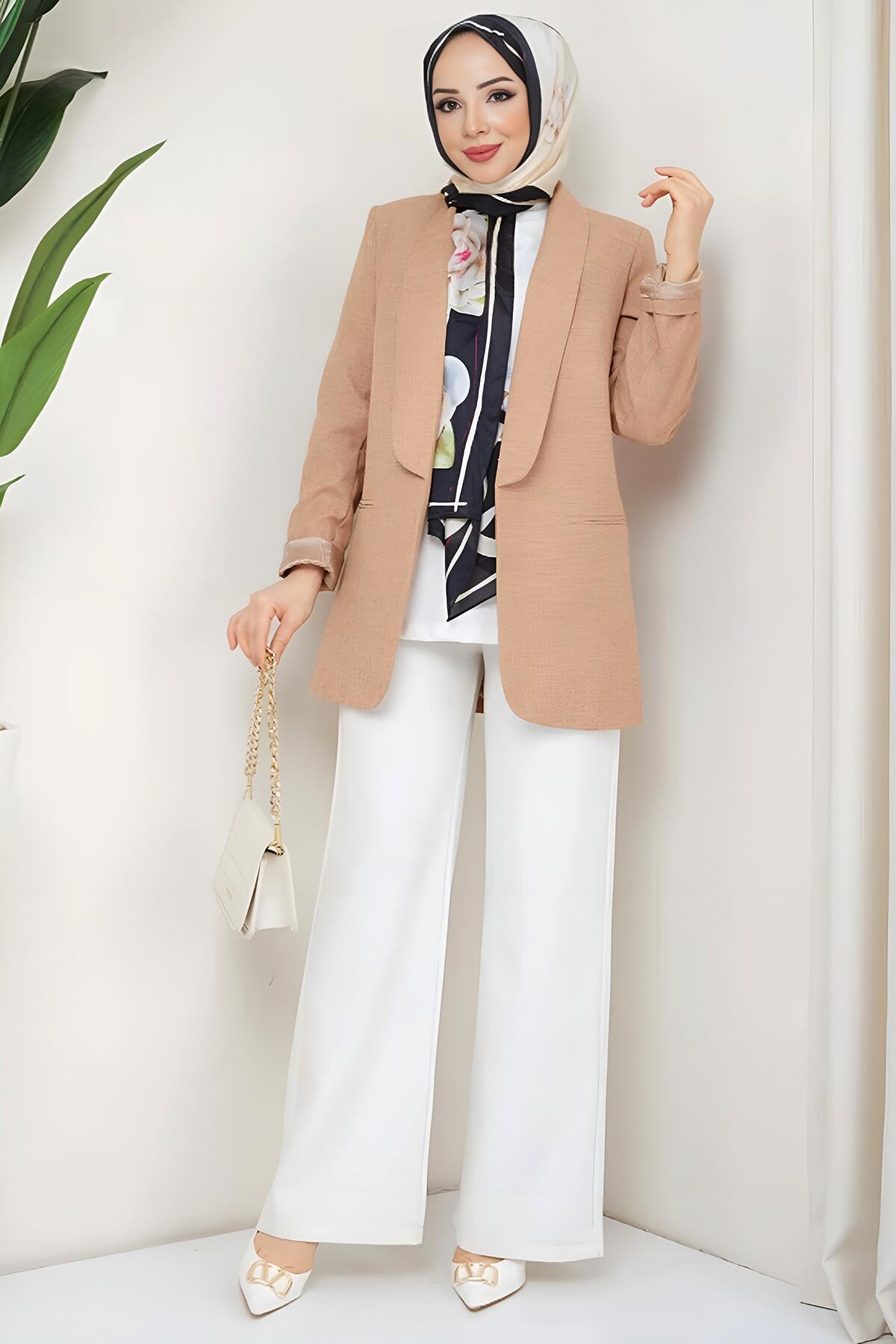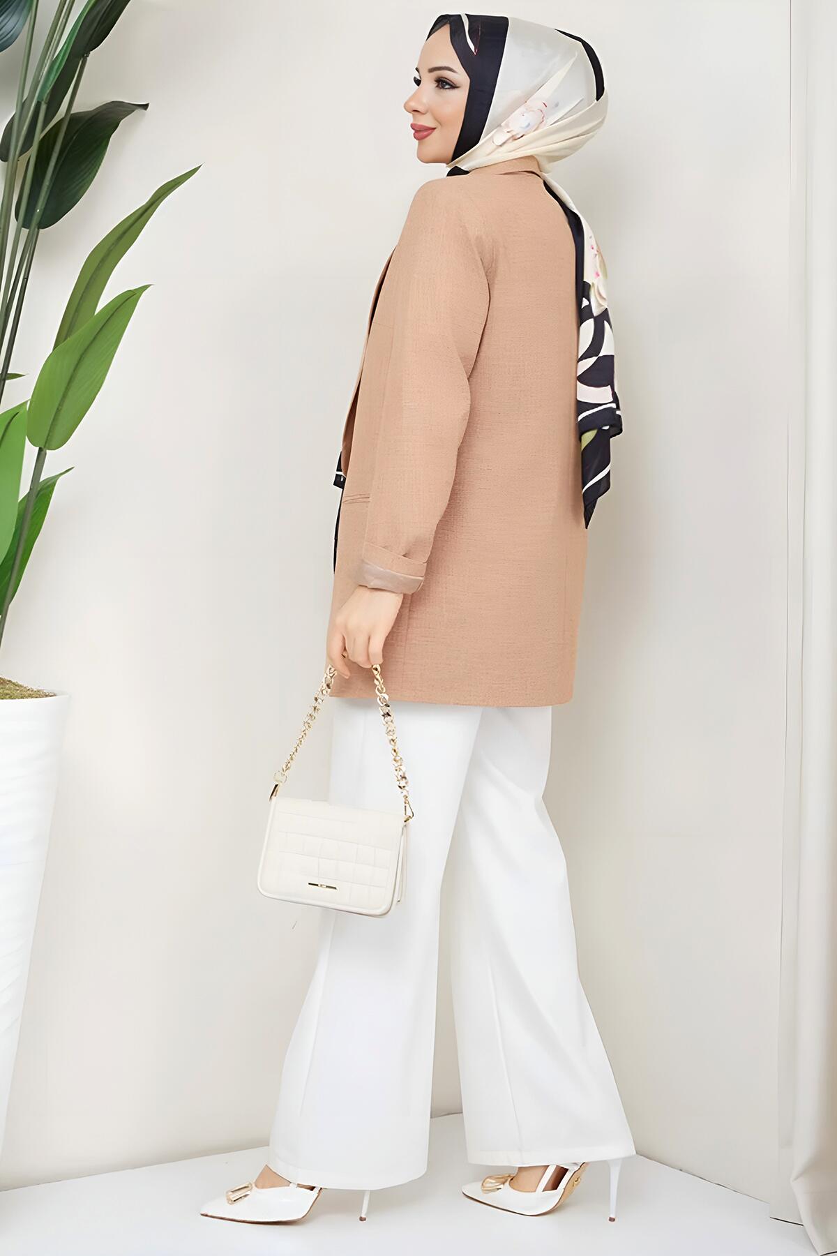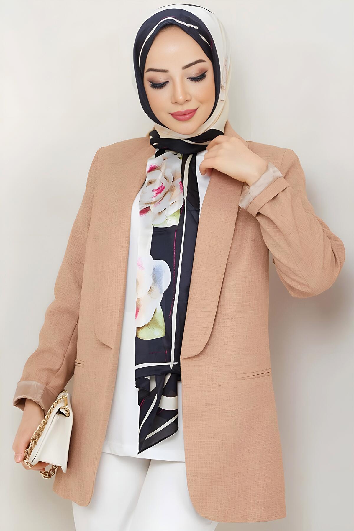 Ürün Özelliği: Mendil Yaka Keten Blazer Ceket
