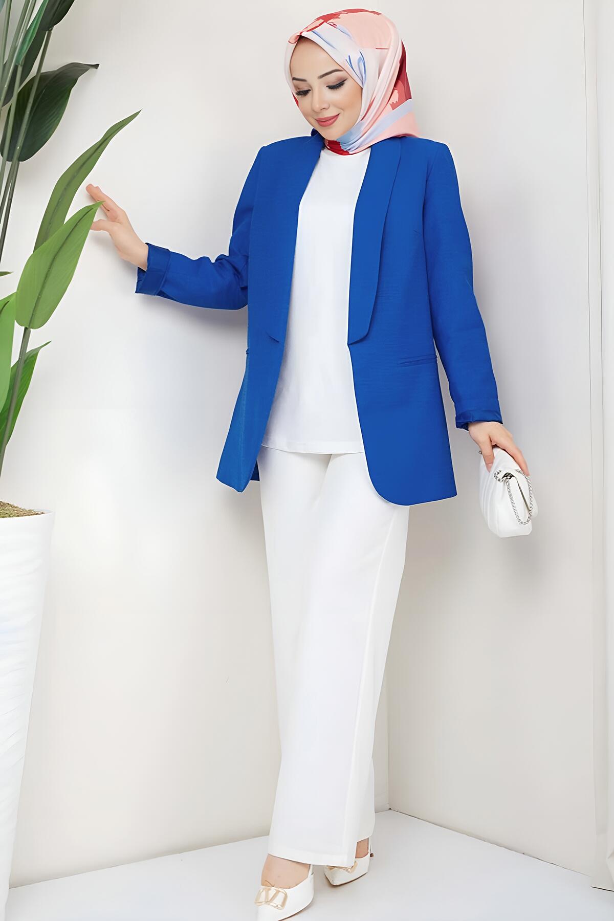 Ürün Özelliği: Mendil Yaka Keten Blazer Ceket