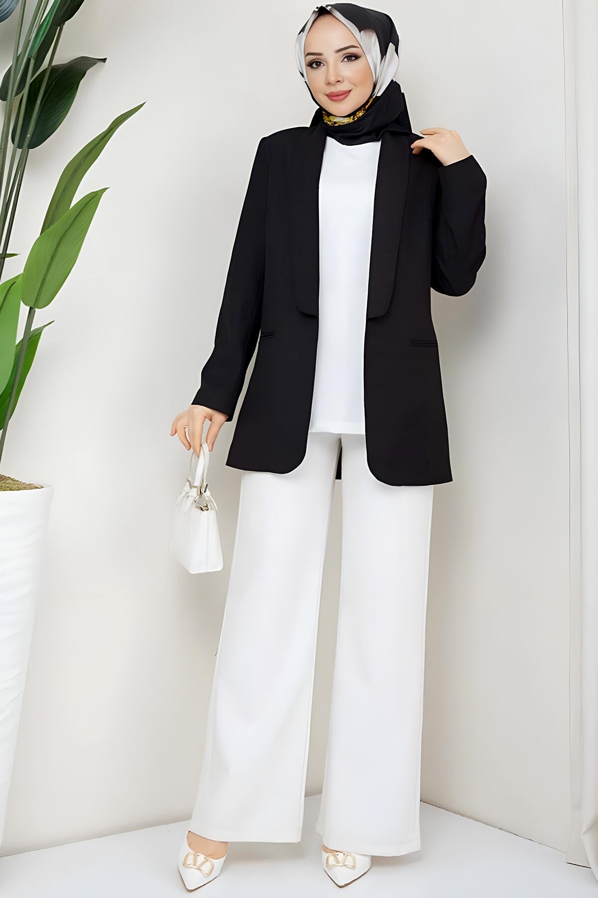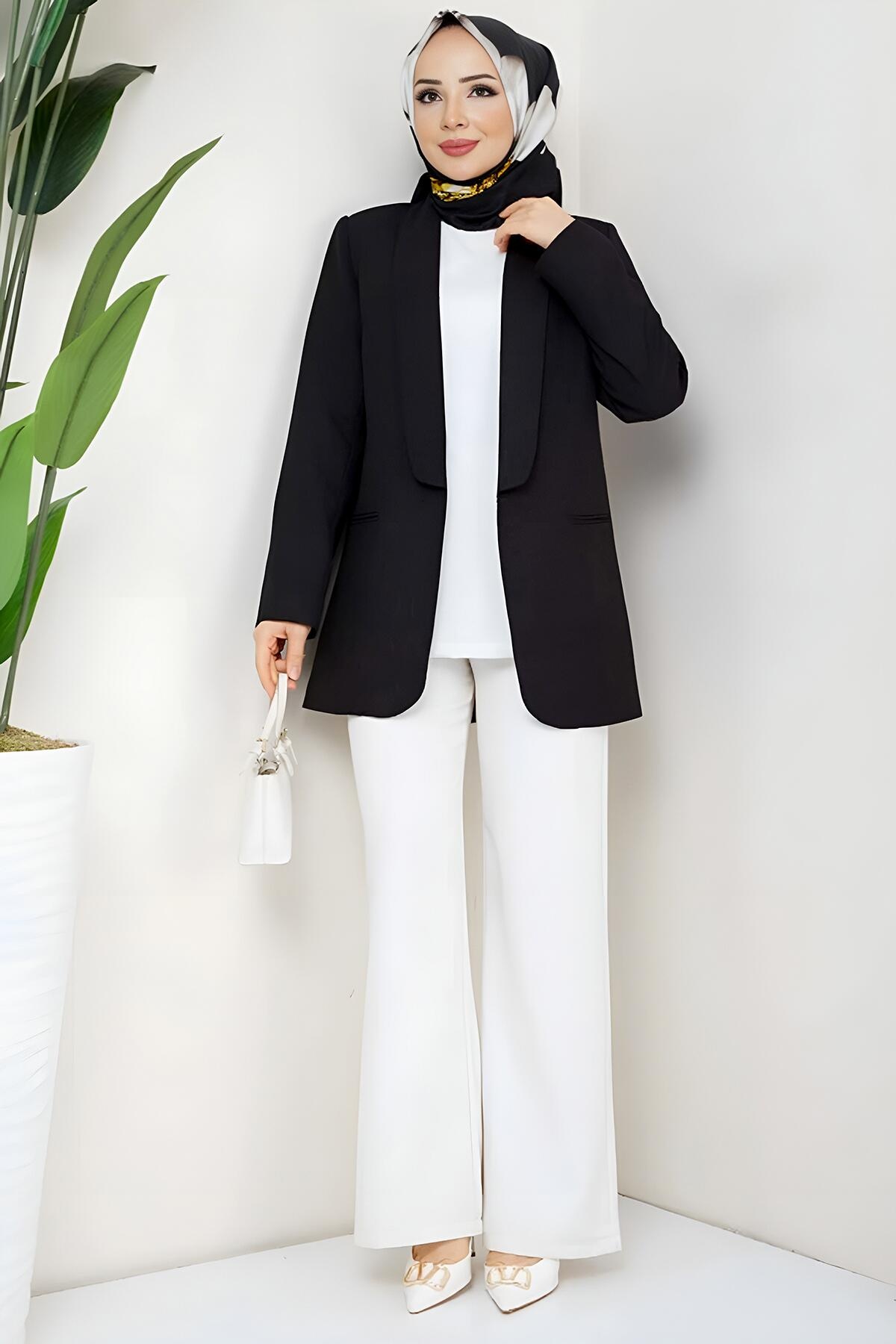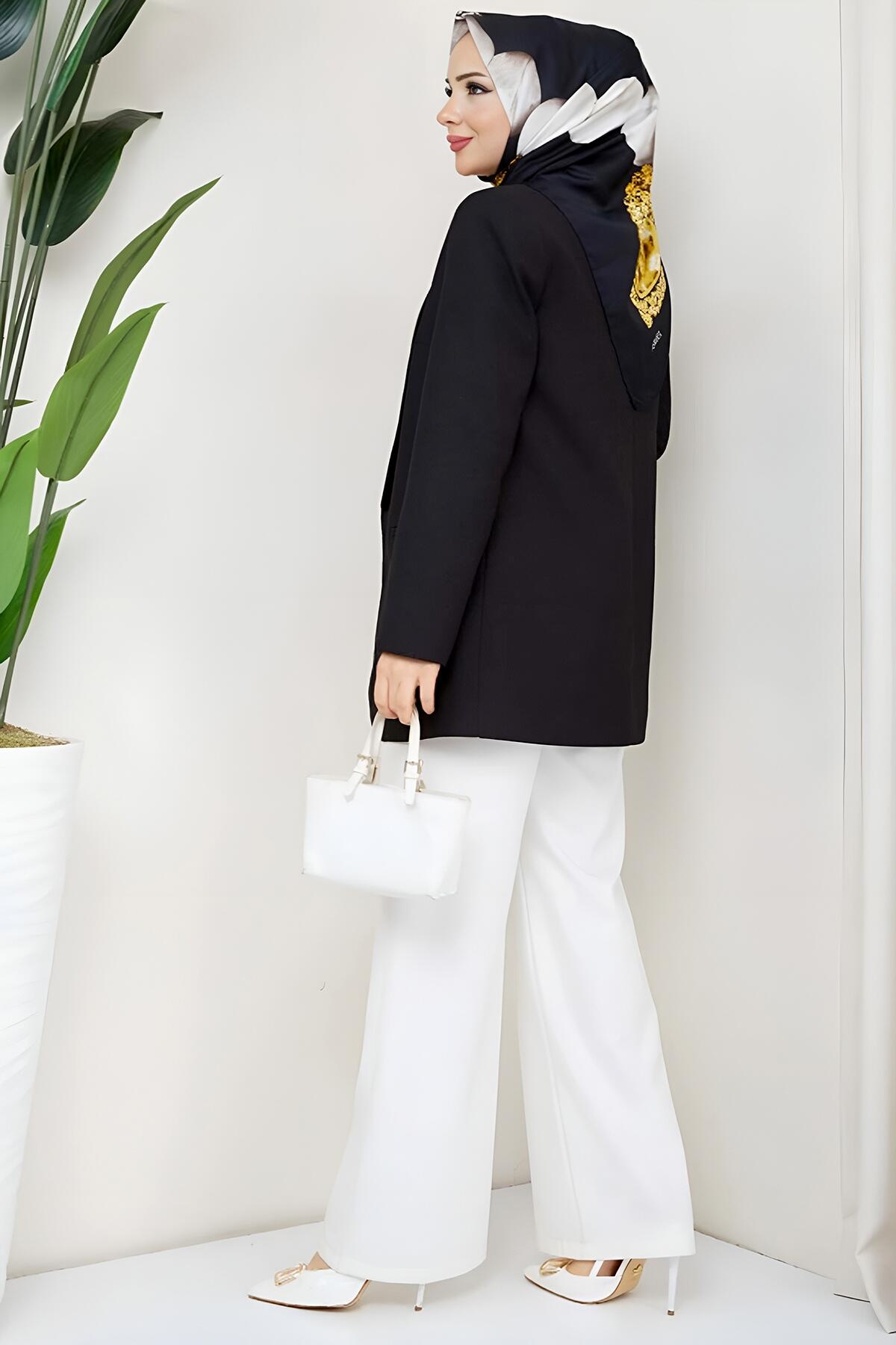 Kadın Mendil Yaka Blazer Ceket Siyah
