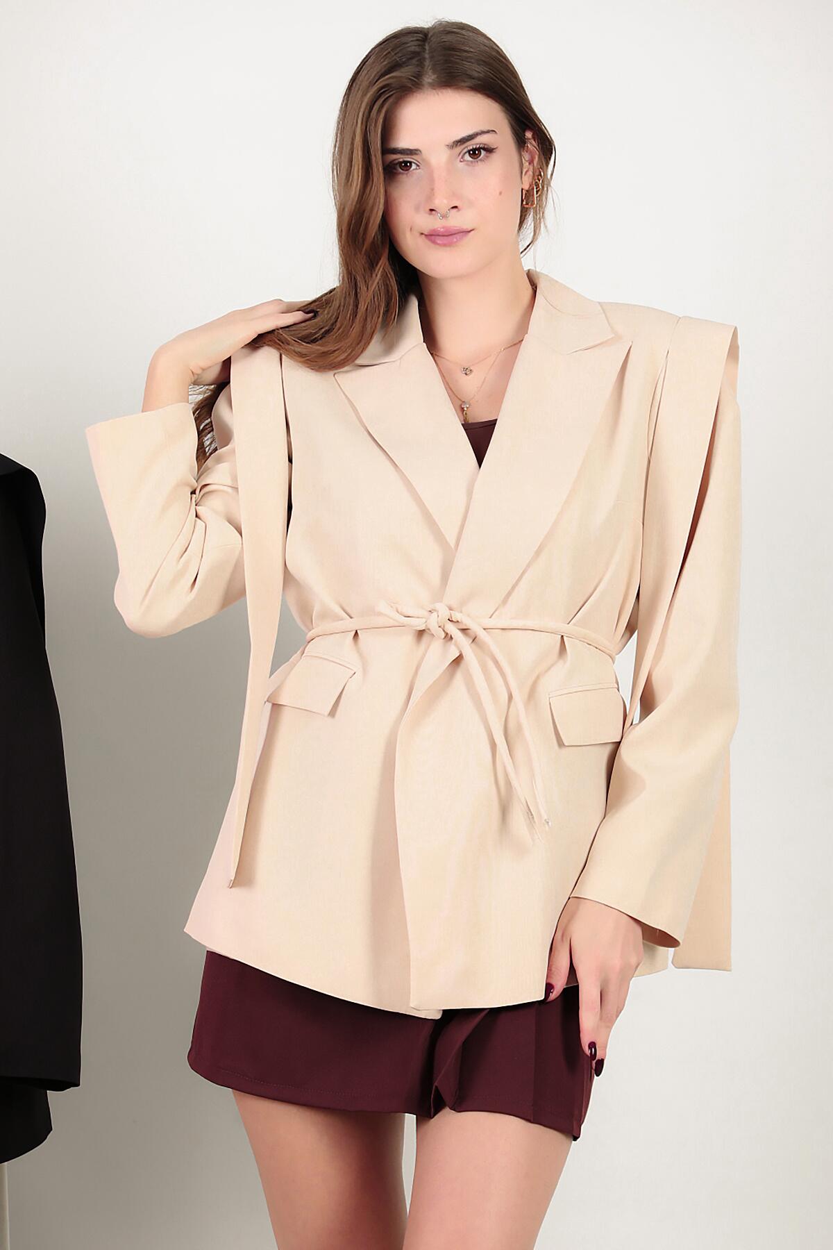 Kadın Omzu Kuşaklı Blazer Ceket Bej