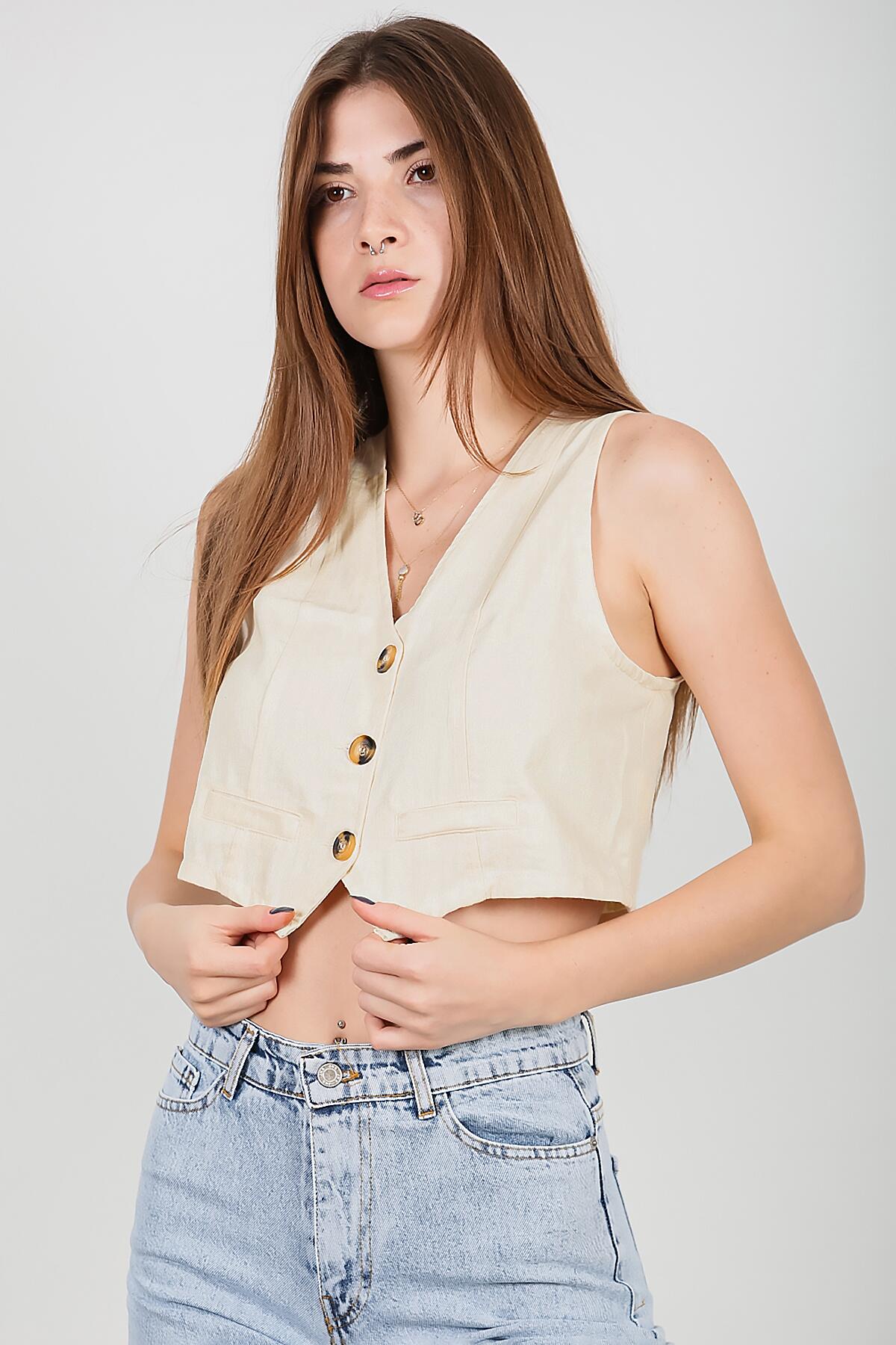 Numune Bedeni: 36 Numune Boyu: 40 cm Kumaş Tipi: %100 Pamuk Kol: Kolsuz