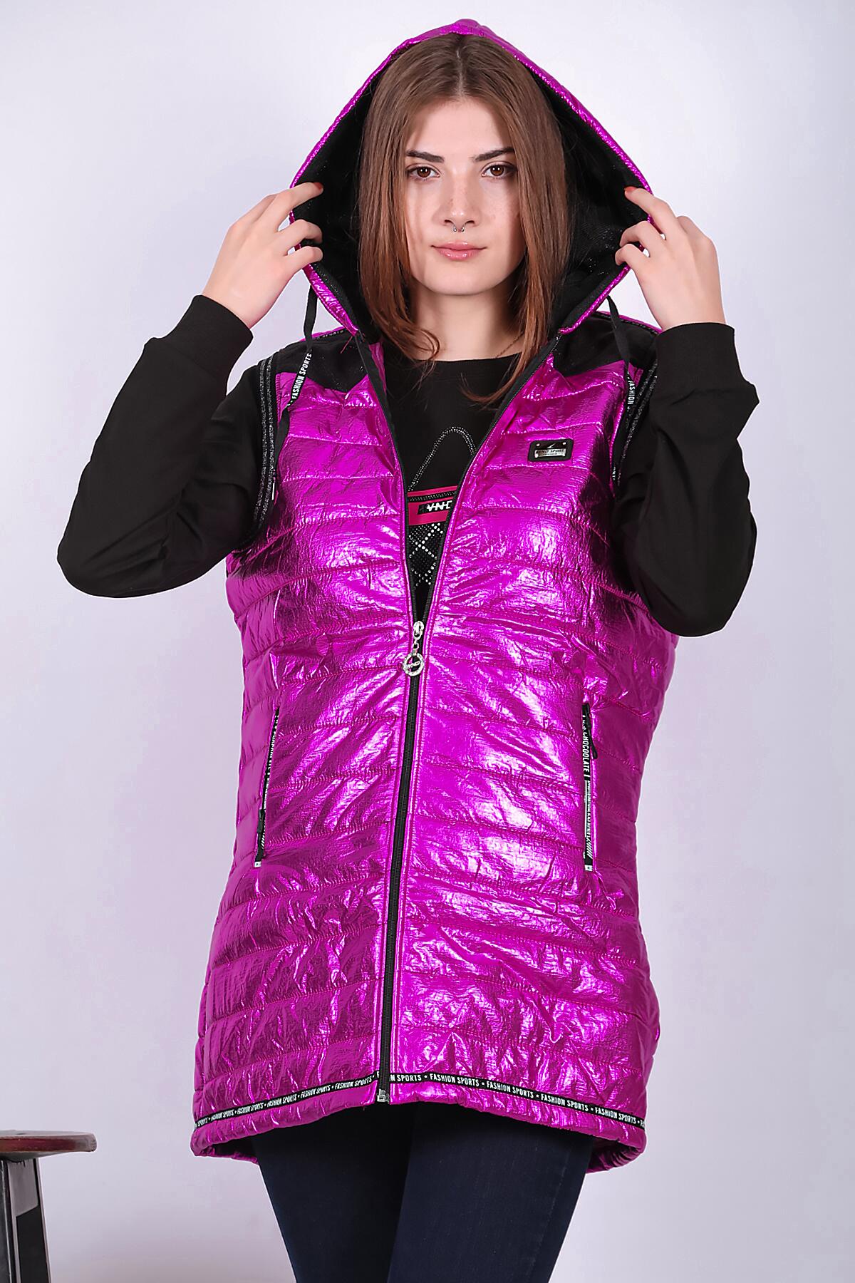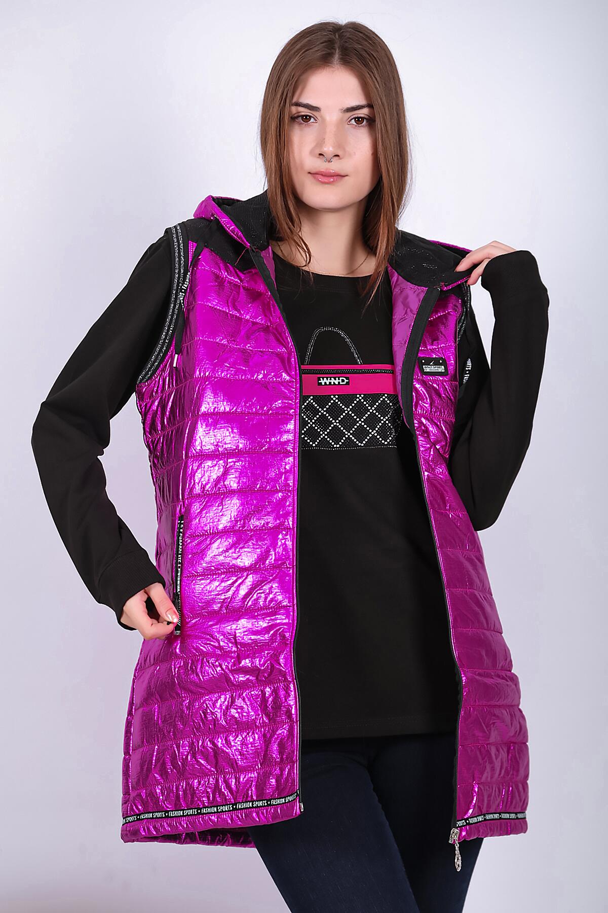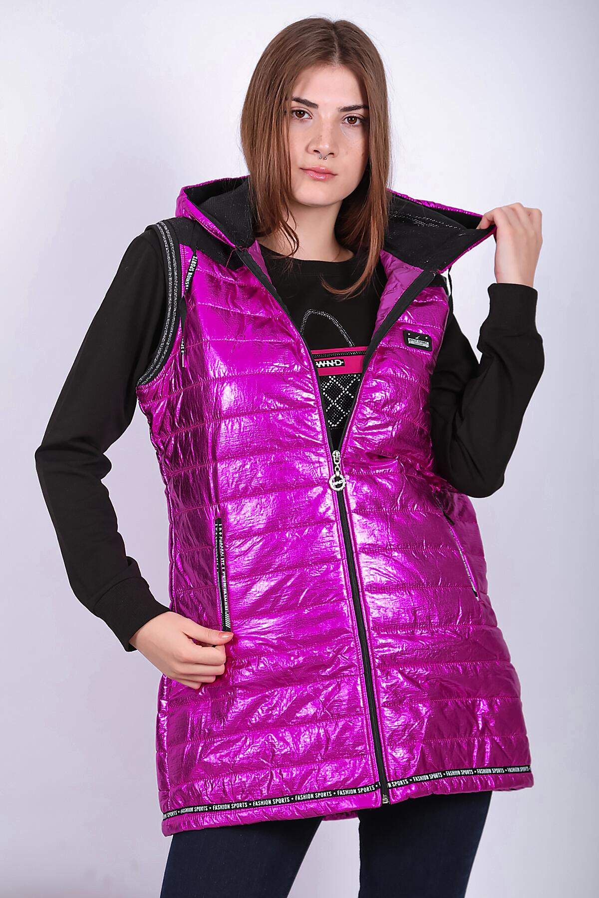 Kadın Parlak Uzun Yelek Fuşya