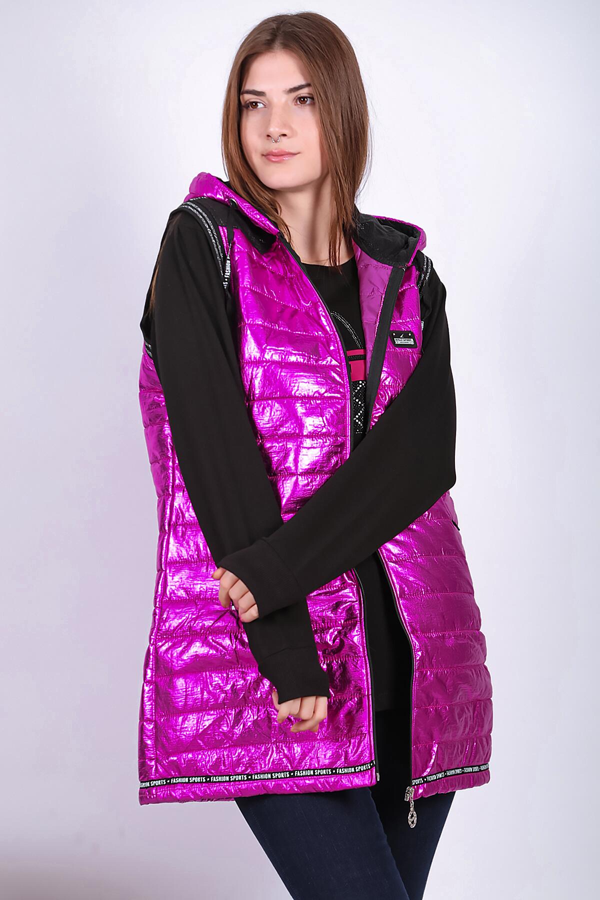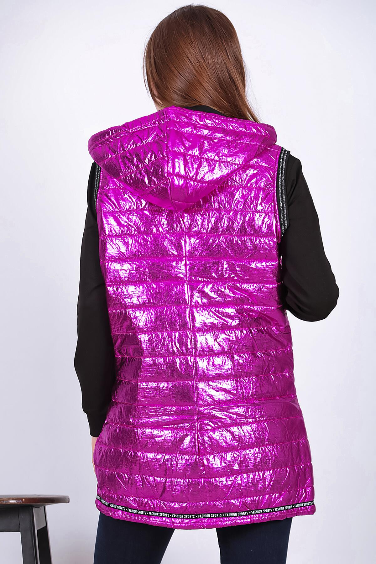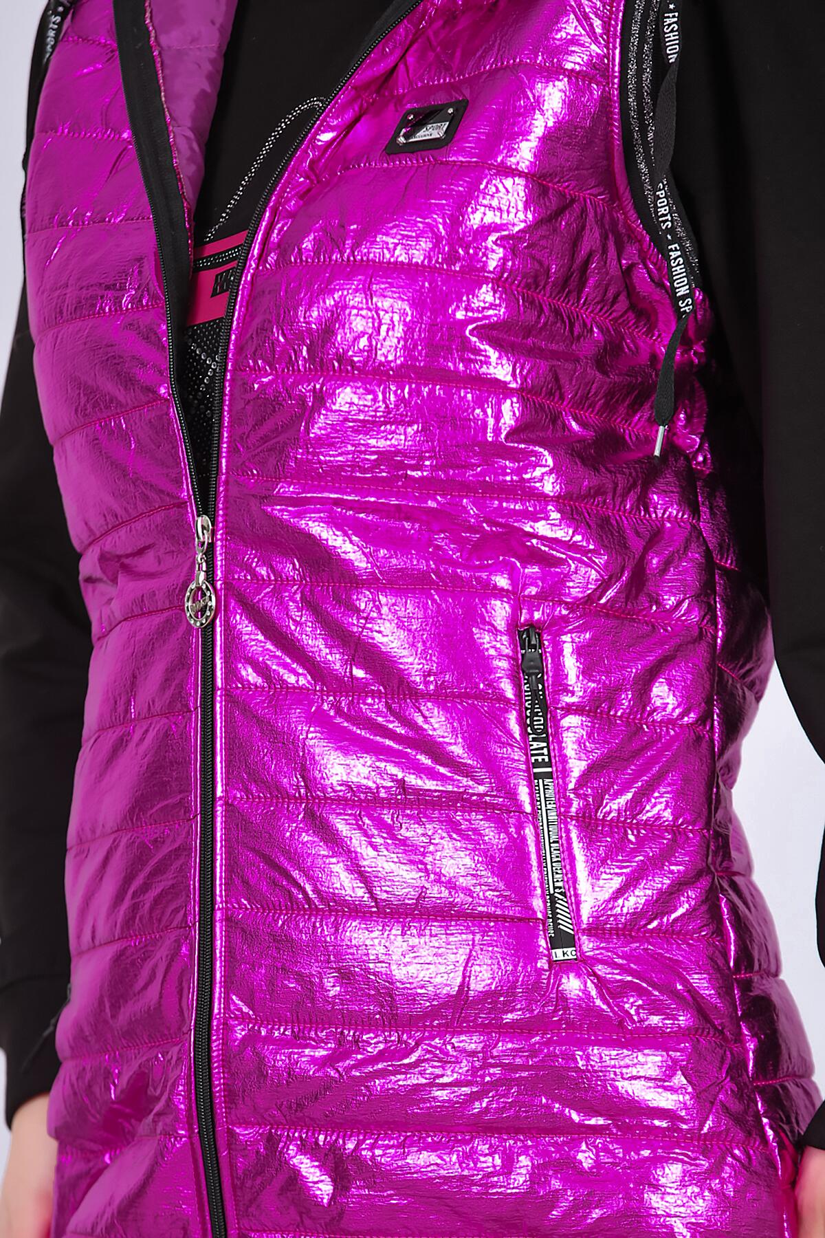 Kadın Parlak Uzun Yelek Fuşya