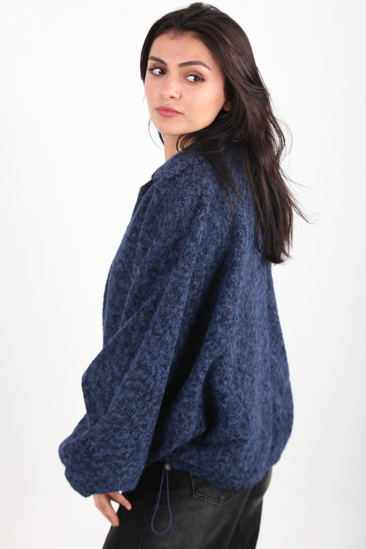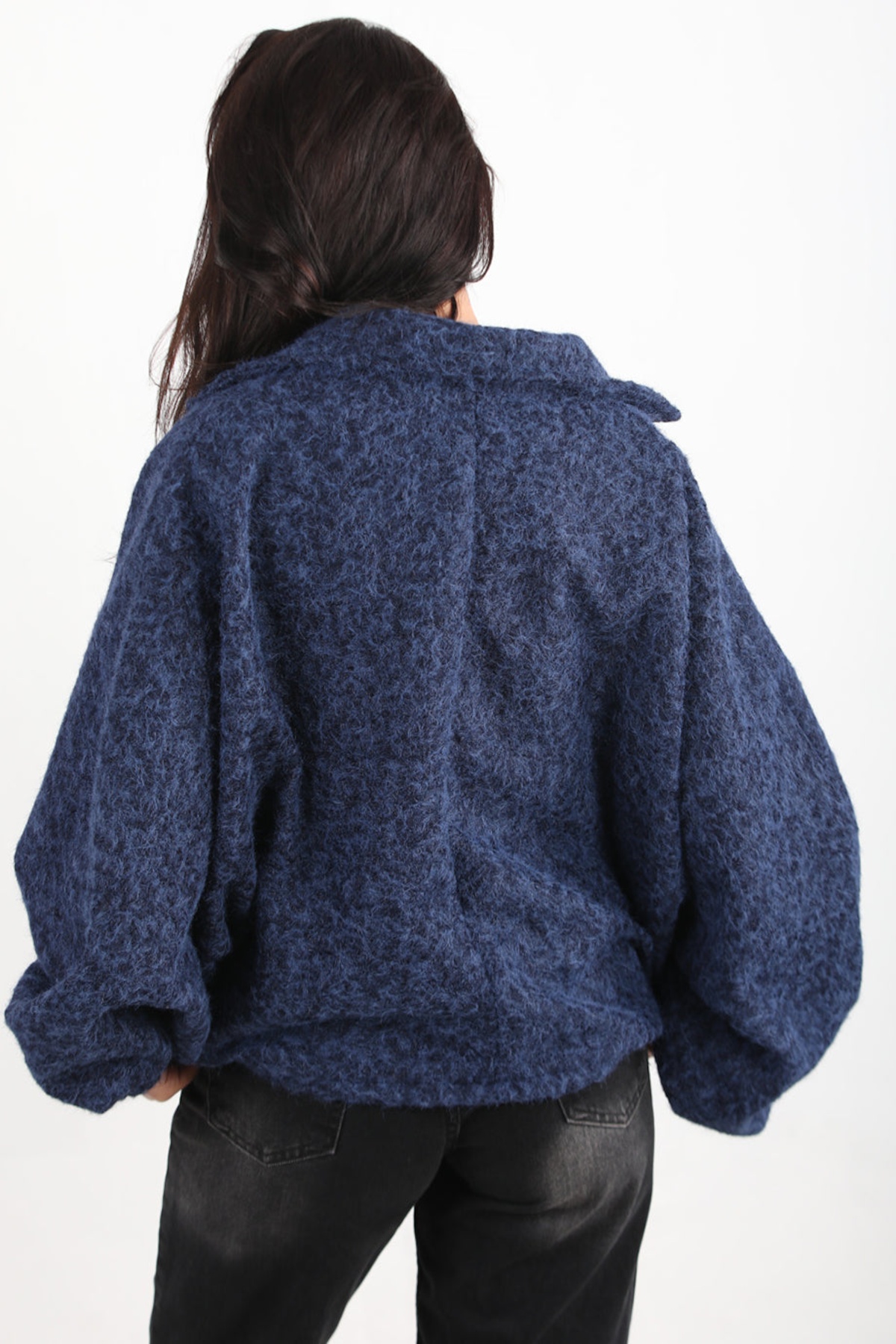Kadın Sakallı Kaşe Ön Fermuarlı Ceket Lacivert