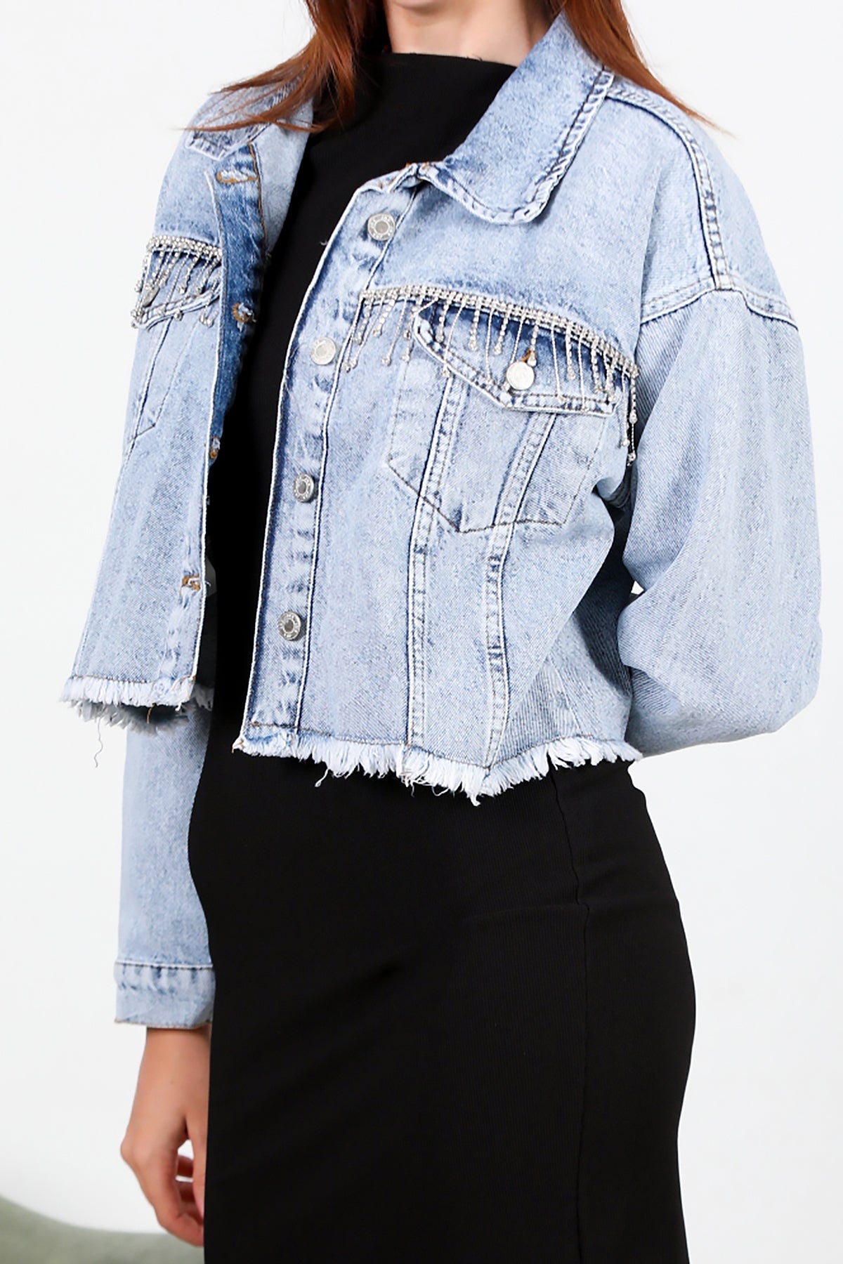 Kadın Taşlı Kot Ceket
