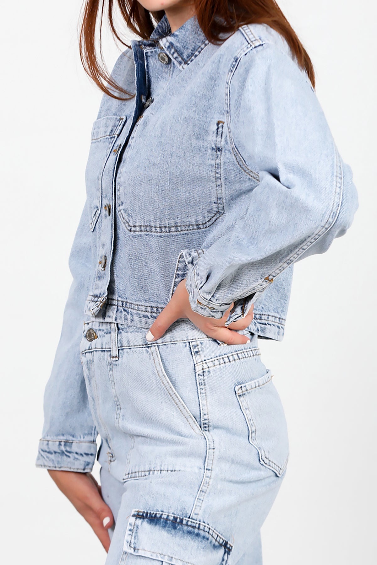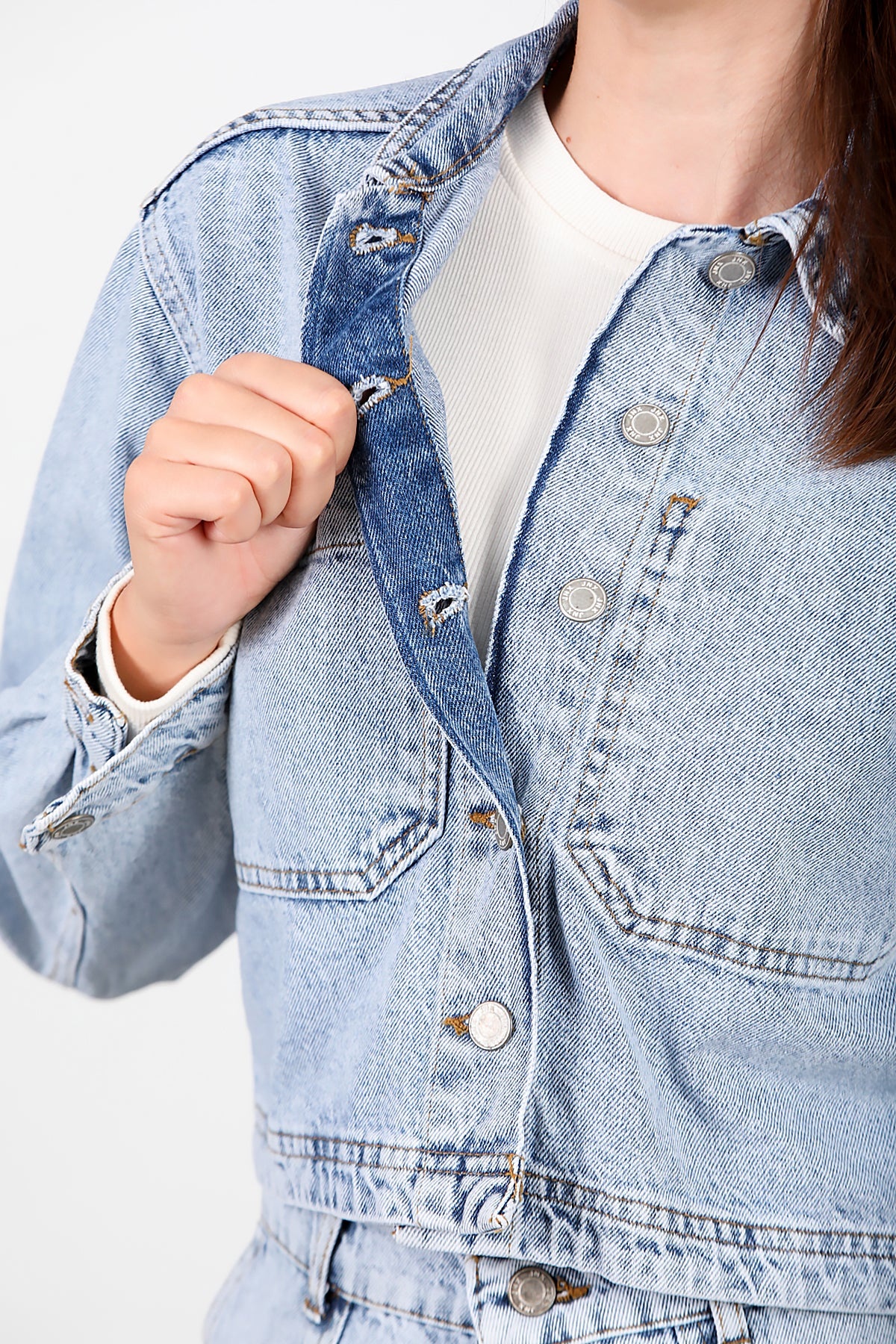 Kadın Ters Cep Kısa Kot Ceket Kot