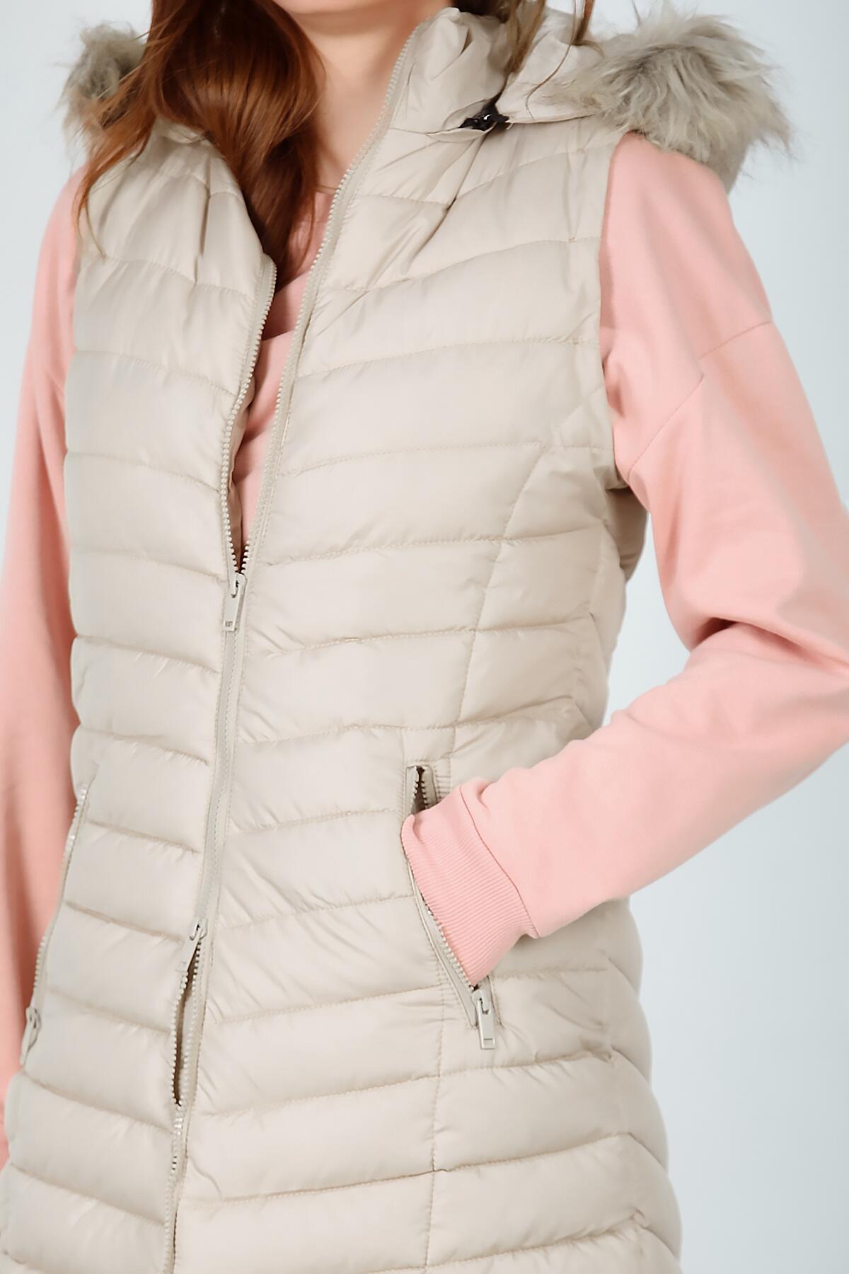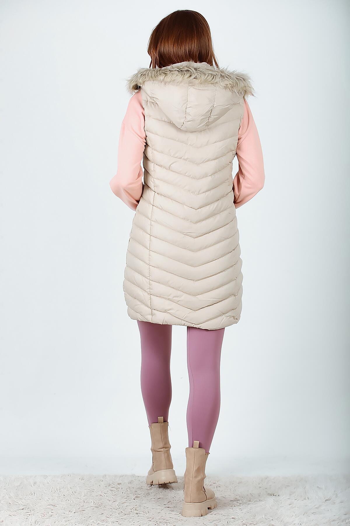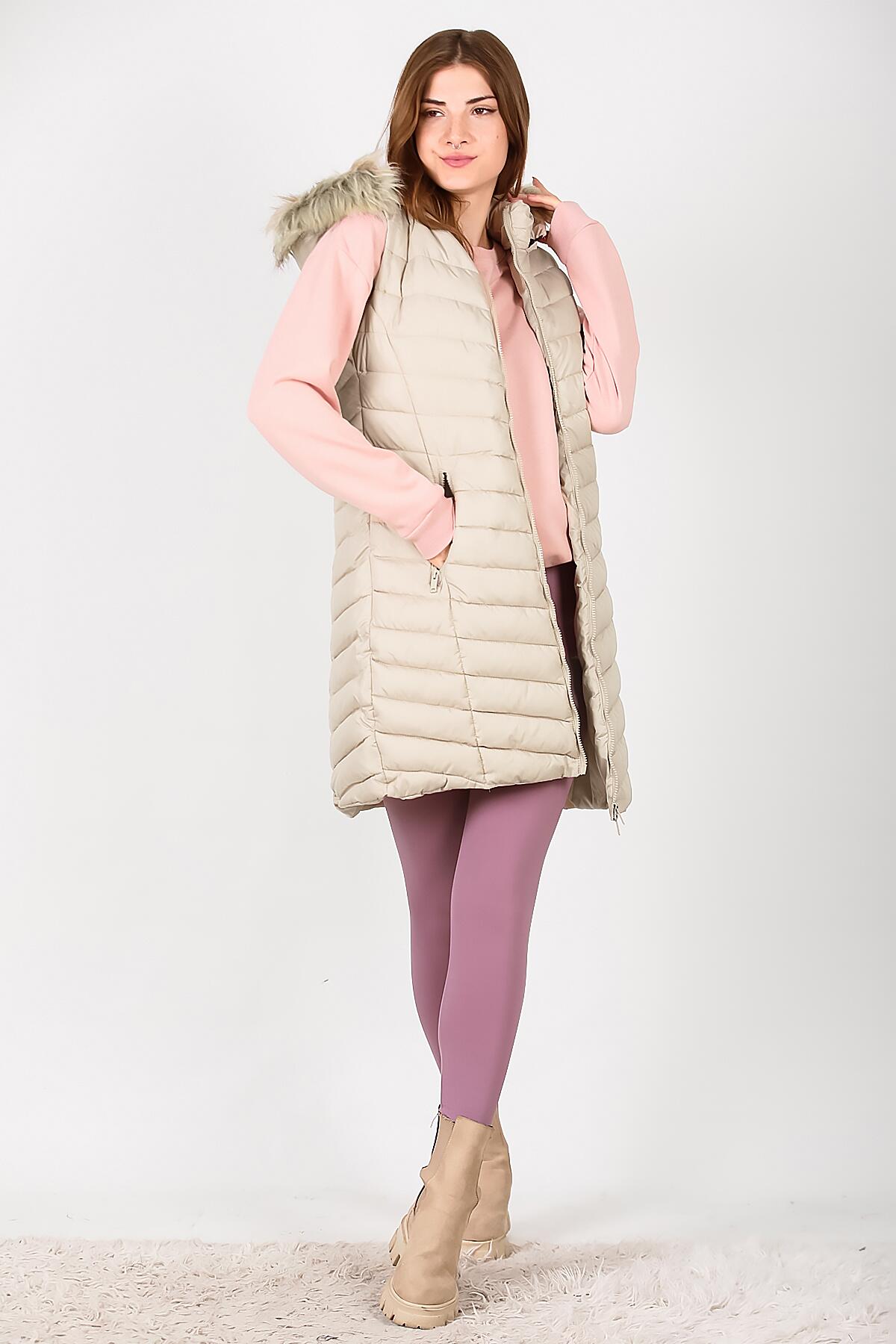 Kadın Uzun Kapşonlu Şişme Yelek Taş