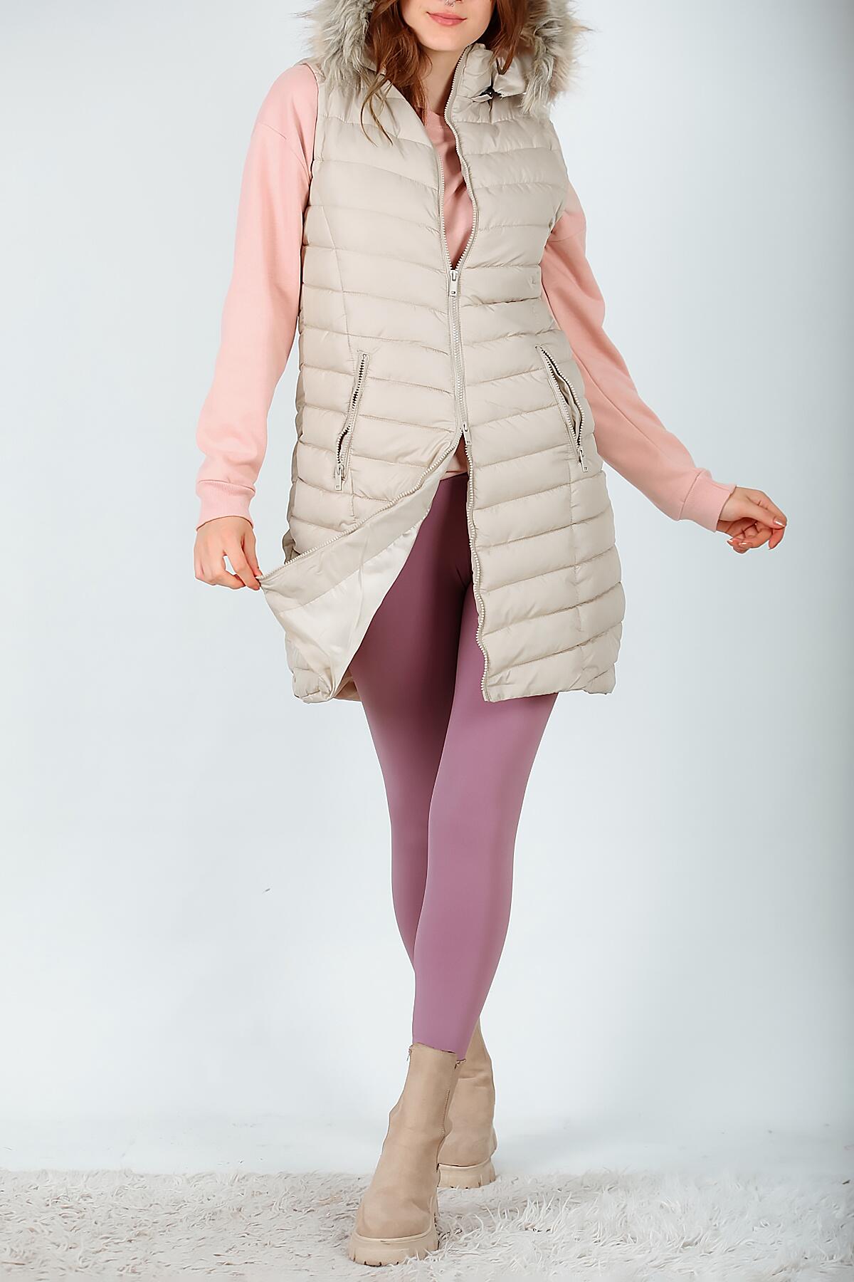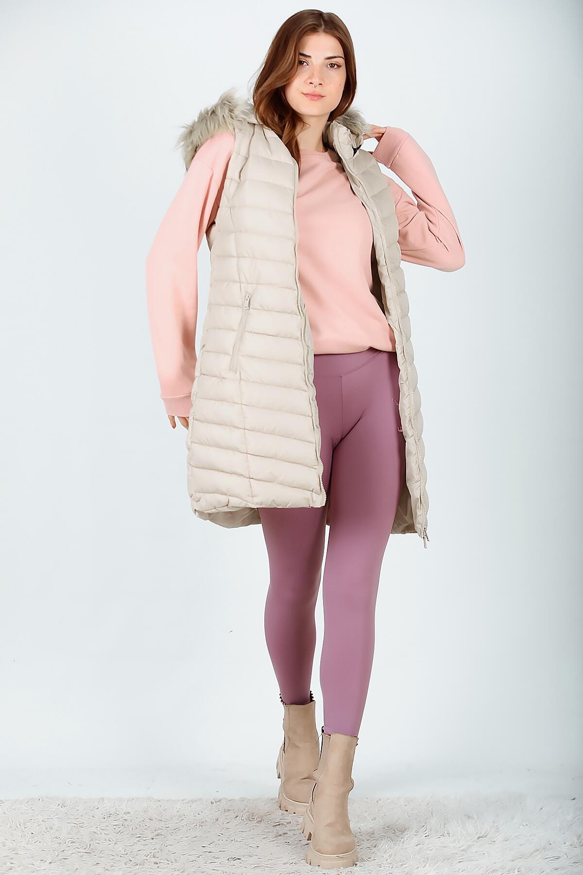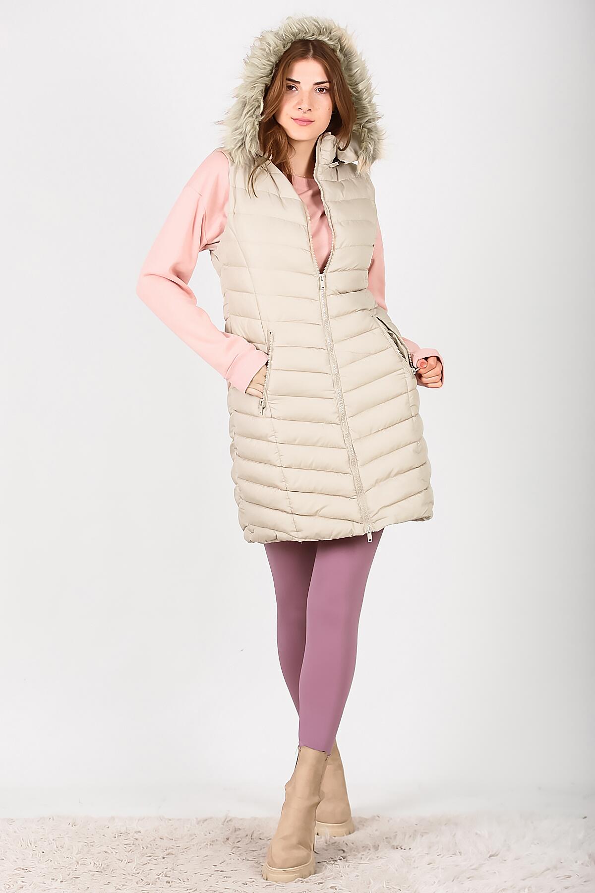 Kadın Uzun Kapşonlu Şişme Yelek Taş