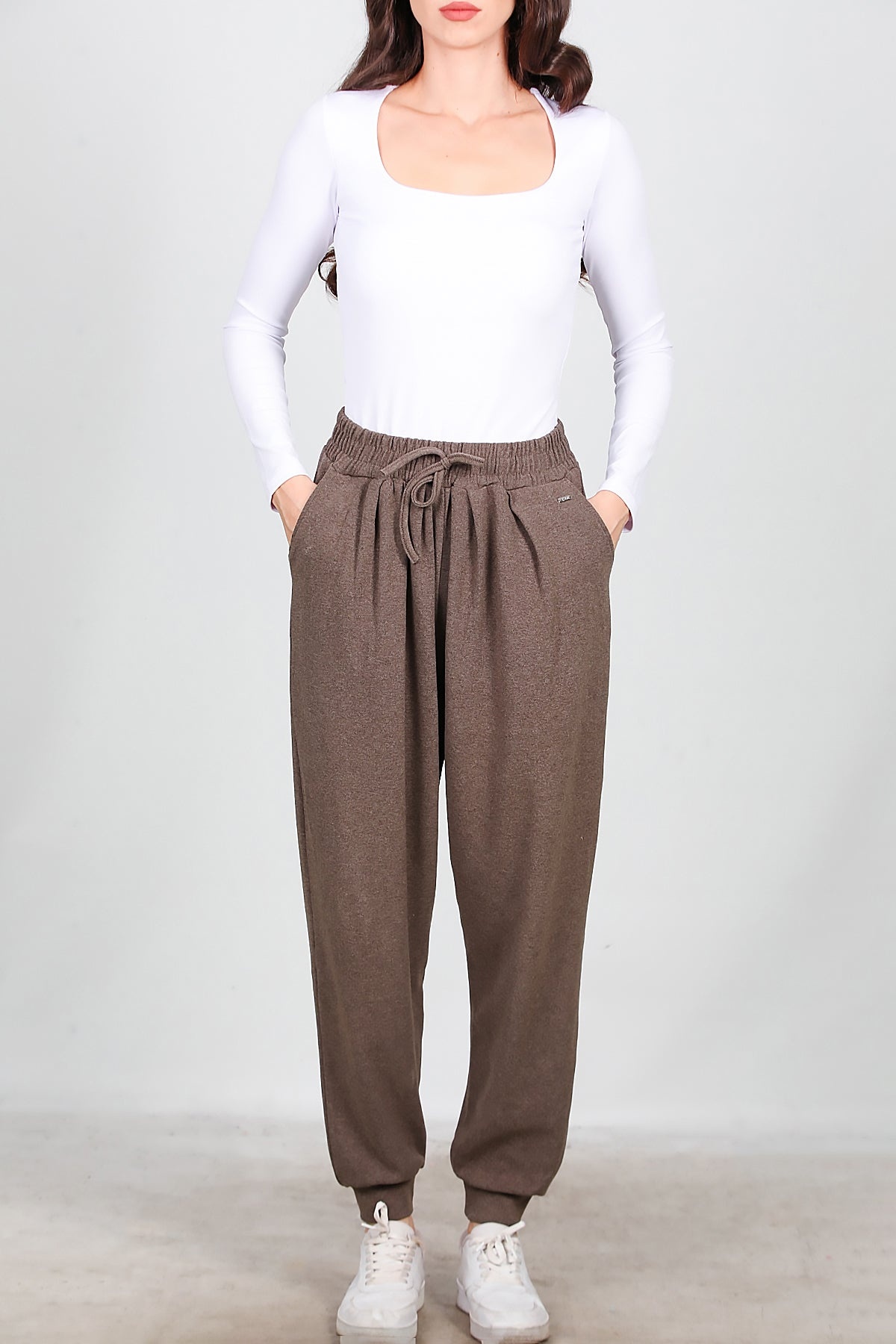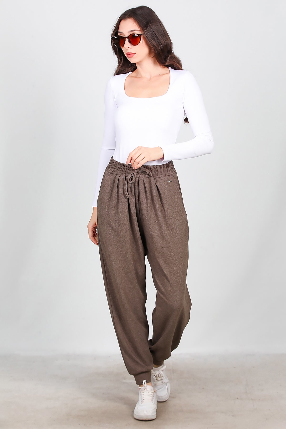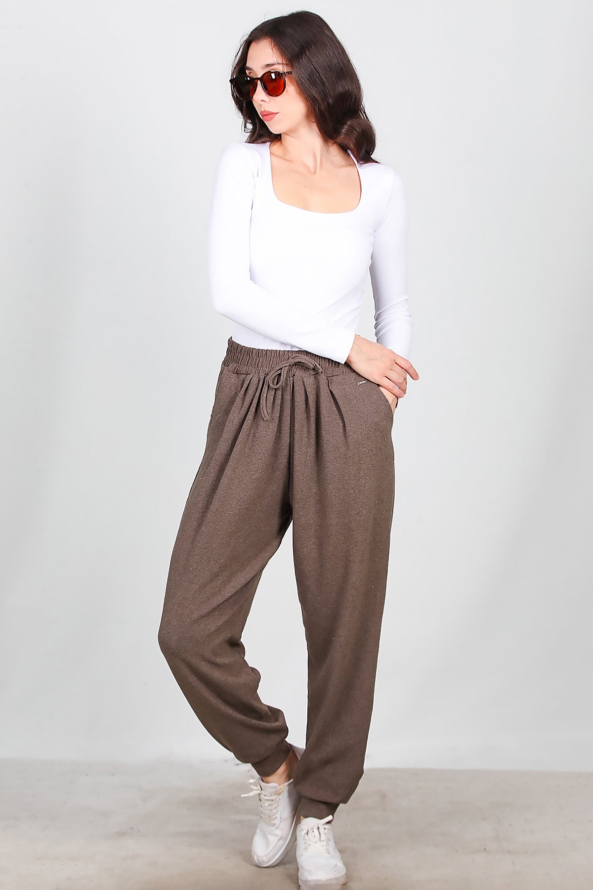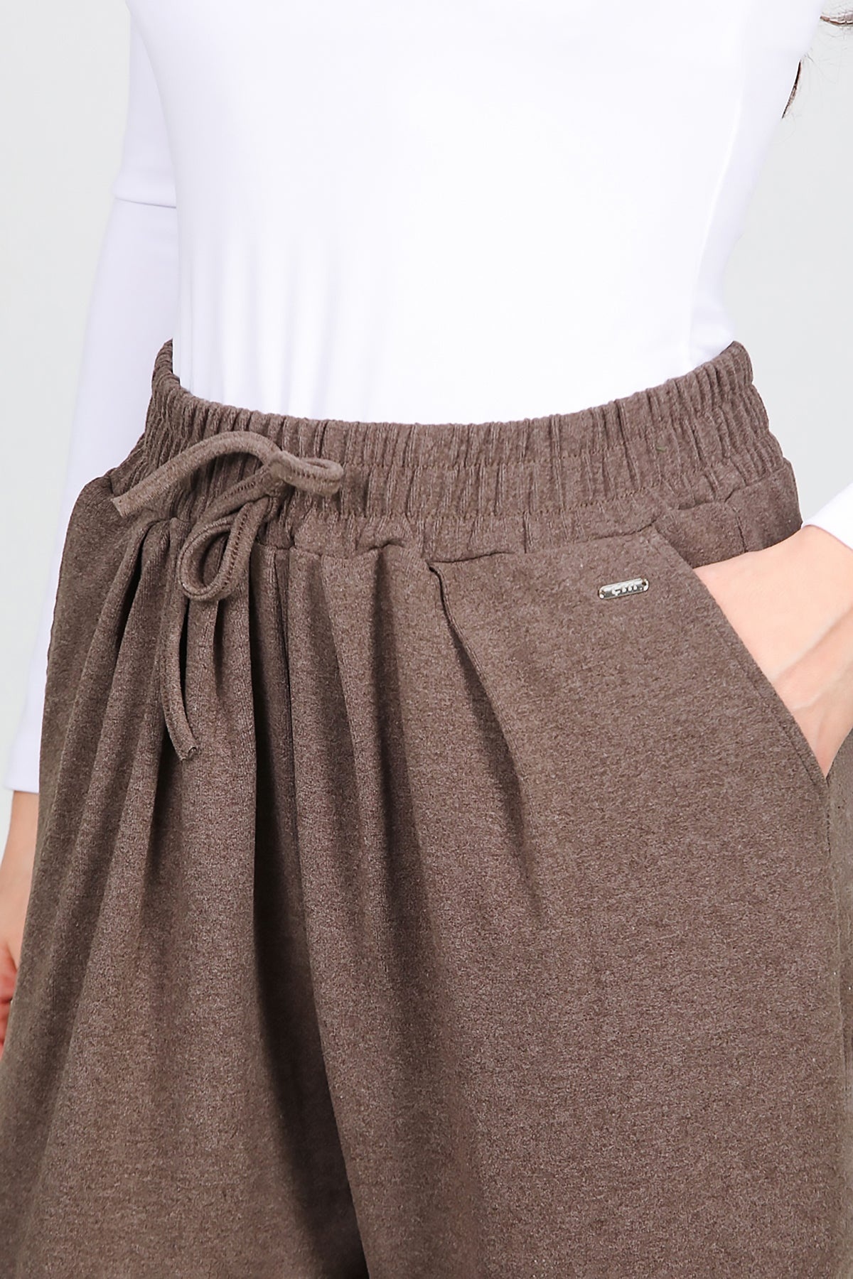 Kadın Bağcıklı Şalvar Pantolon Kahverengi