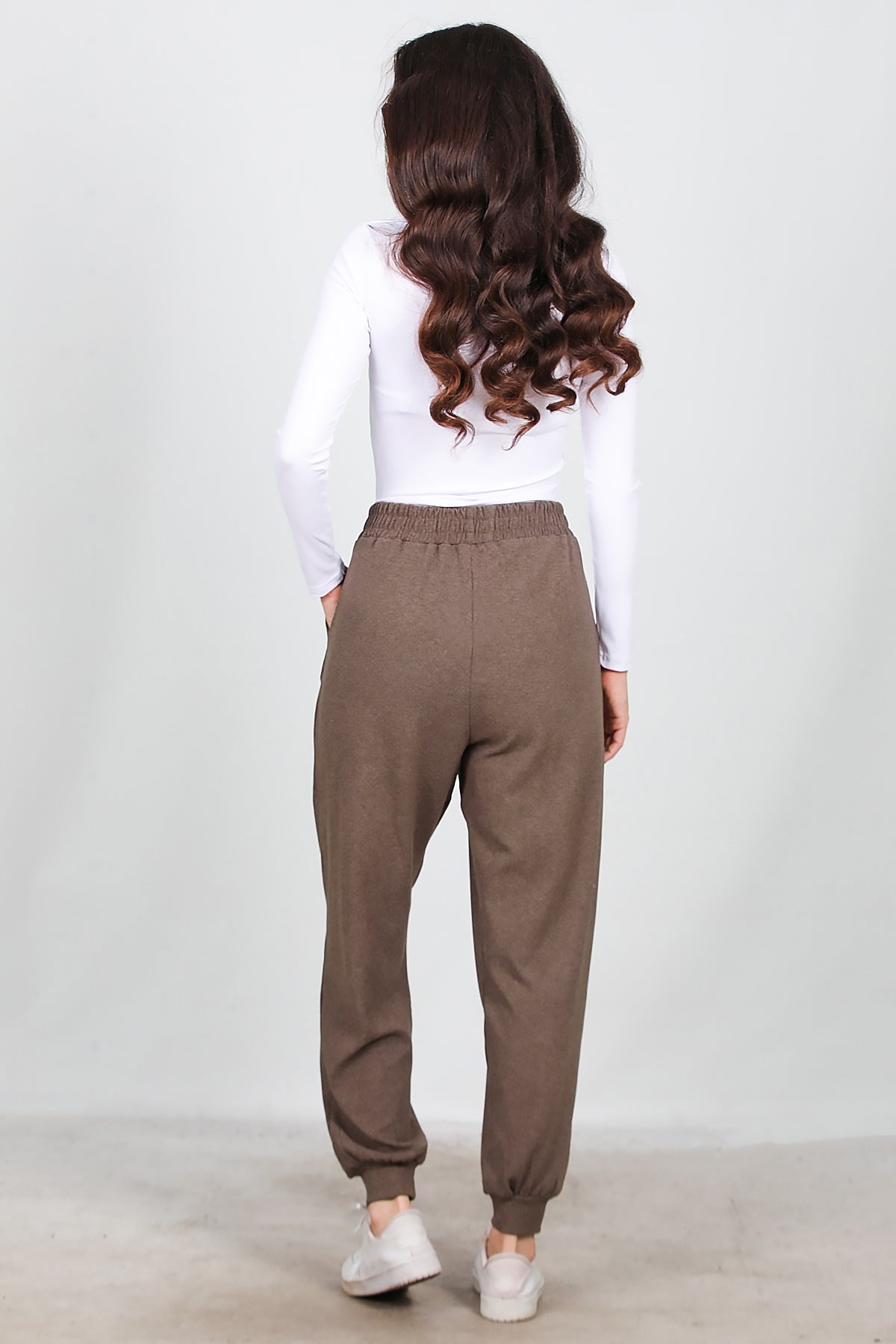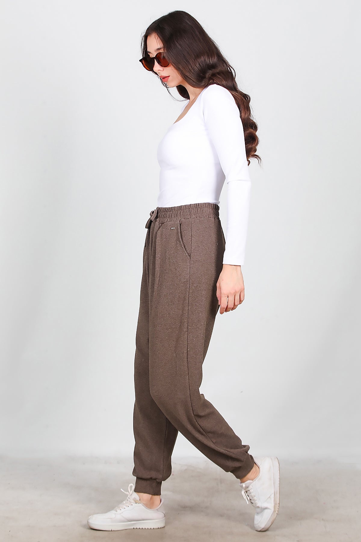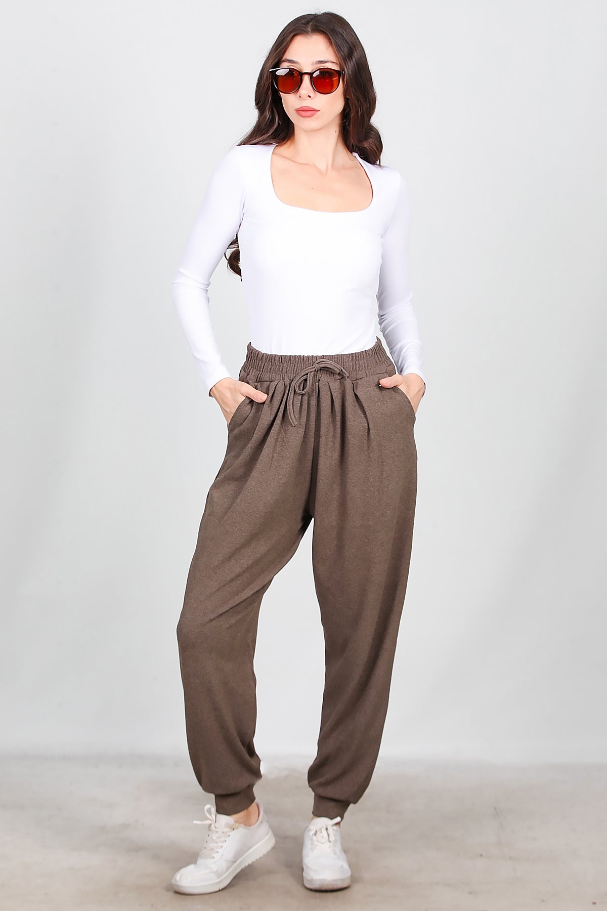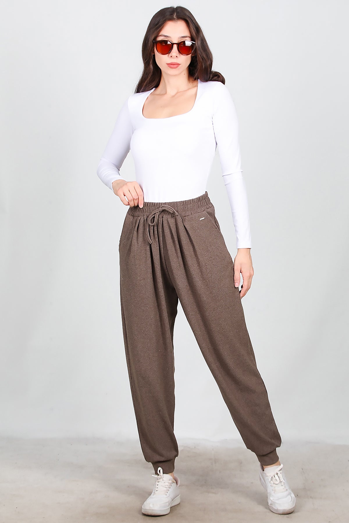 Kadın Bağcıklı Şalvar Pantolon Kahverengi