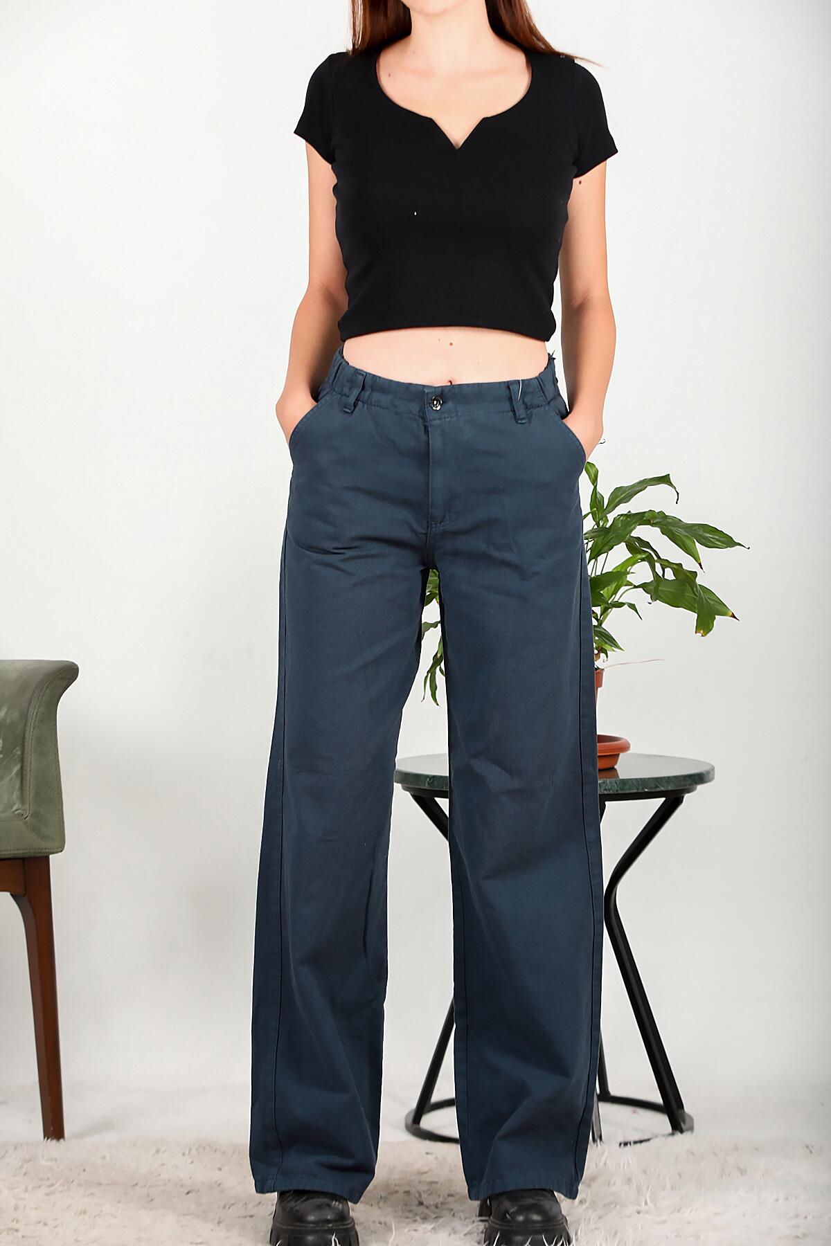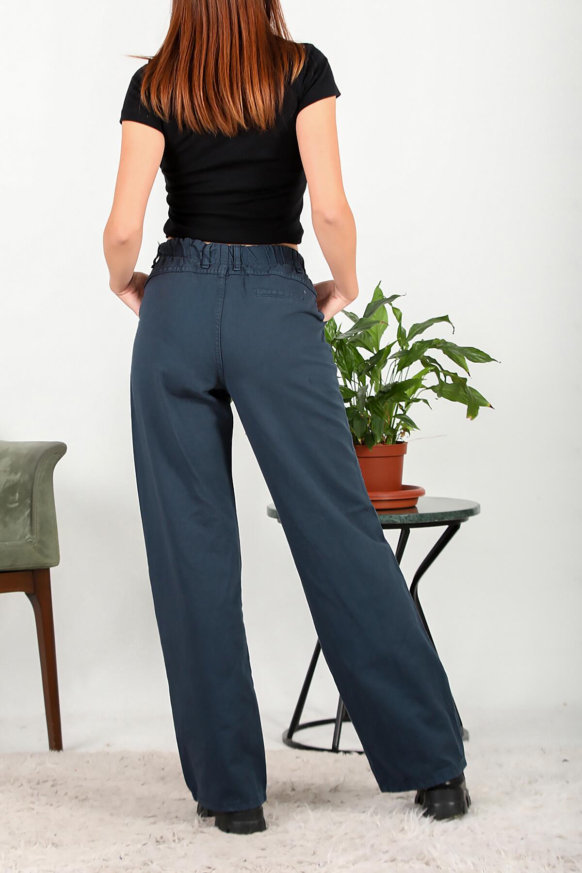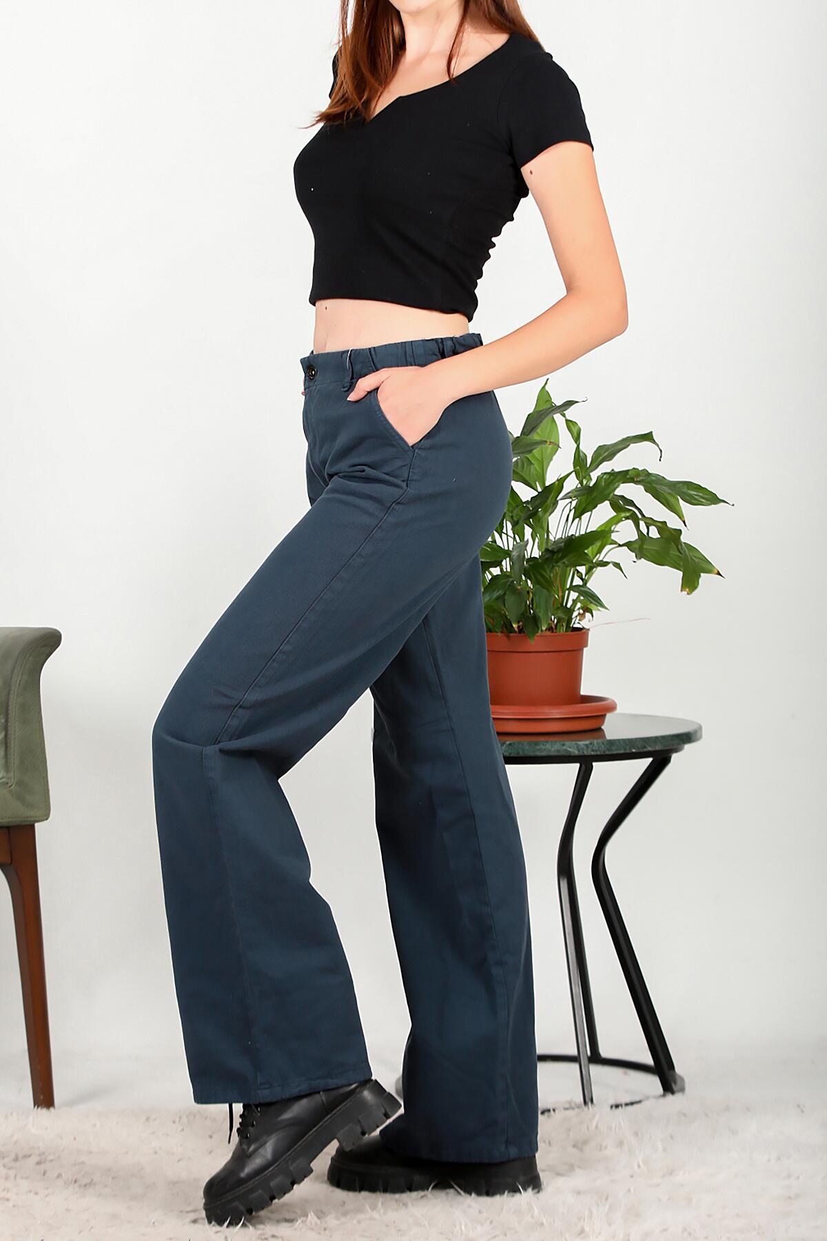 Kadın Bol Paça Lastikli Gabardin Pantolon Lacivert