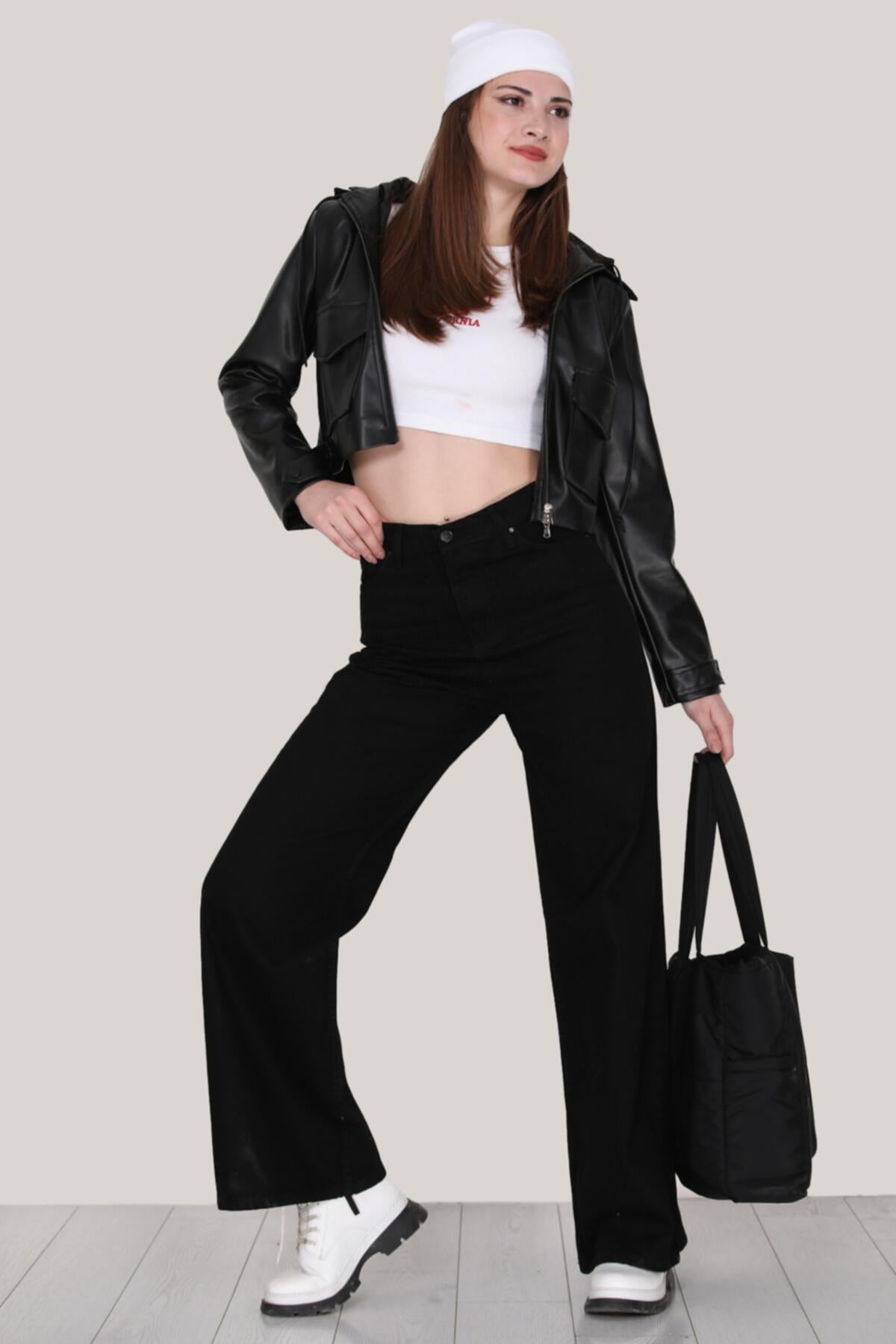 Kadın Yüksek Bel Kot Pantolon Koyu Lacivert