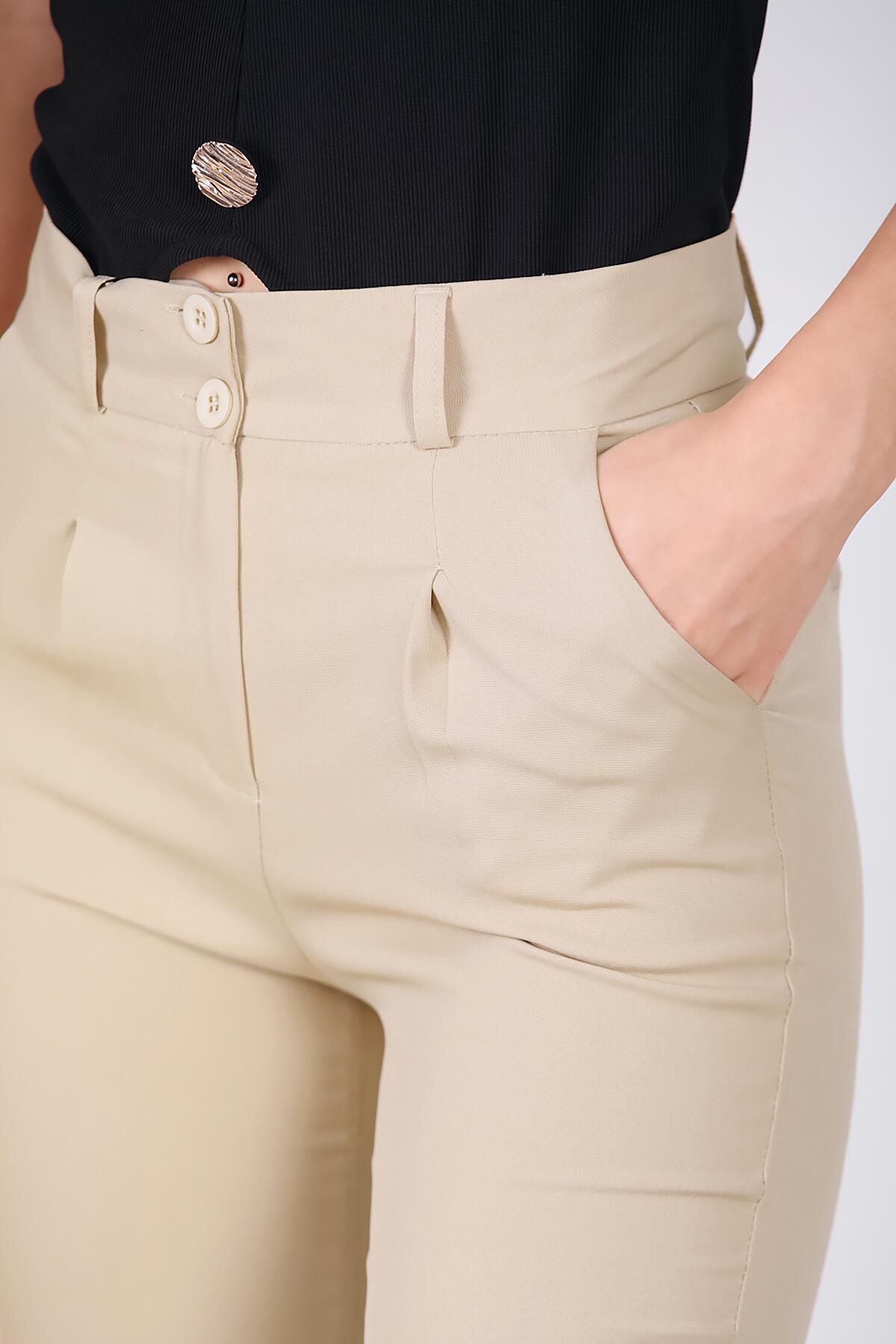 Kadın Çift Düğmeli Pantolon Taş