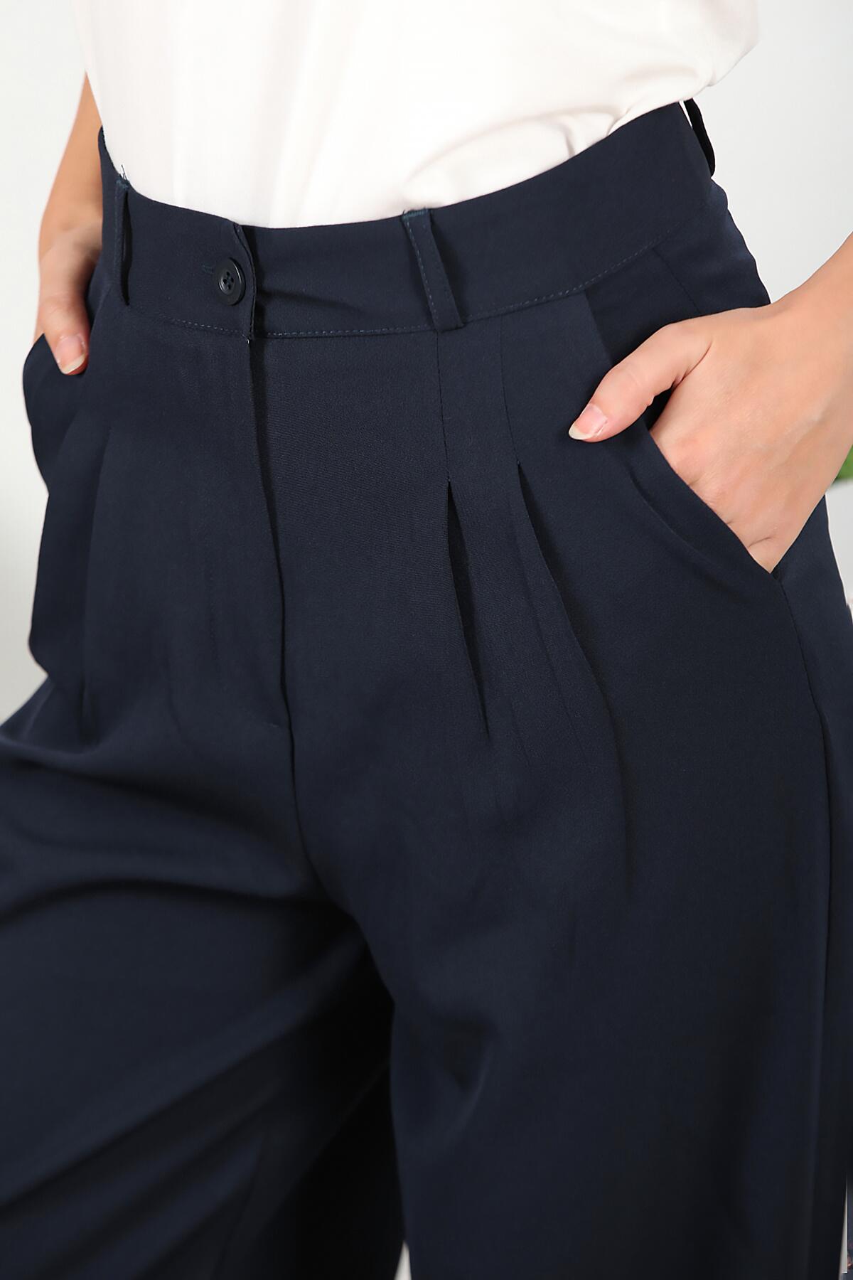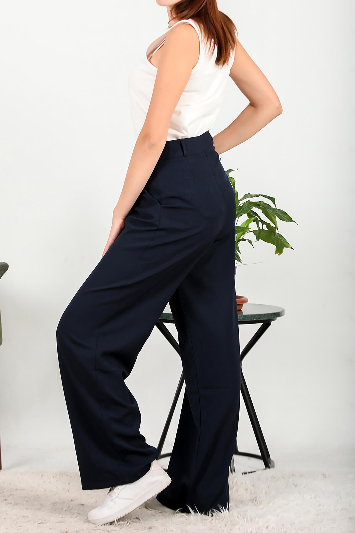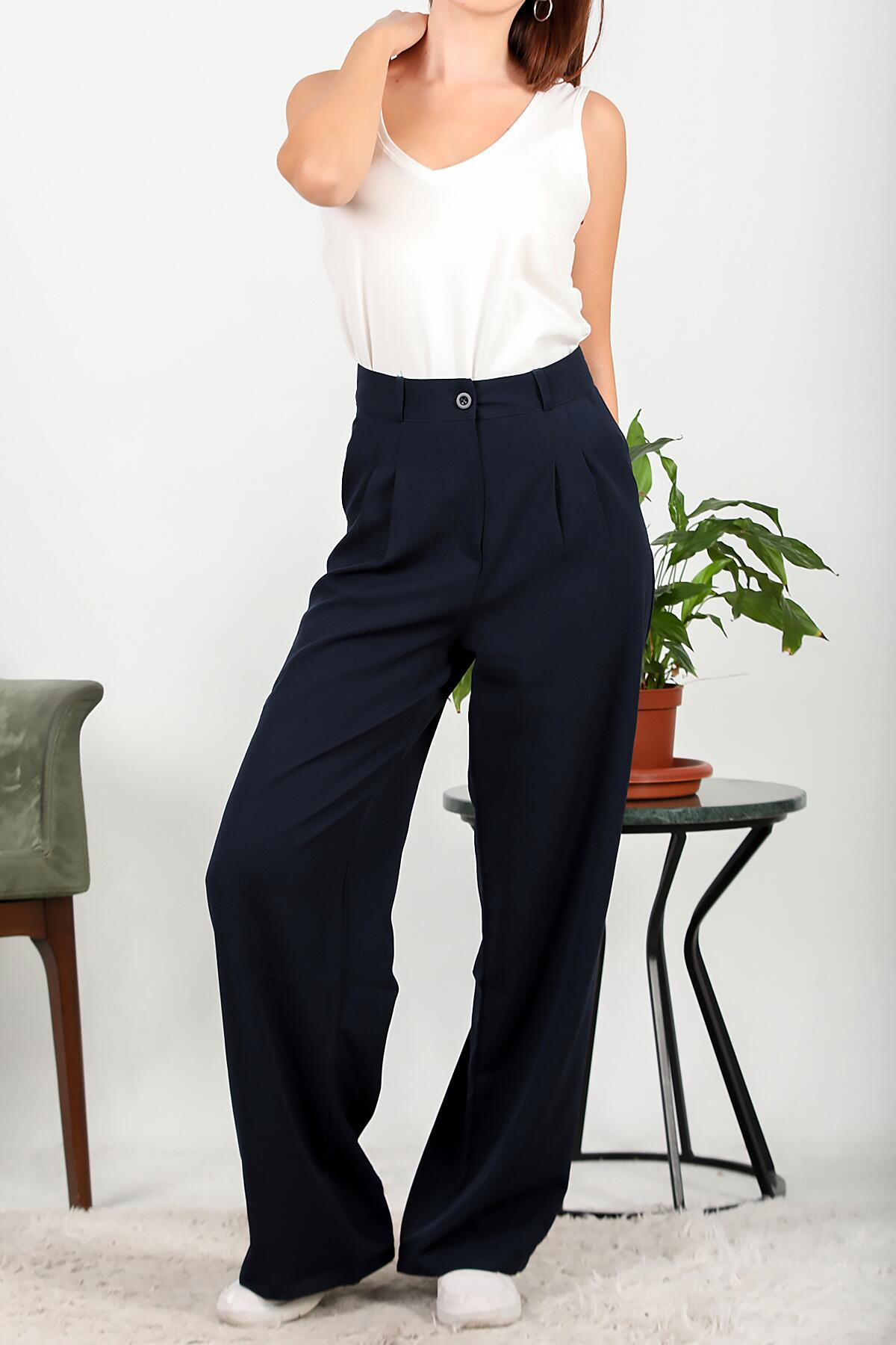 Kadın Çift Pileli Palazzo Pantolon Lacivert