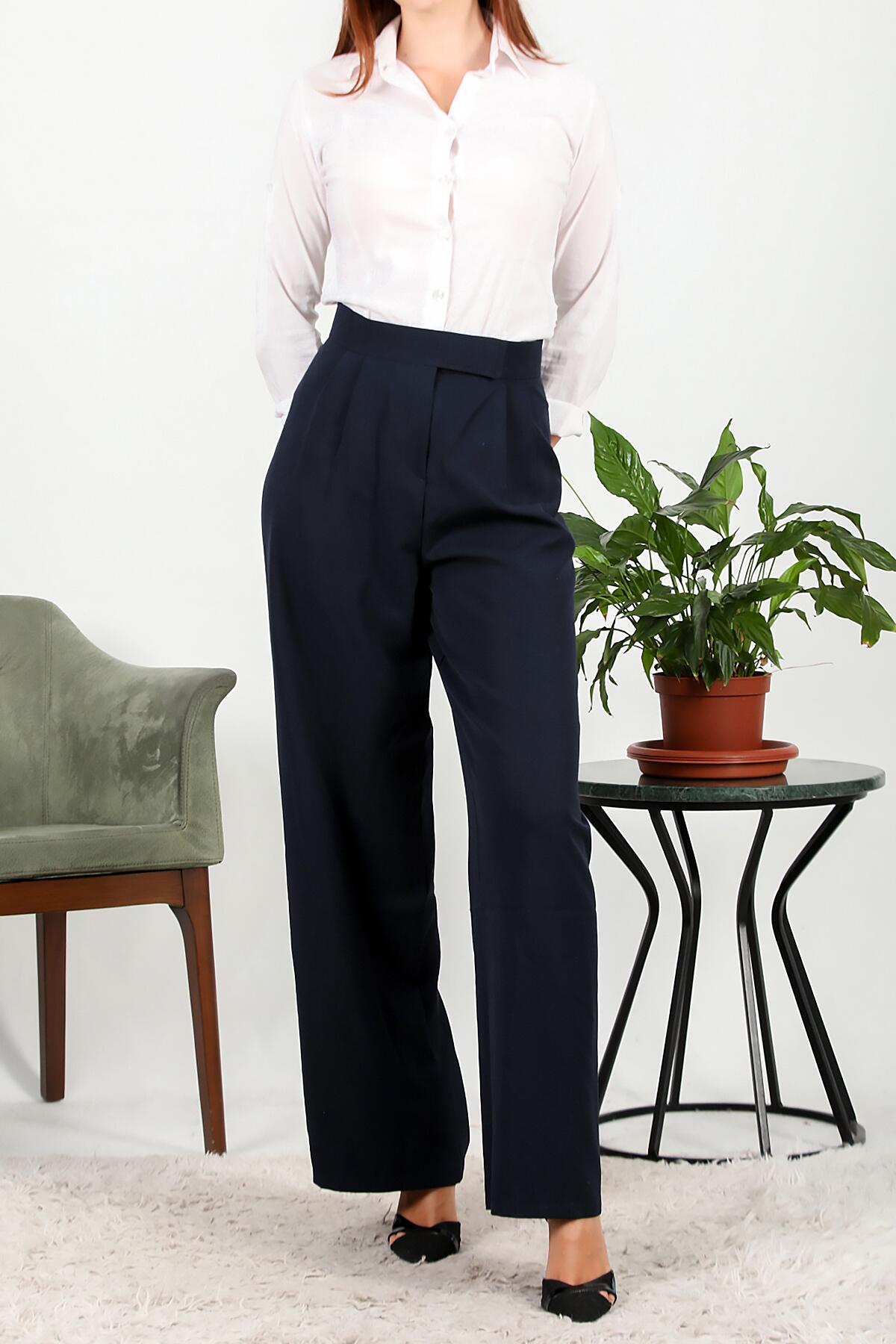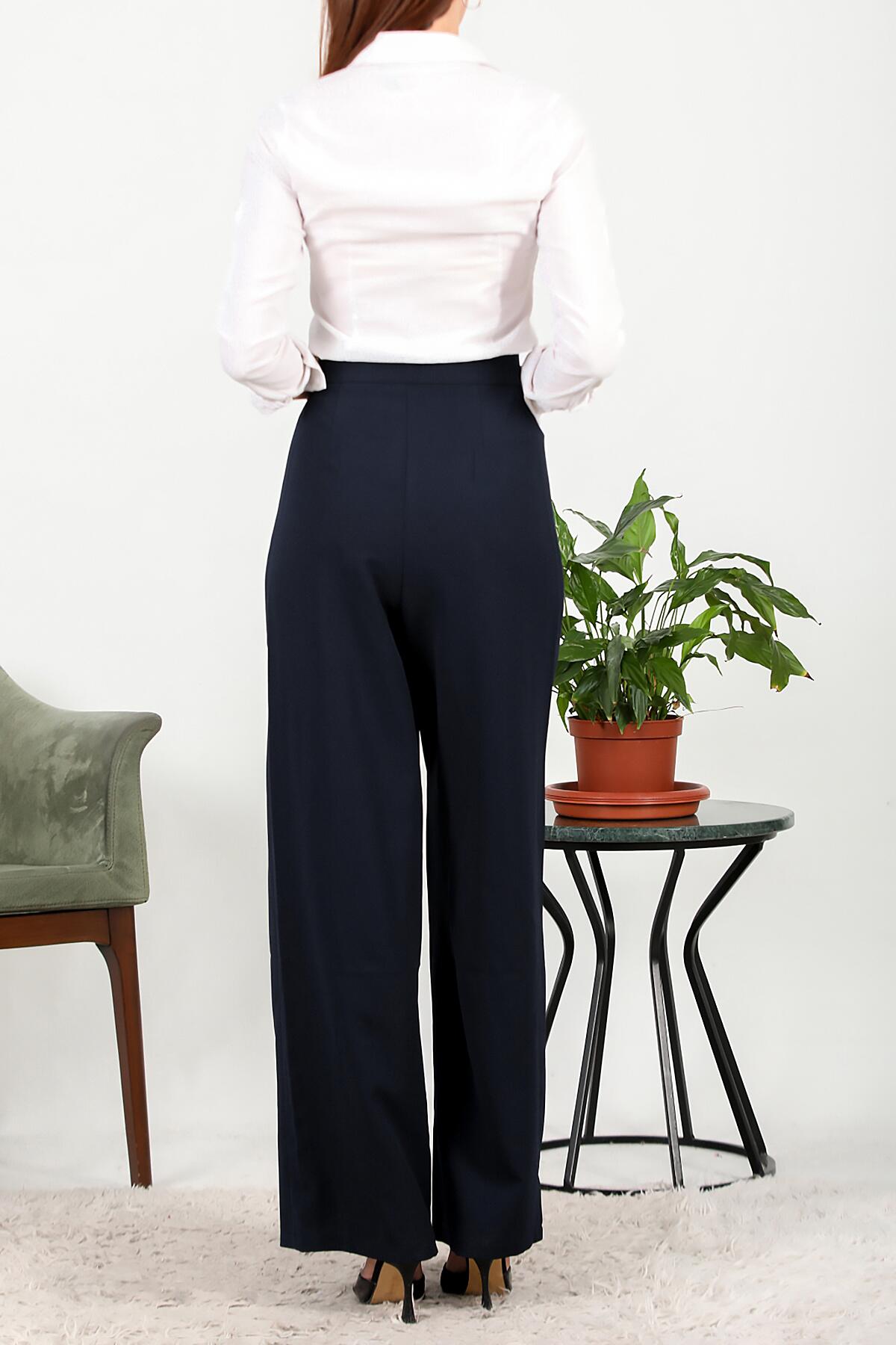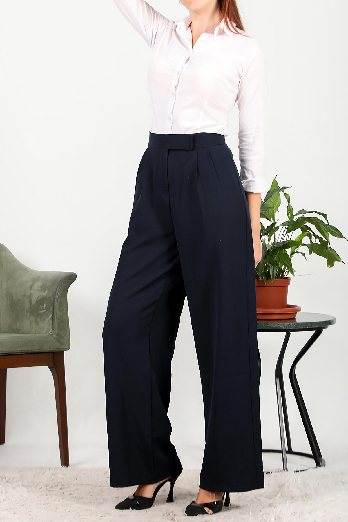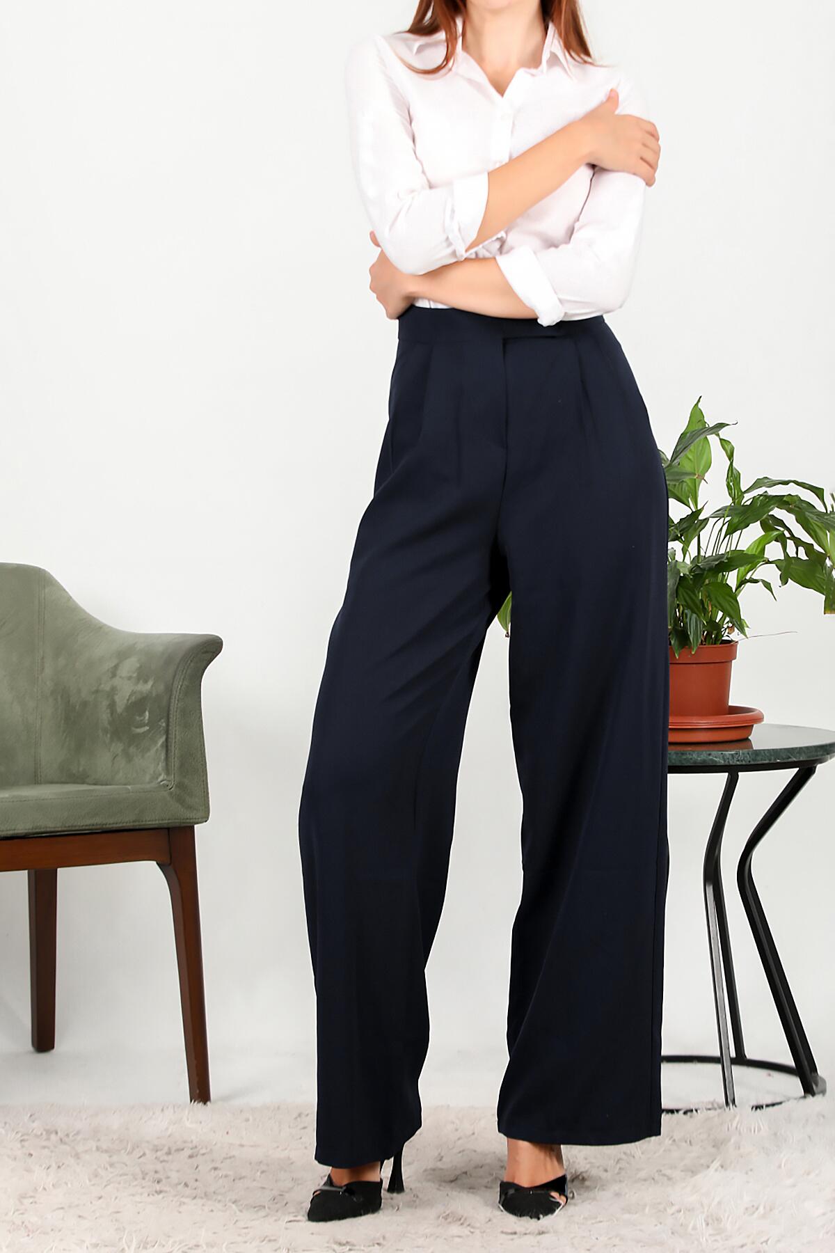 Kadın Cırtlı Bol Paça Pantolon Lacivert