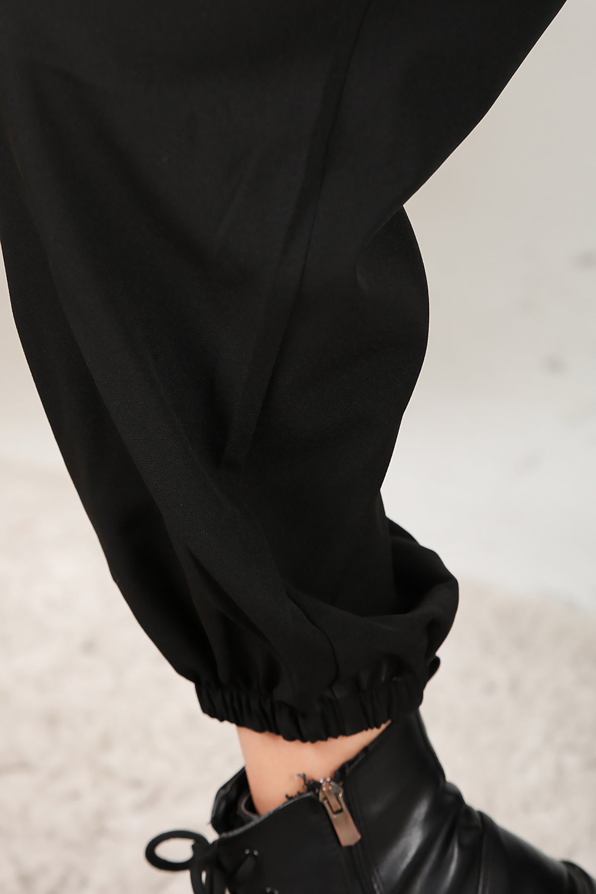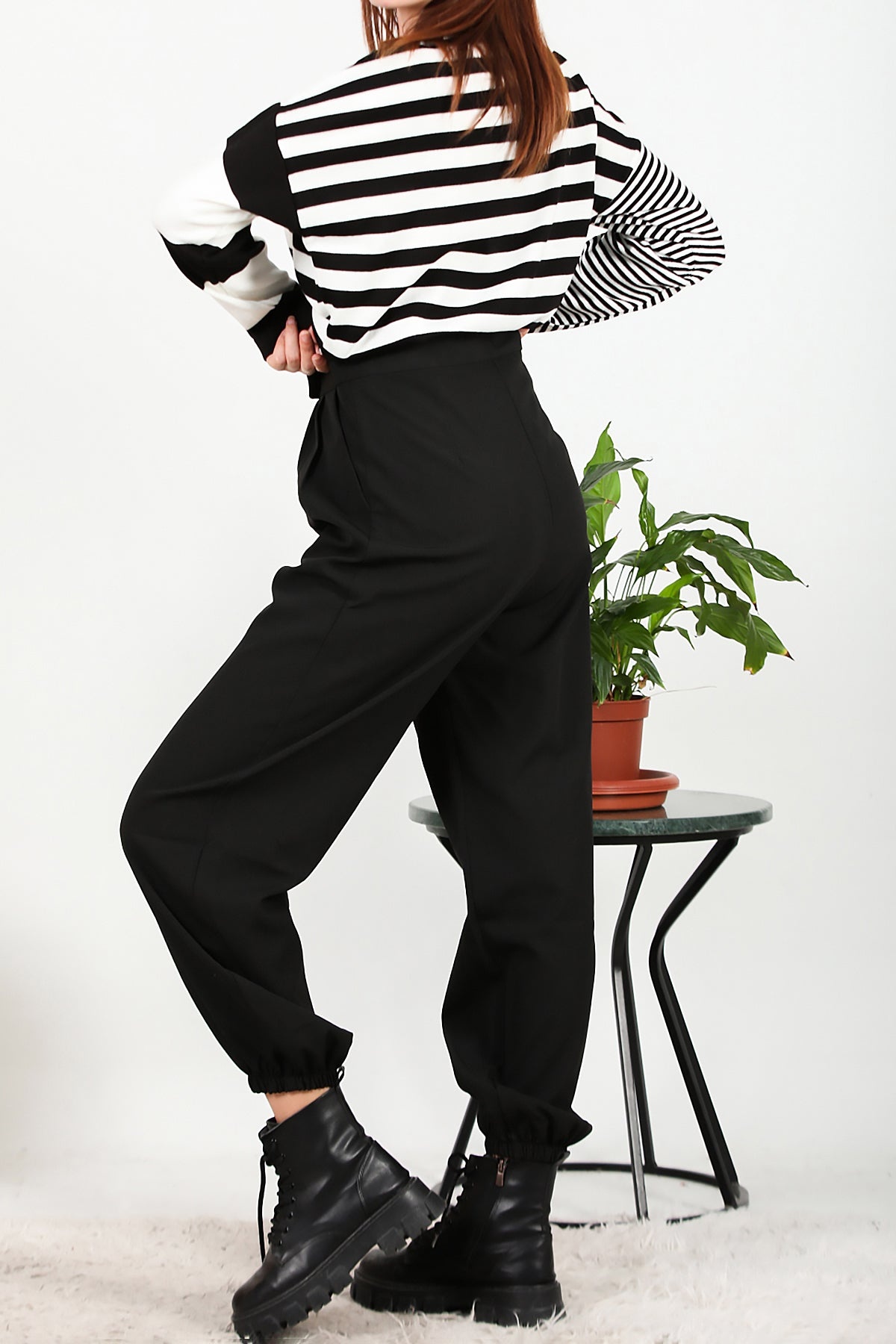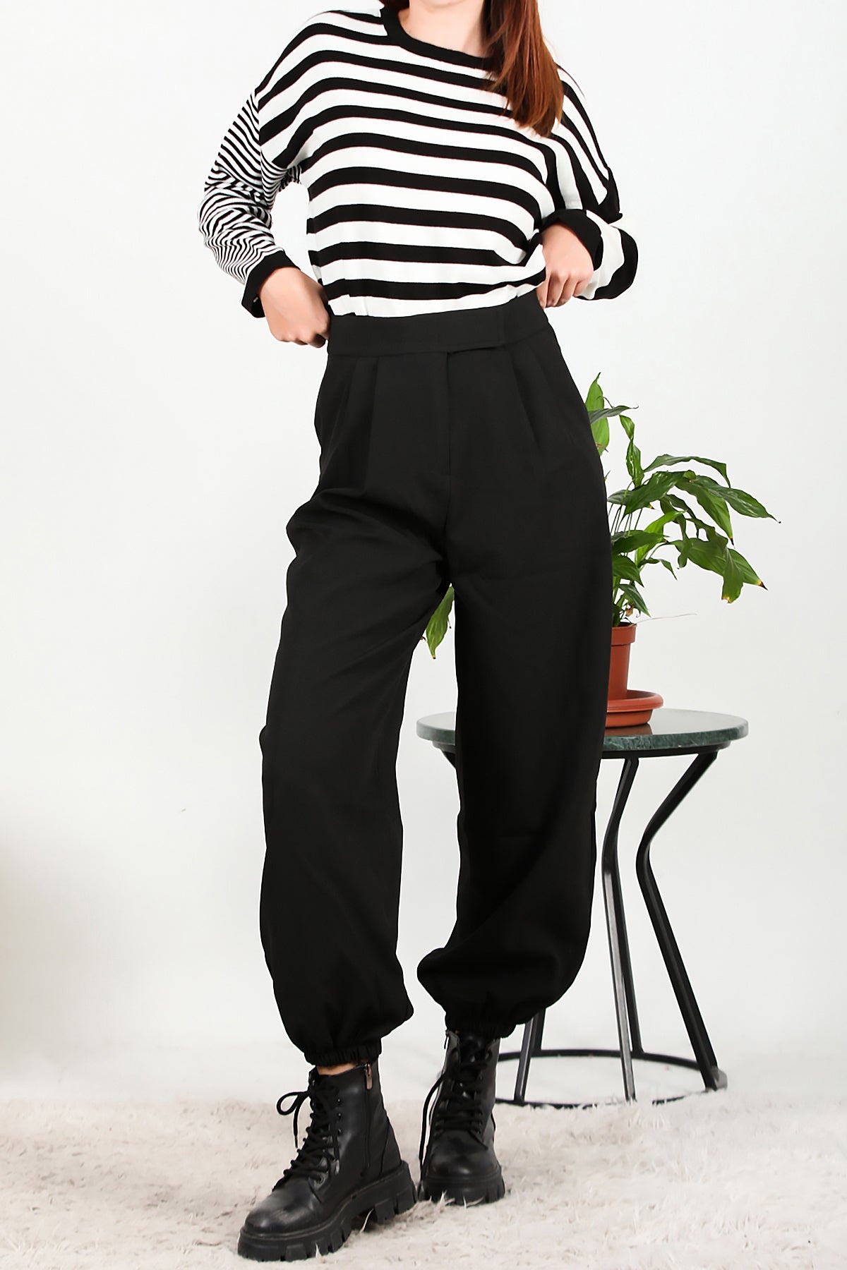 Kadın Cırtlı Paça Lastikli Pantolon Siyah