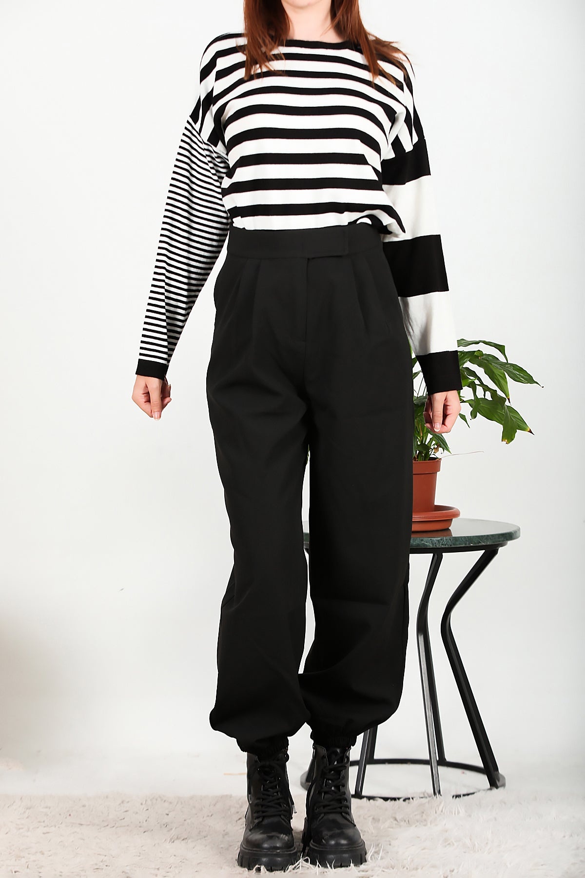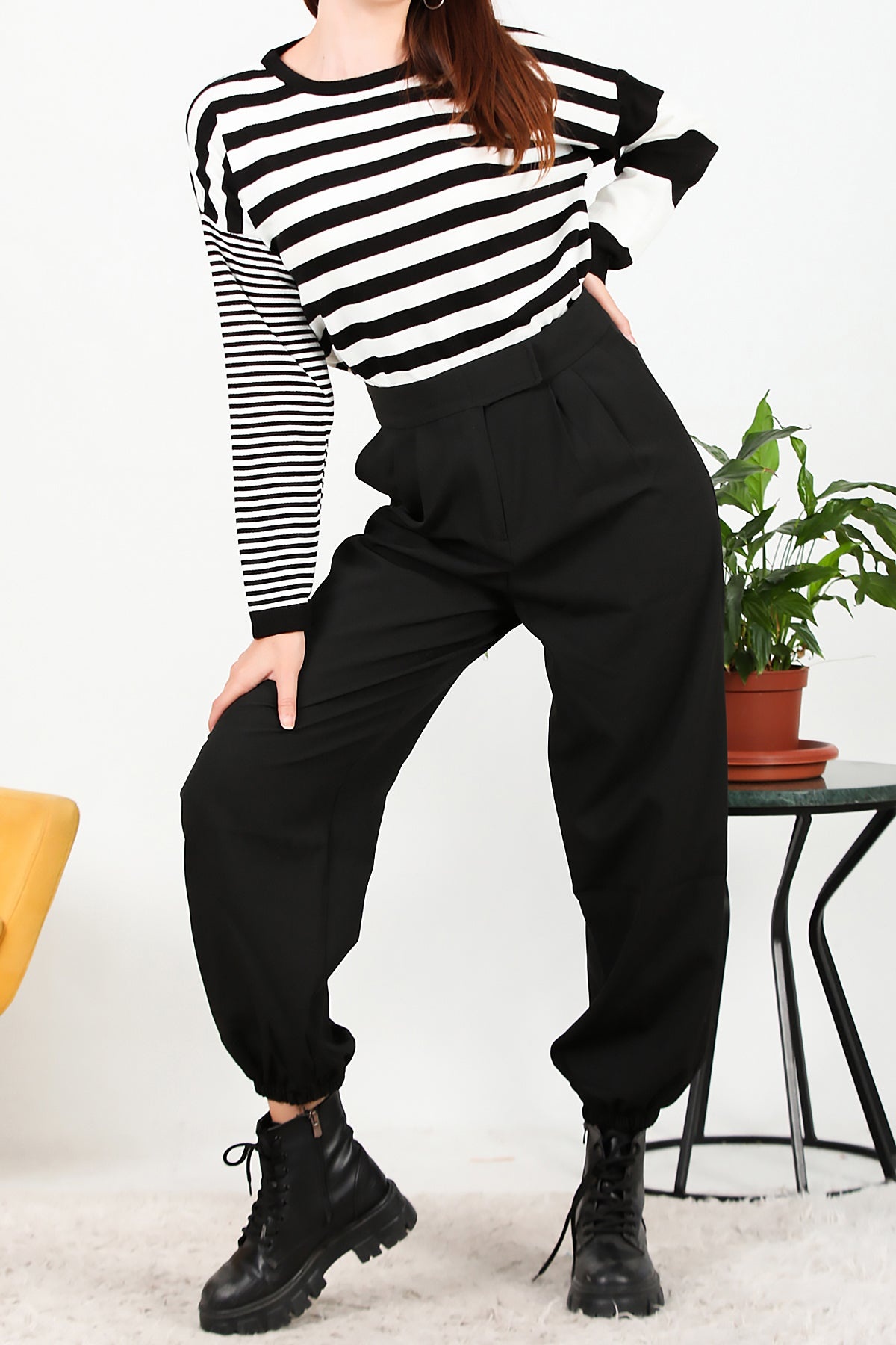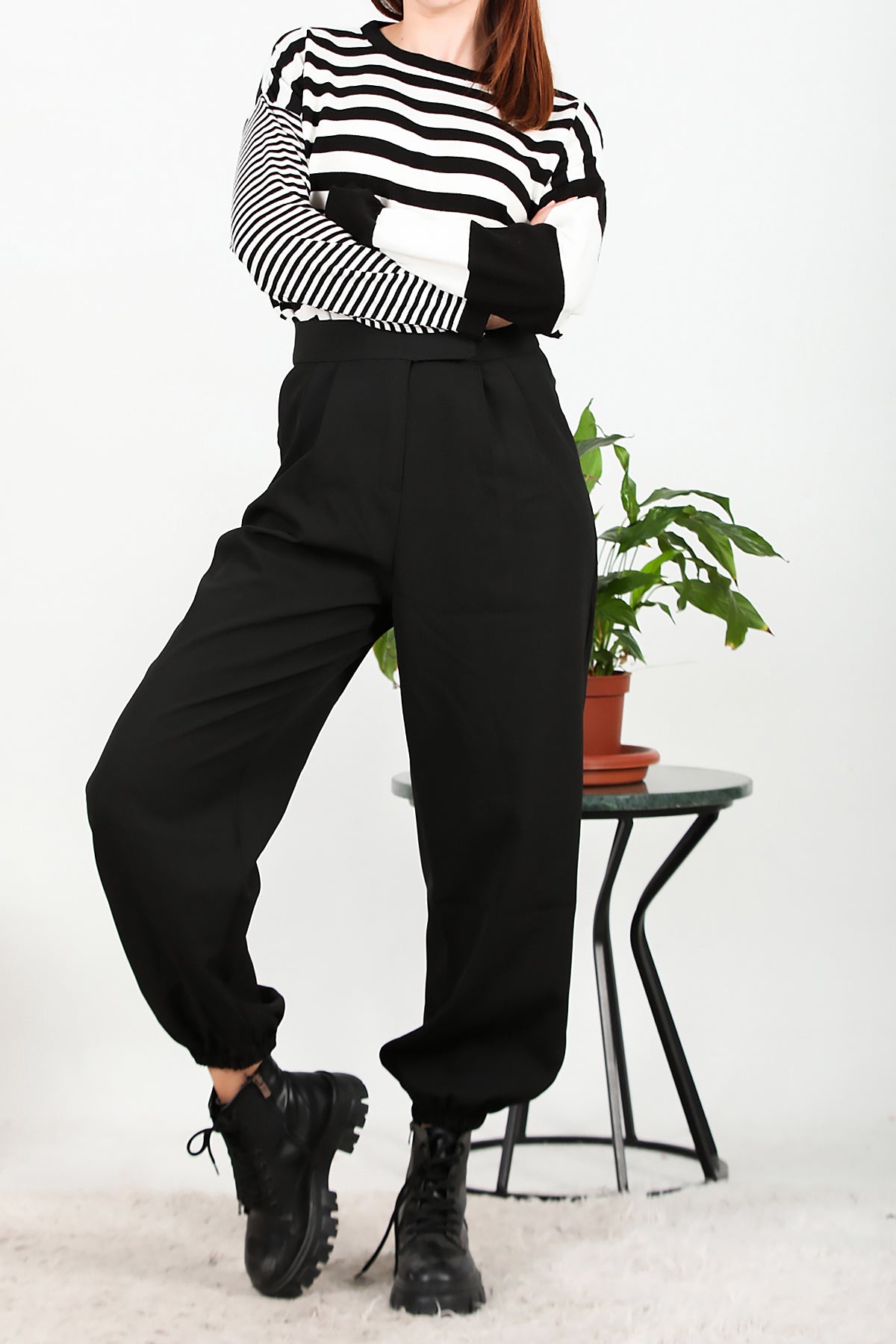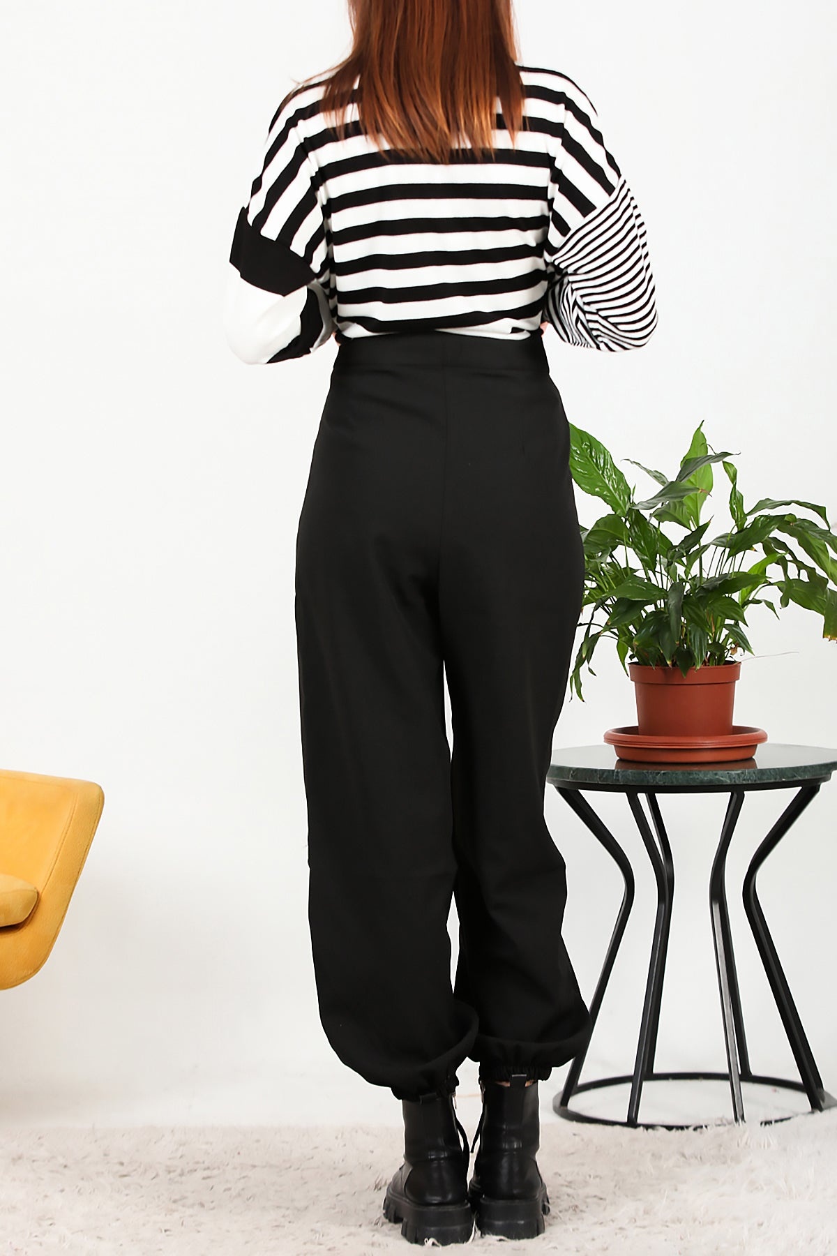 Kadın Cırtlı Paça Lastikli Pantolon Siyah