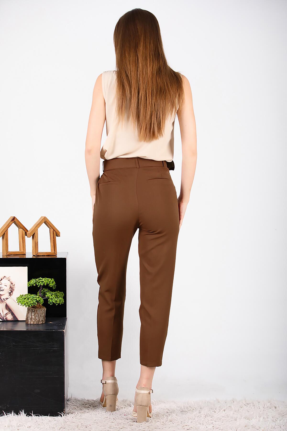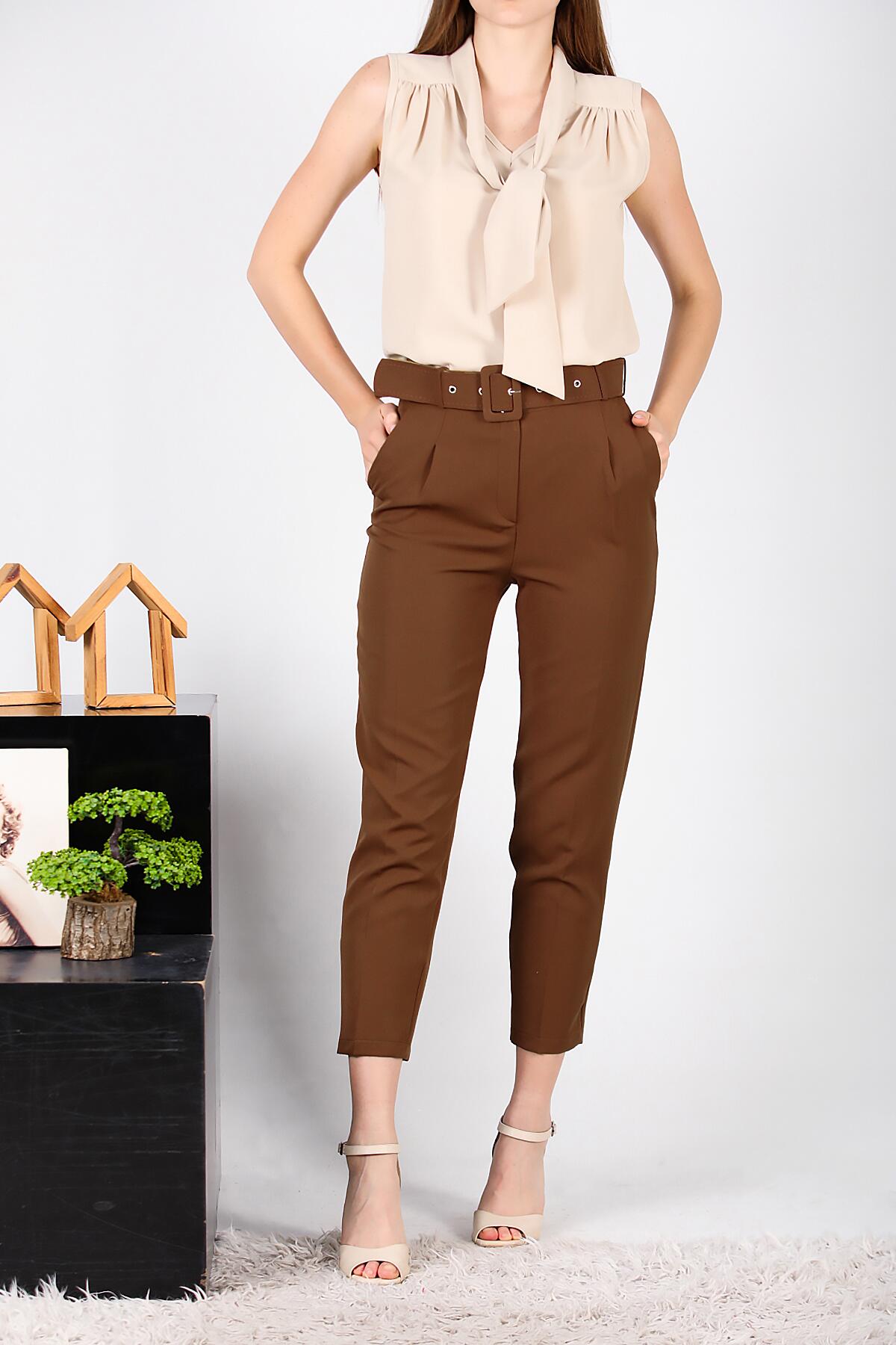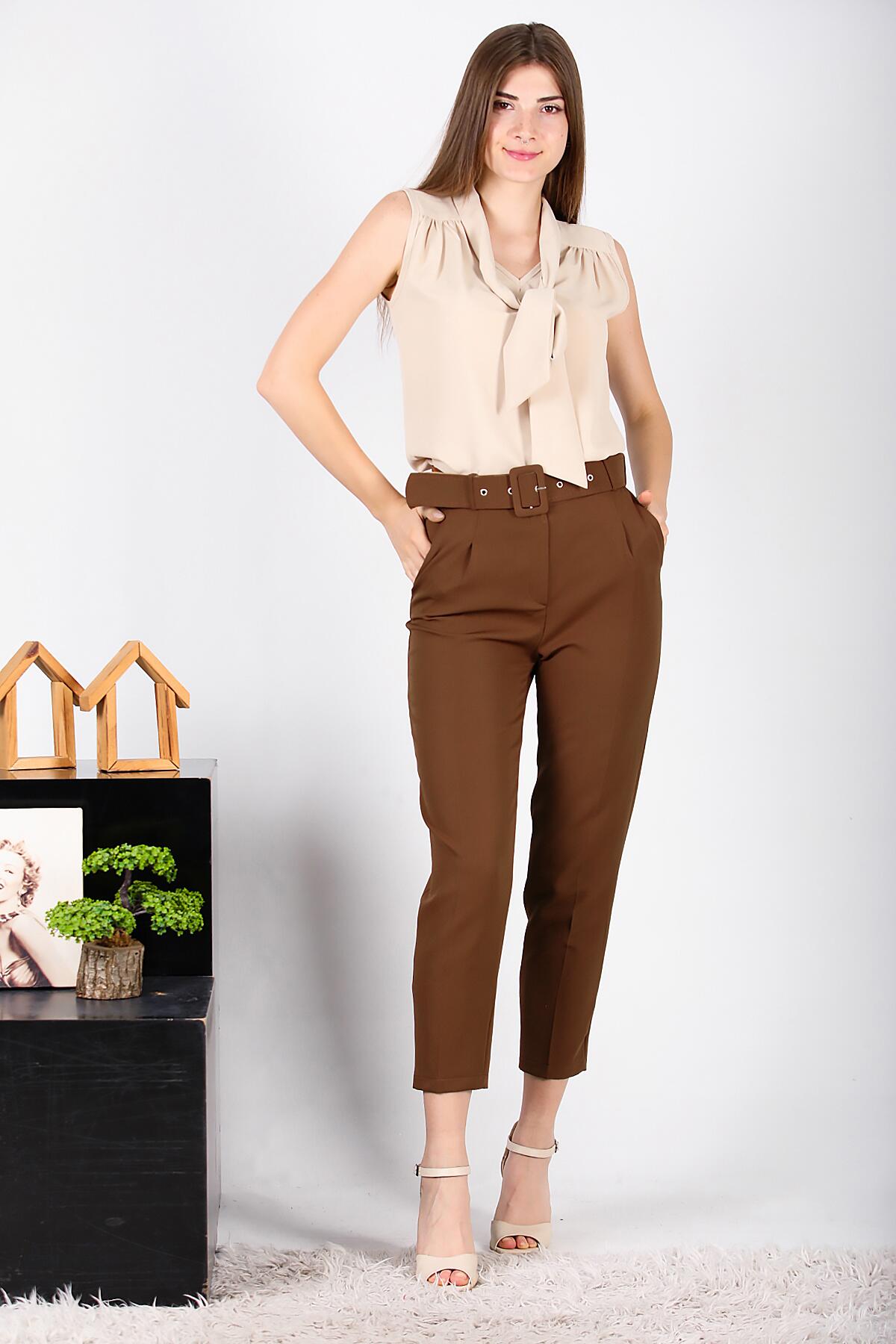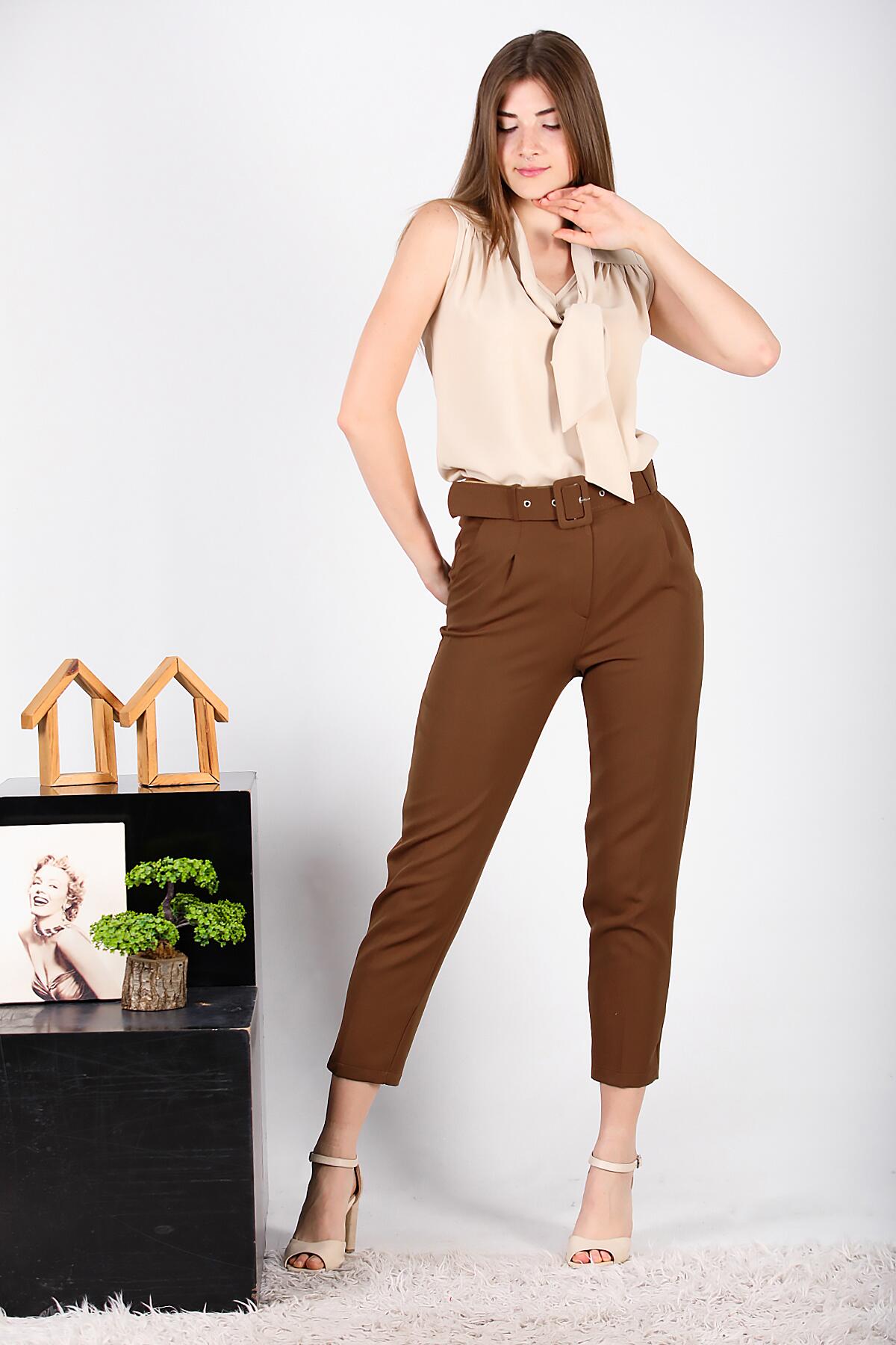 Kadın Kaplamalı Kemerli Pantolon Kahverengi