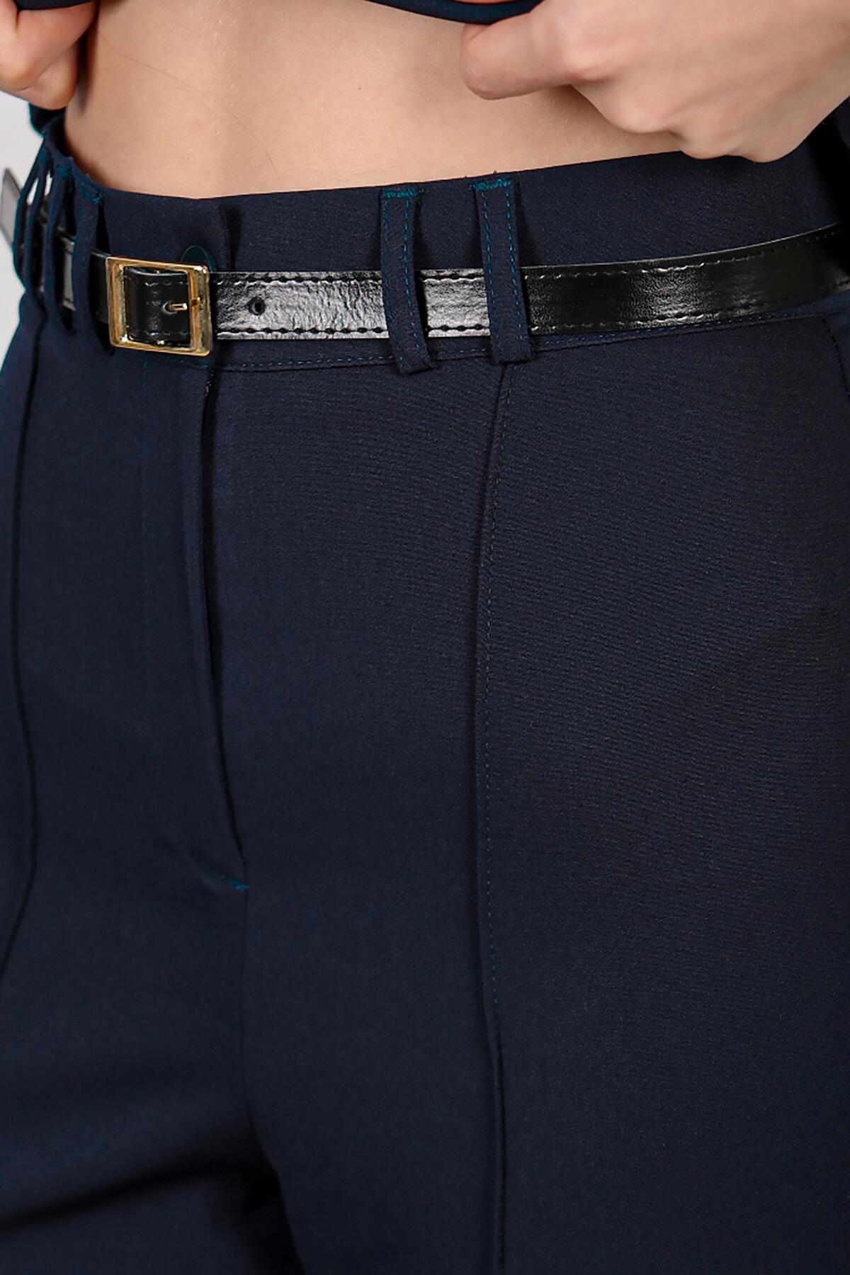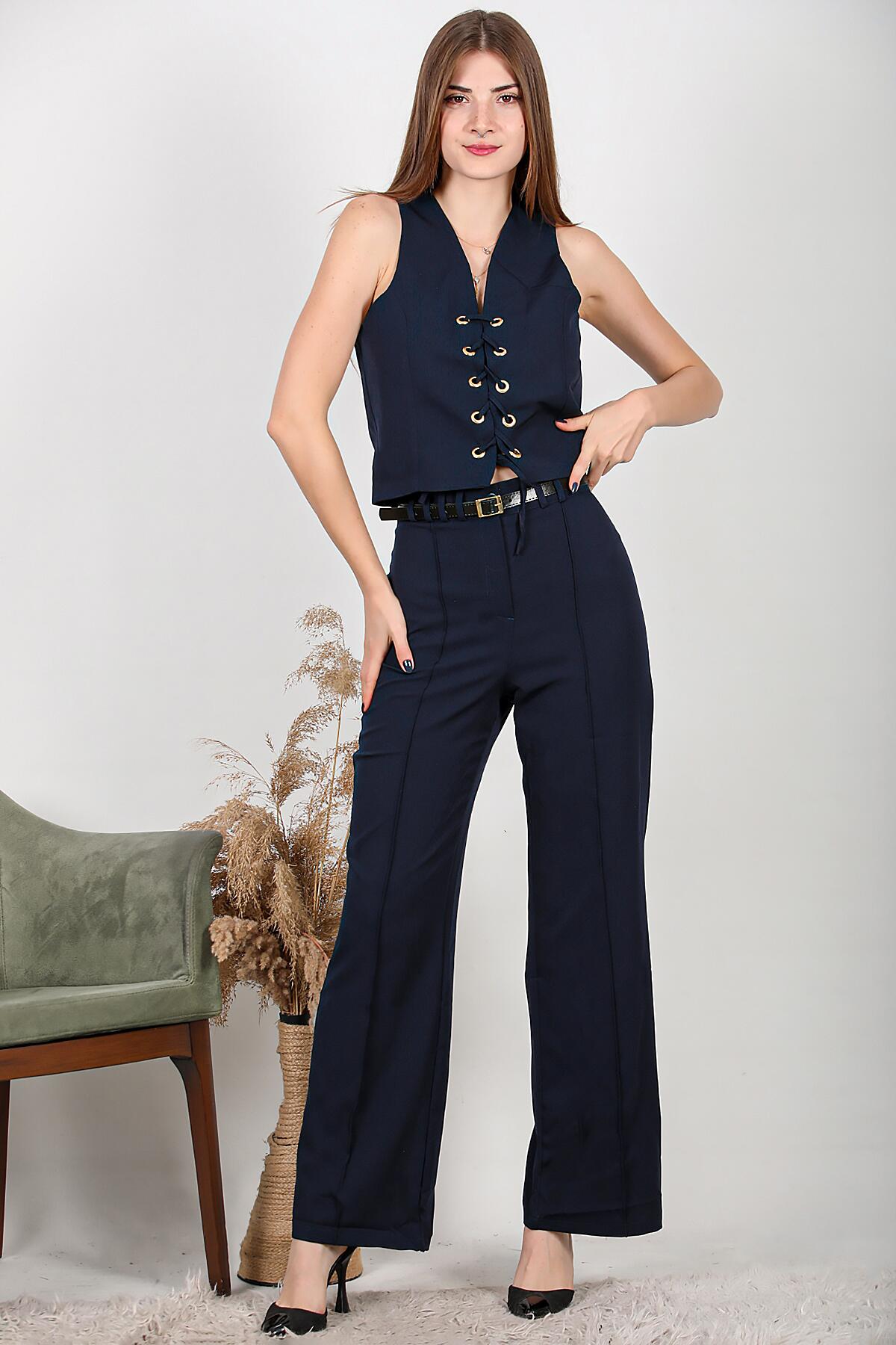 Kadın Kemerli Brit Detay Çimalı Bol Paça Pantolon Lacivert