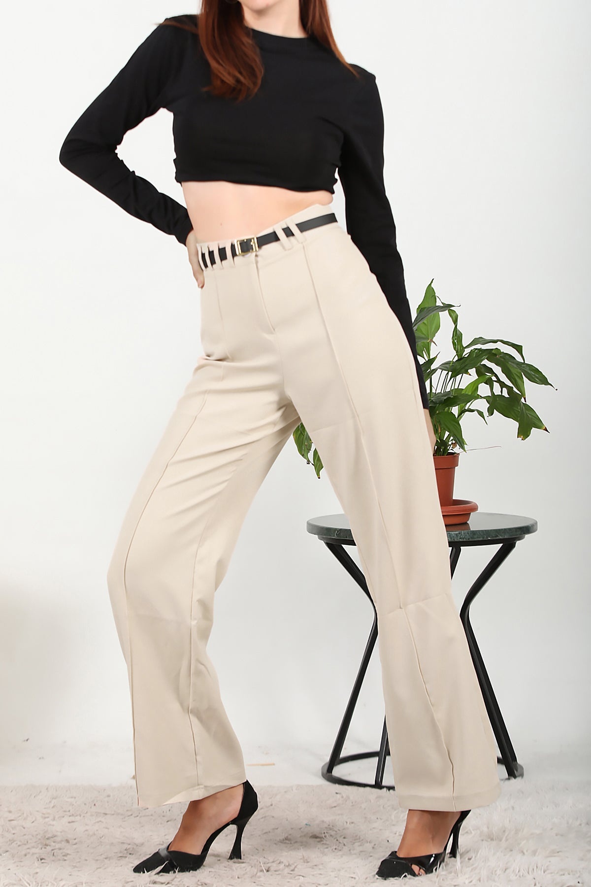 Kadın Kemerli Brit Detay Çimalı Bol Paça Pantolon Taş
