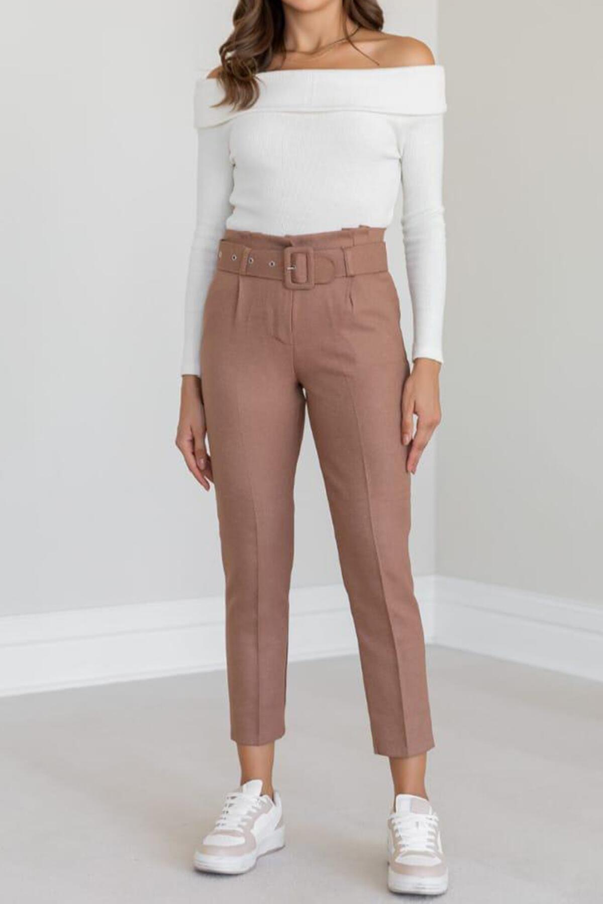 Kadın Kemerli Pantolon Camel