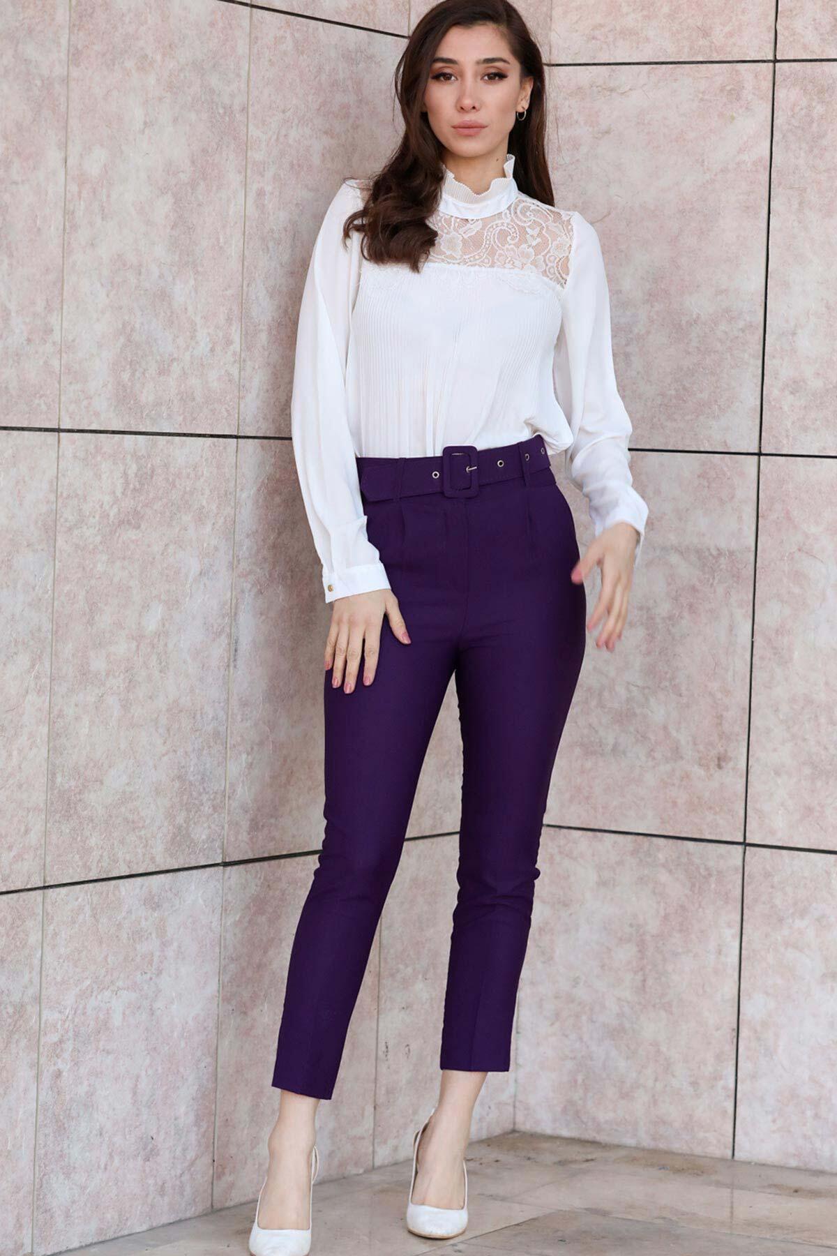 Kadın Klasik Pantolon Koyu Mor