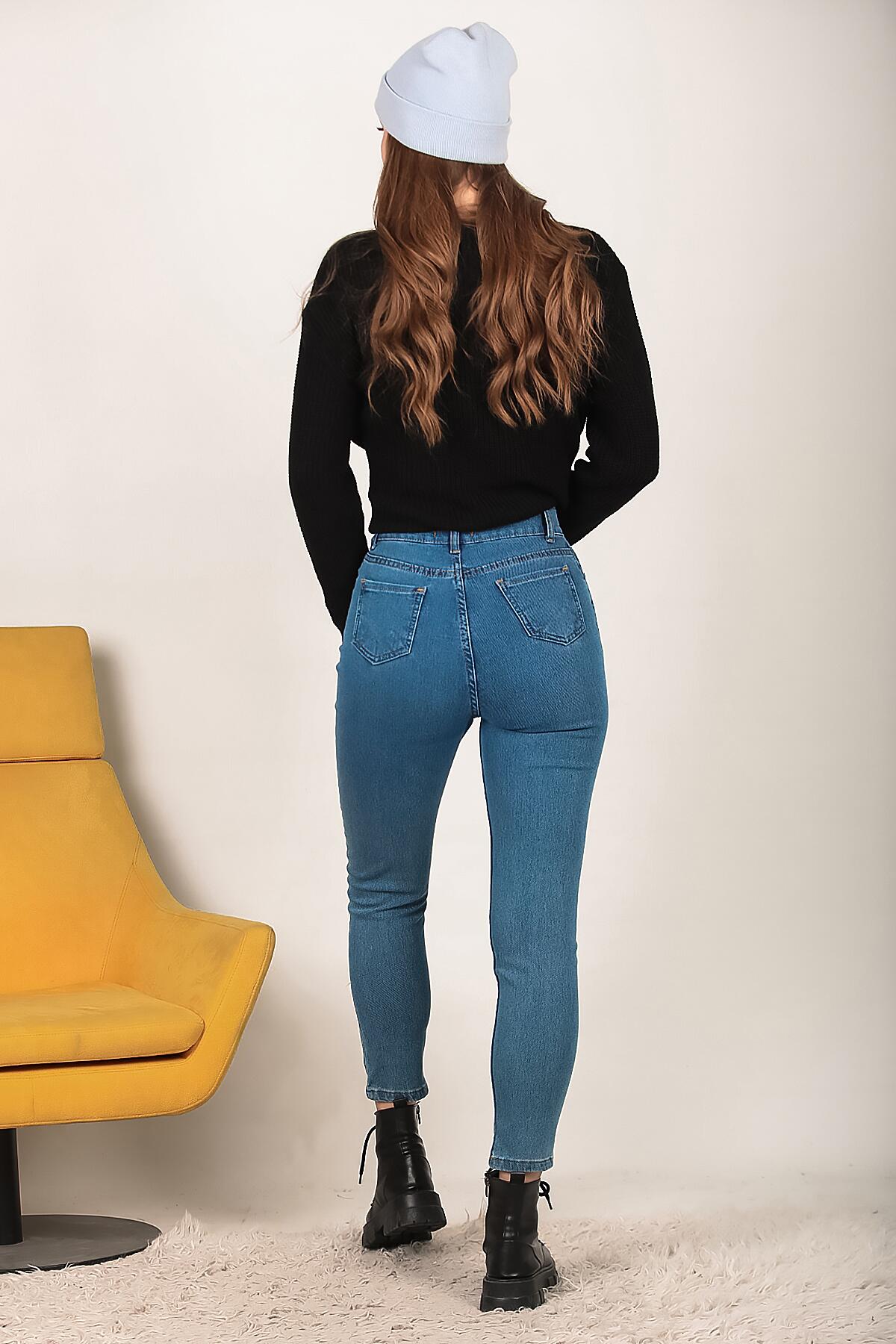Kadın Likralı Mom Jeans Pantolon Kot