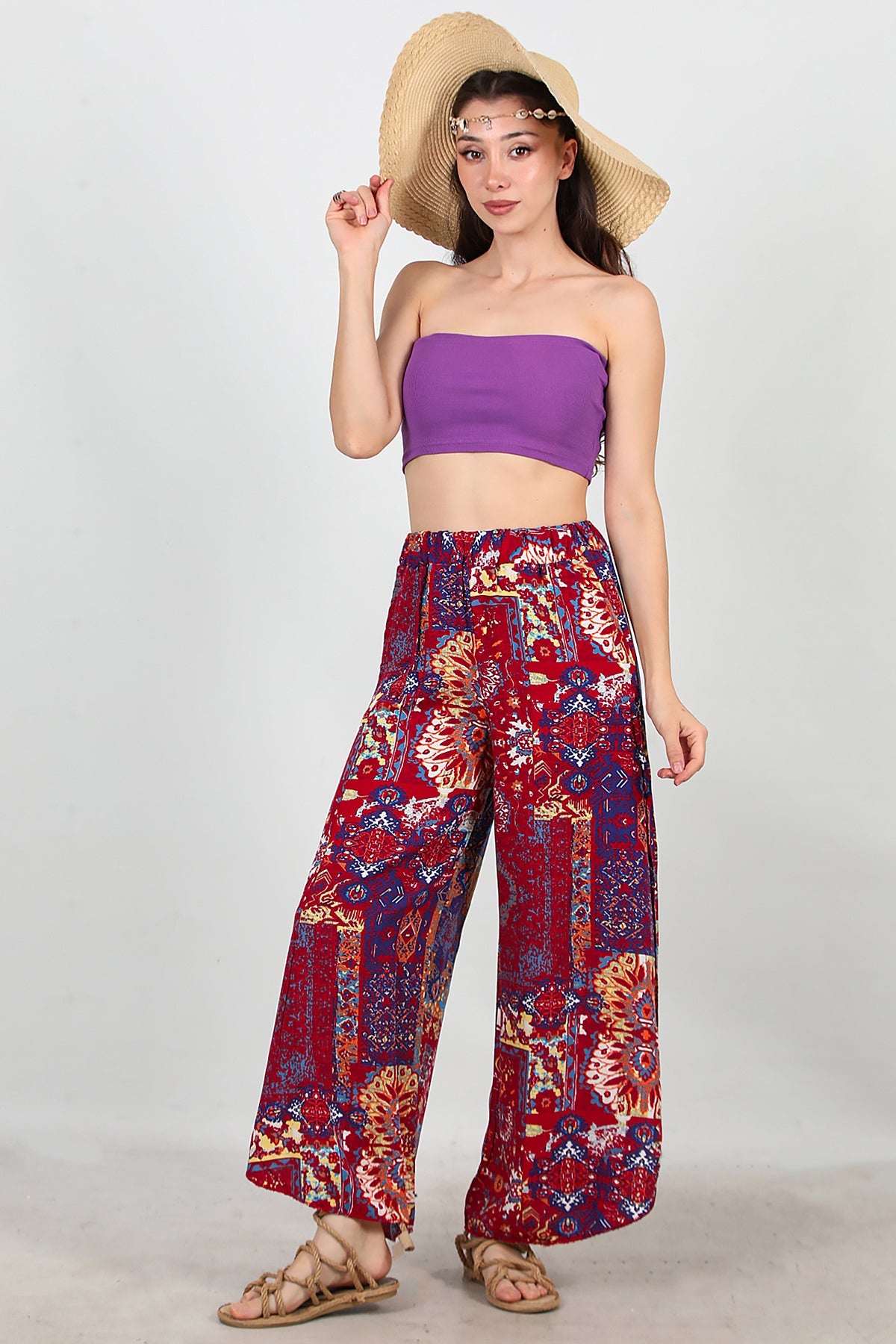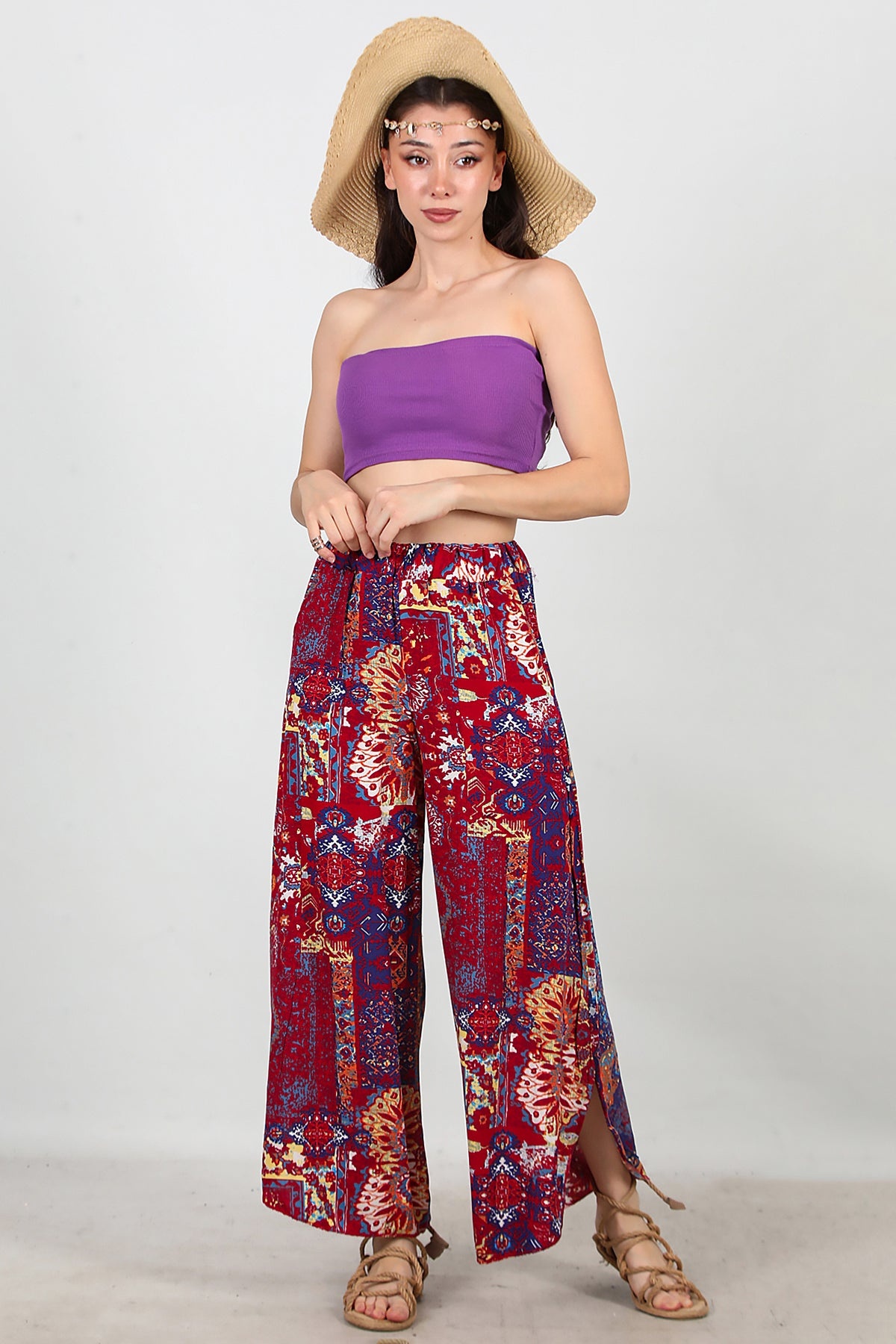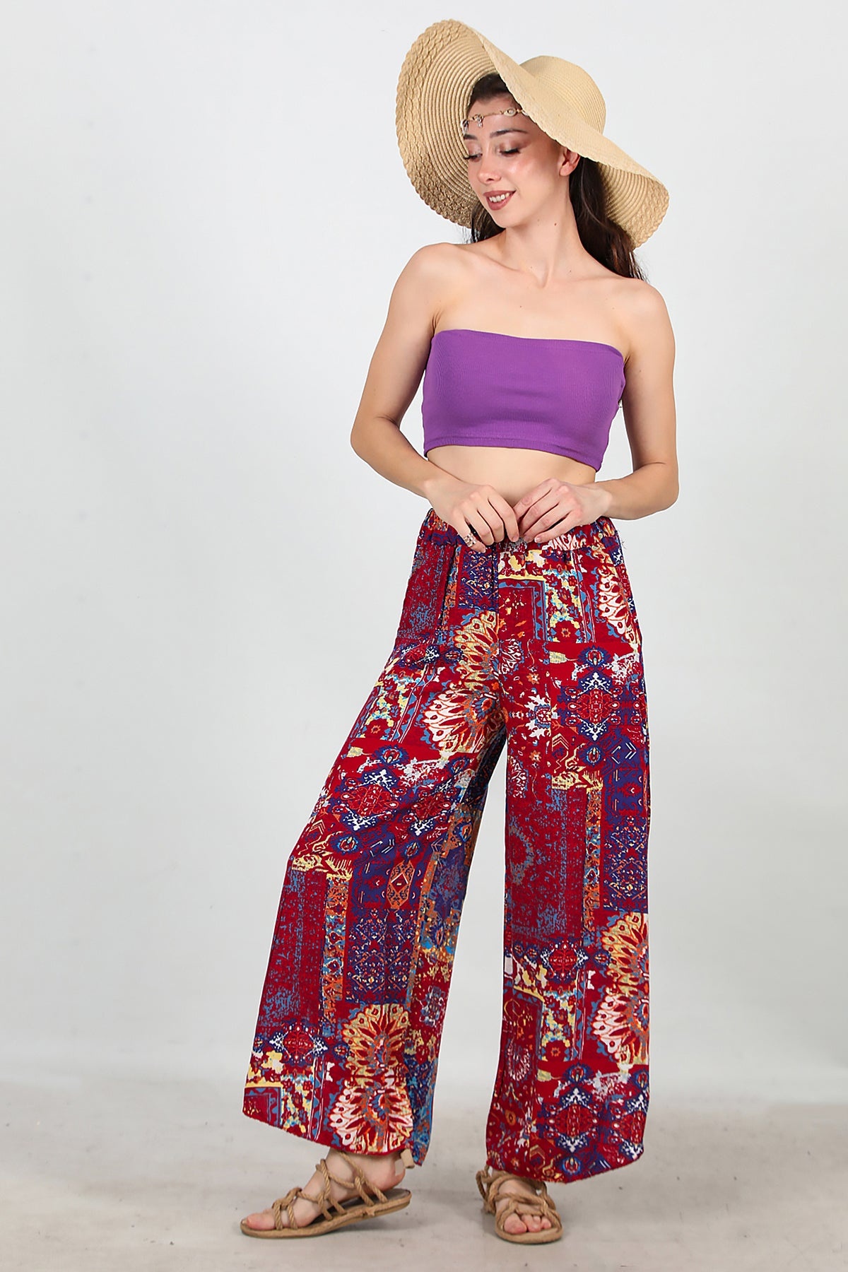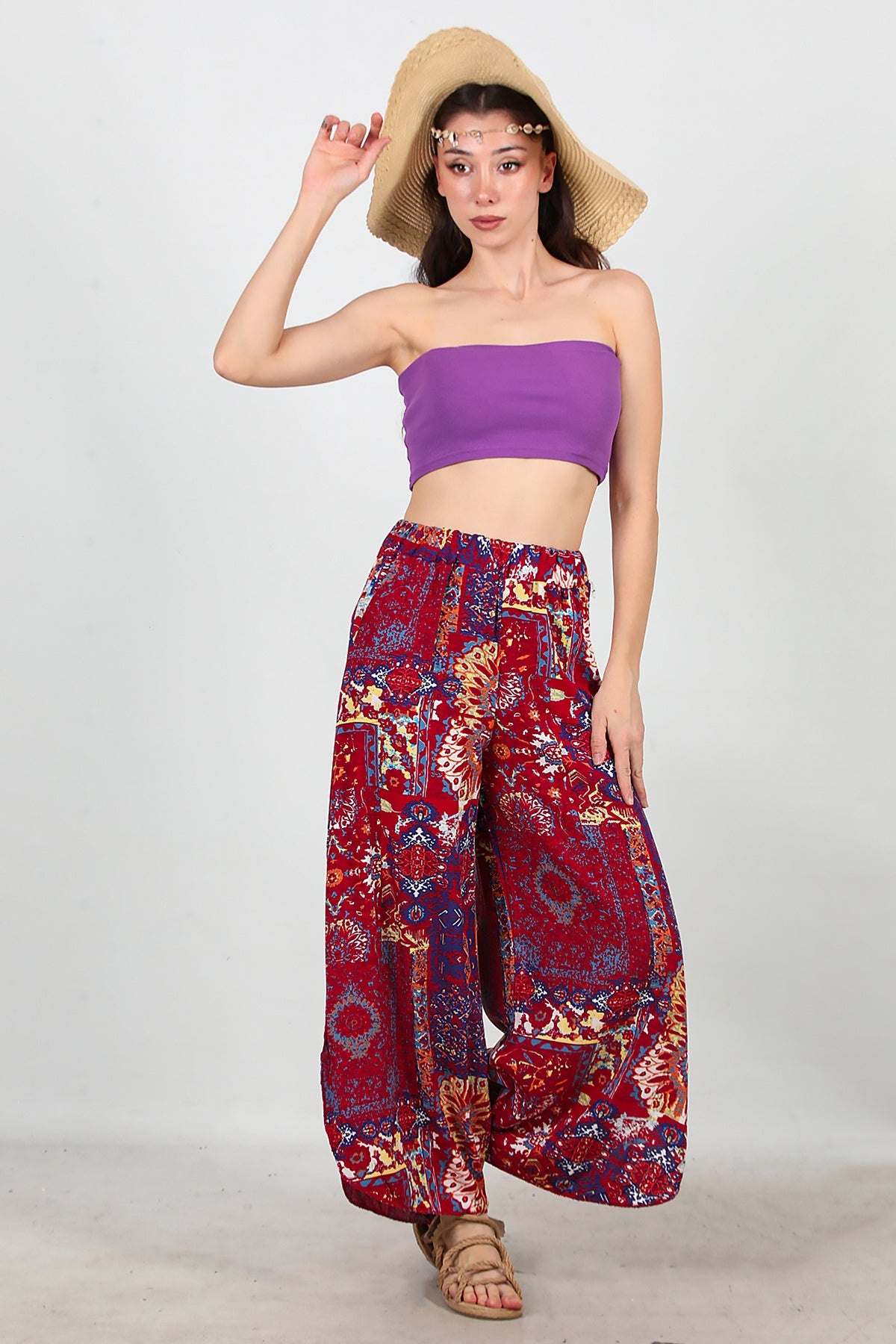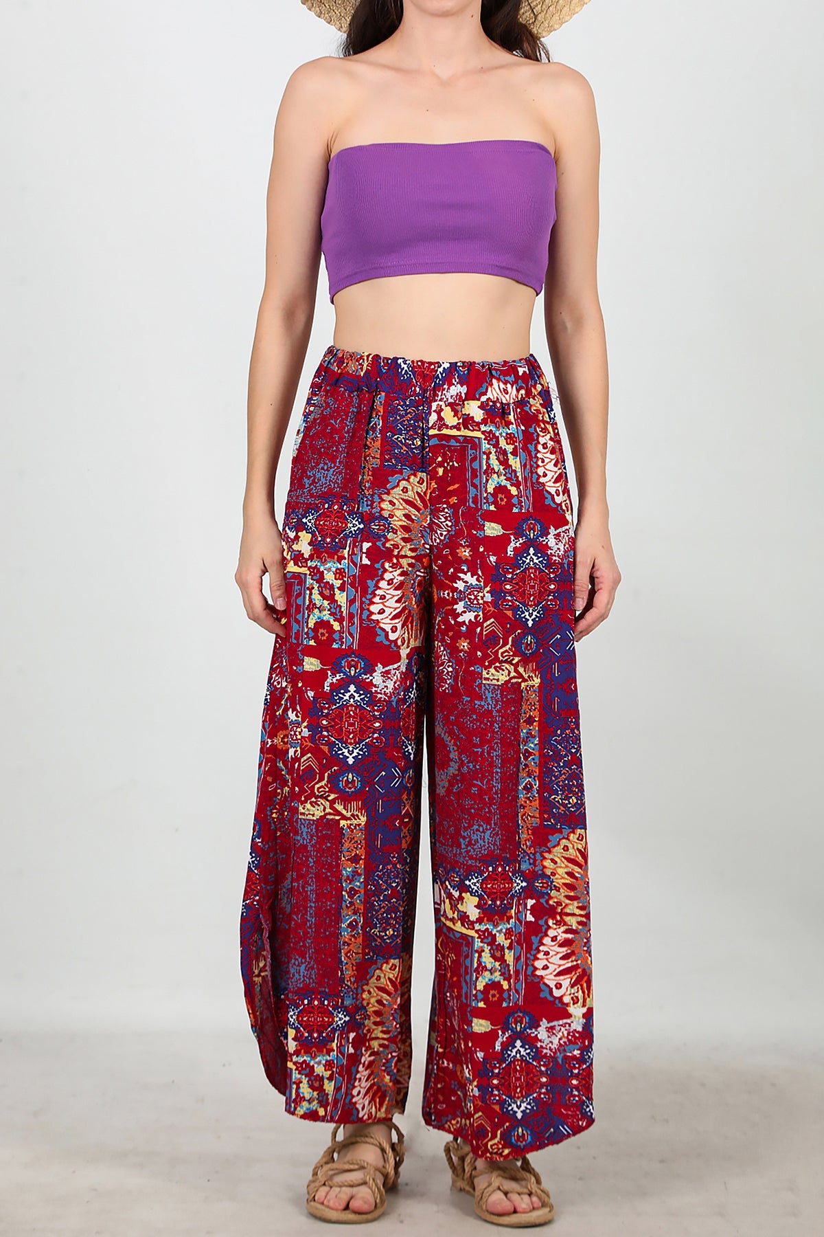 Kadın Mendil Paça Desenli Pantolon Kırmızı