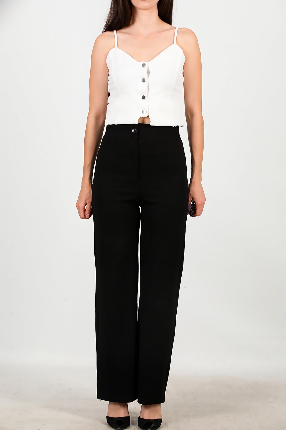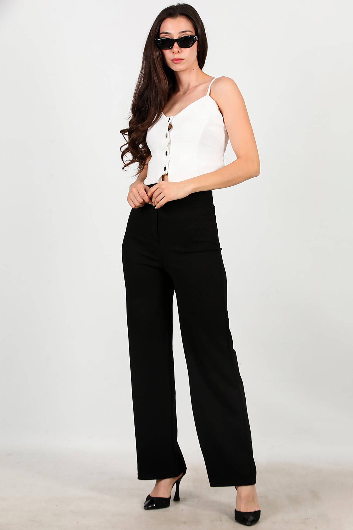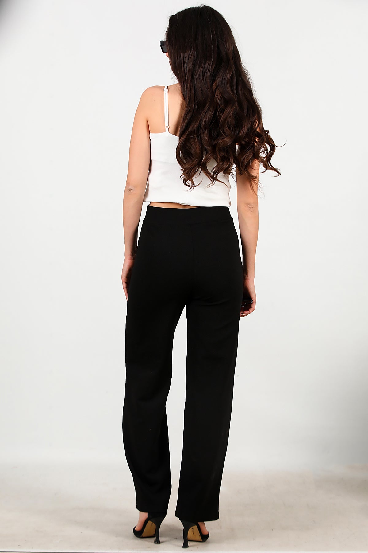 Kadın Palazzo Krep Kumaş Pantolon Siyah Siyah